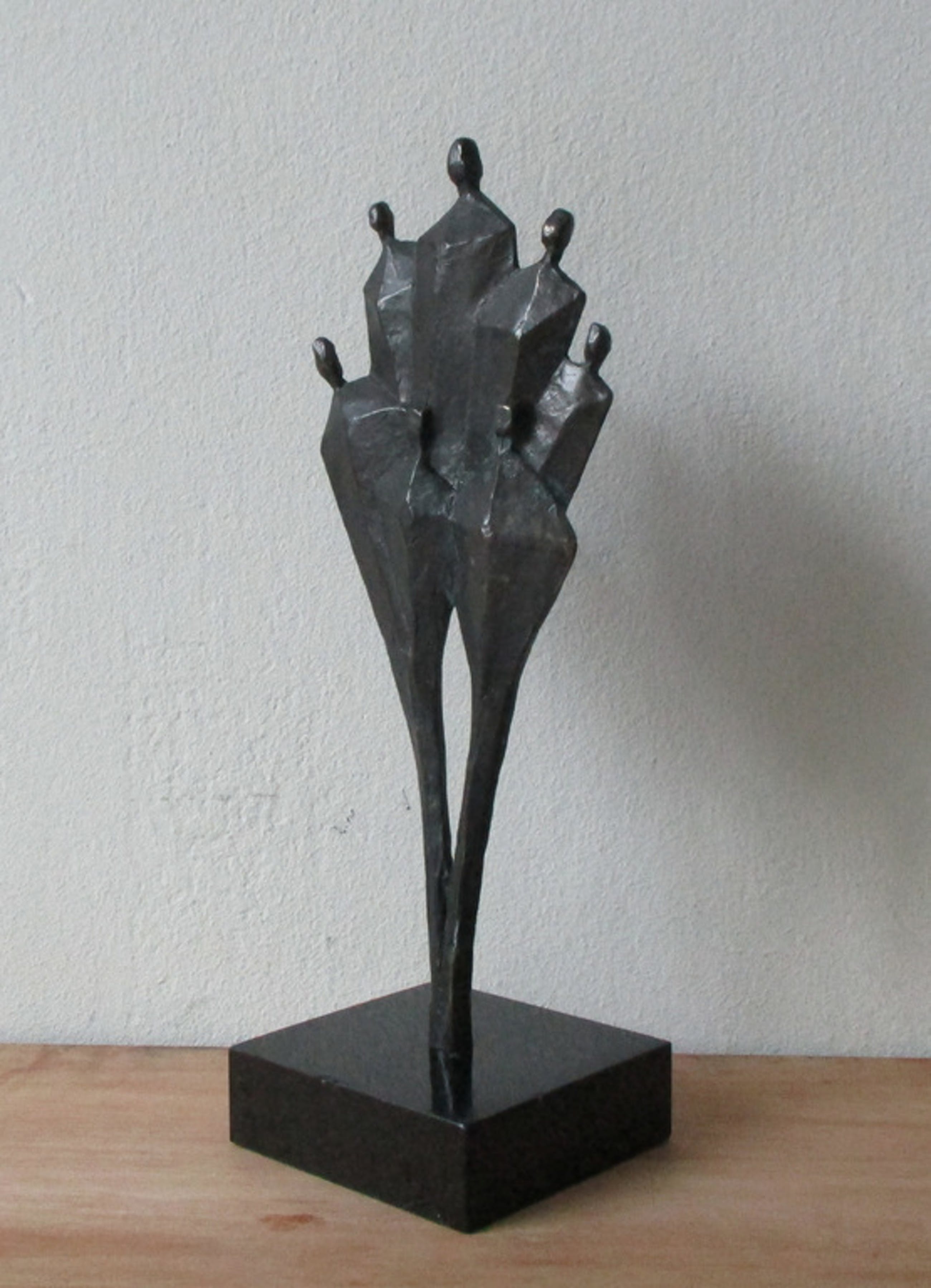 Verbronsd beeldje op natuurstenen sokkel