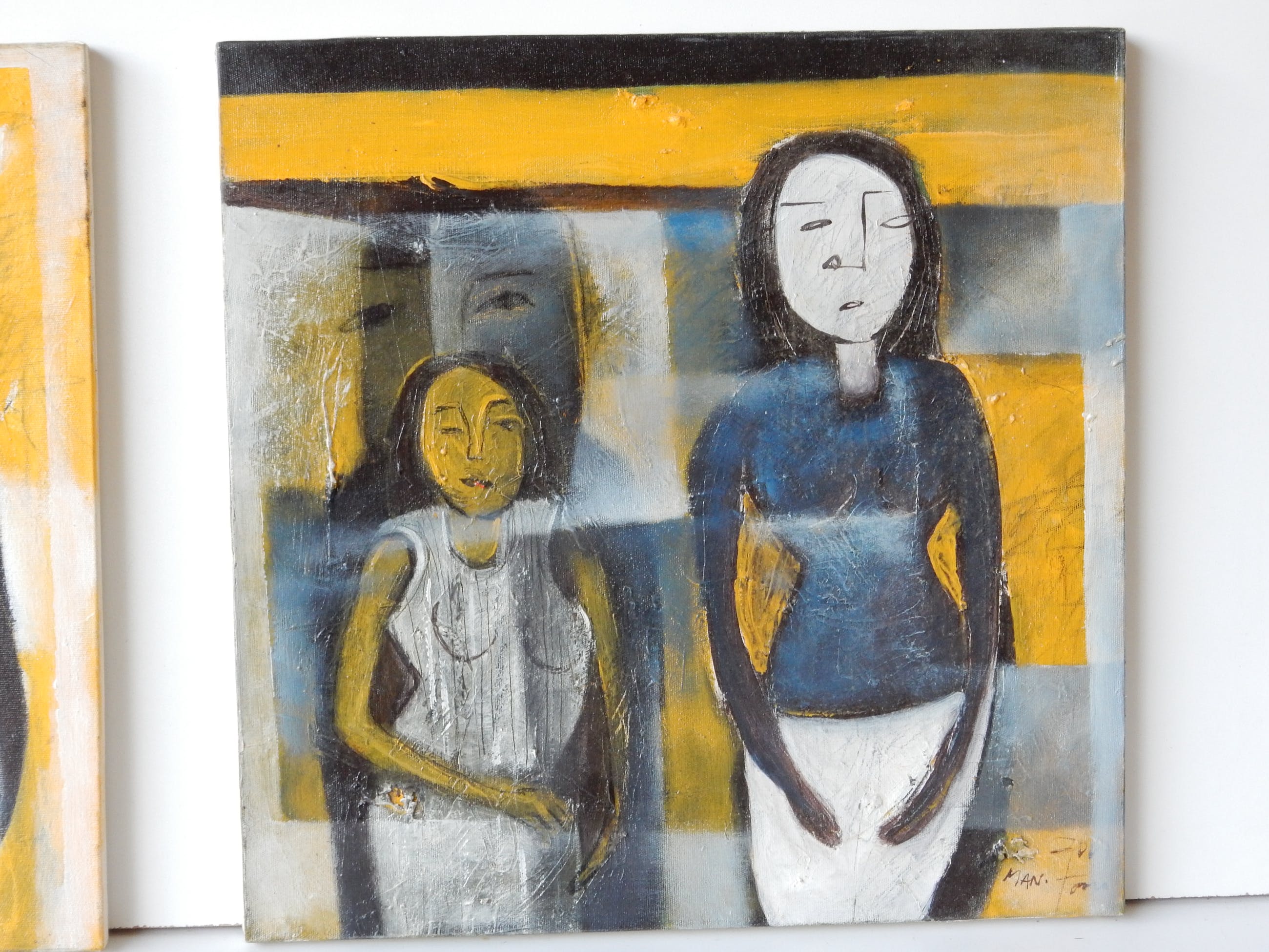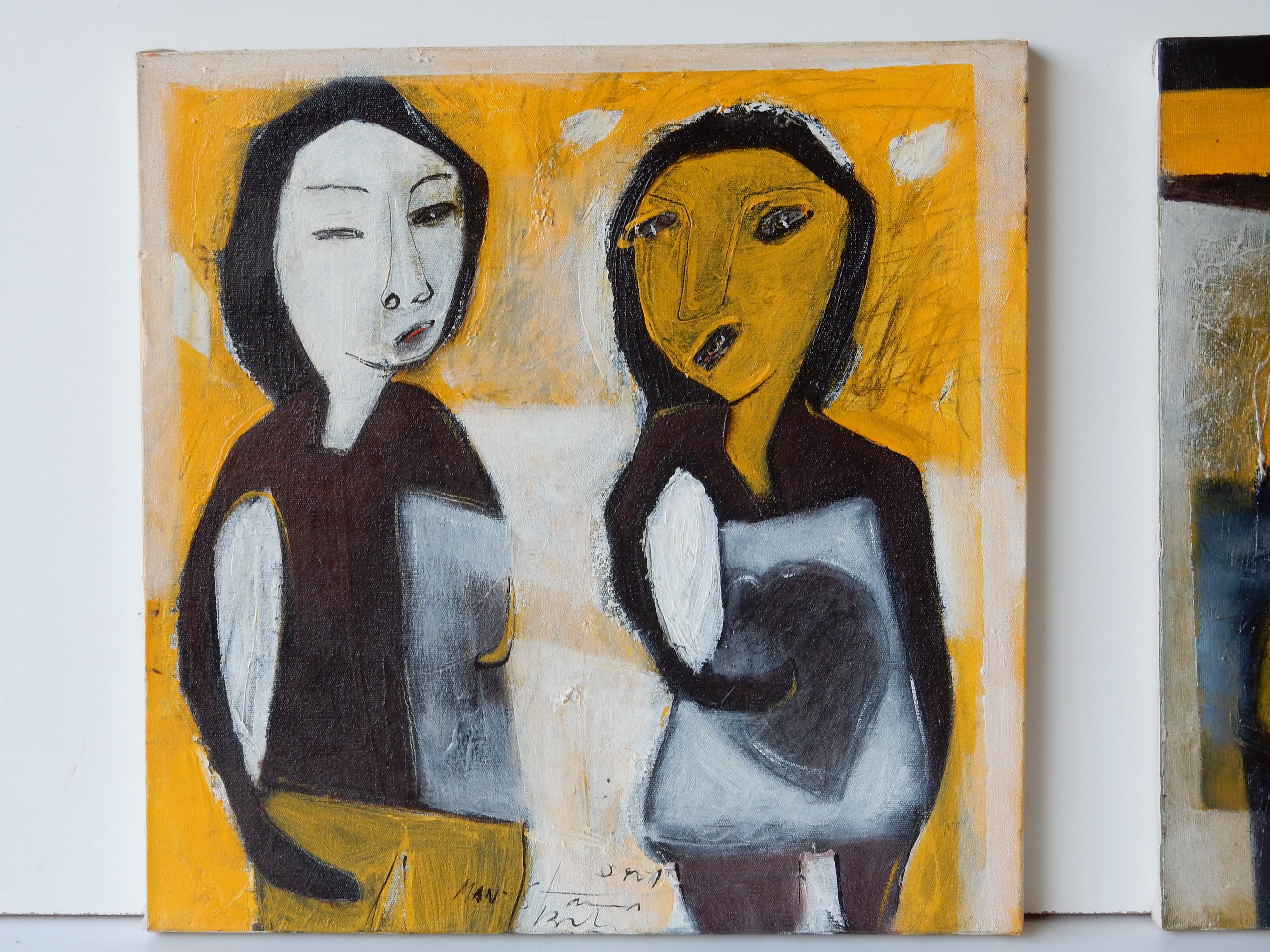 Twee schilderijen van dezelfde hand. In zeer goede staat en 40x40 cm Beiden gesigneerd en getiteld, een van beide is gedateerd.