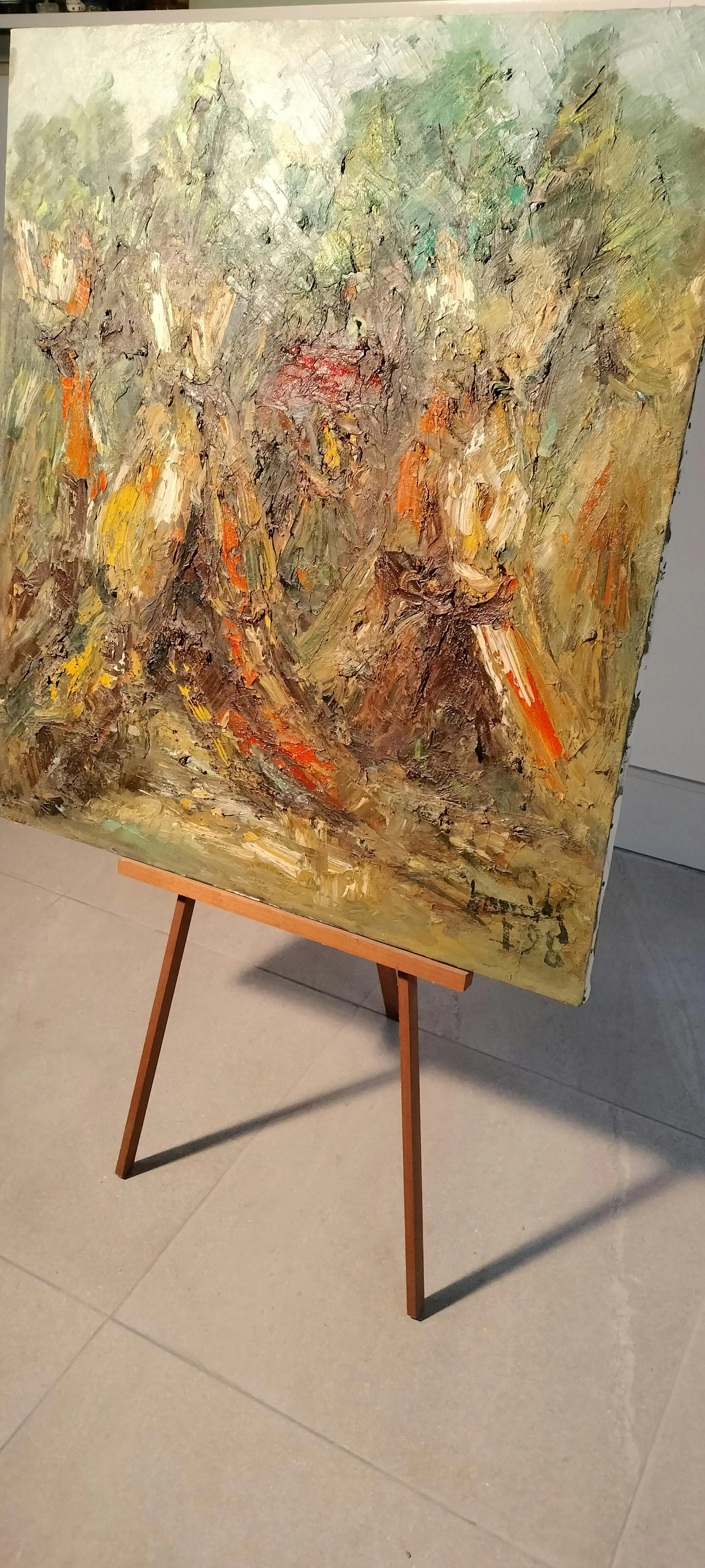 Een gewaagt handgeschilderd acrylverf kunst schilderwerk op doek . Decoratief stil leven uitgevoerd in harmonieuze kleuren palet . Een druk op gezet schilderij . Het schilderij is volledig met de hand geschilderd . Het betreft geen printwerk .