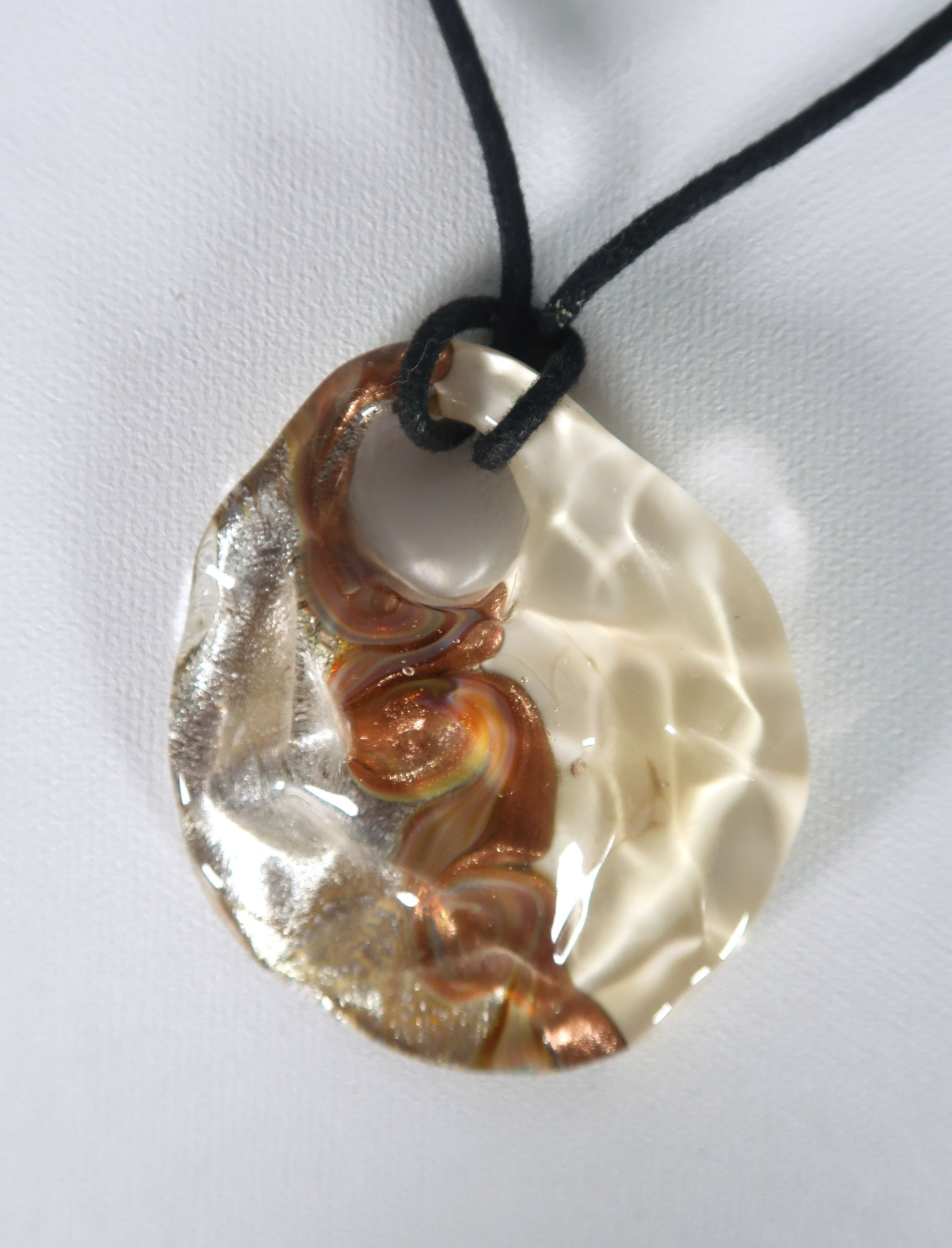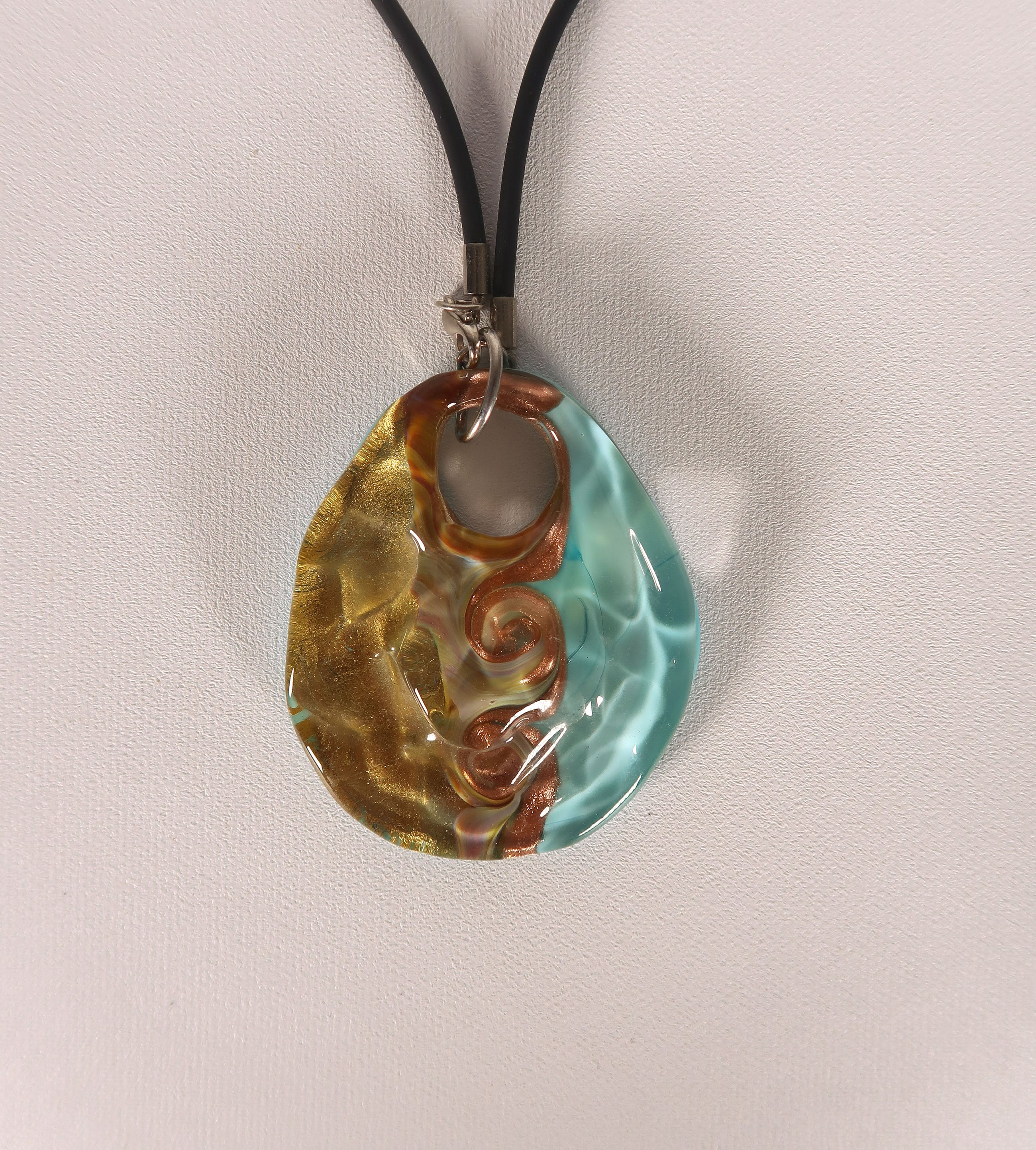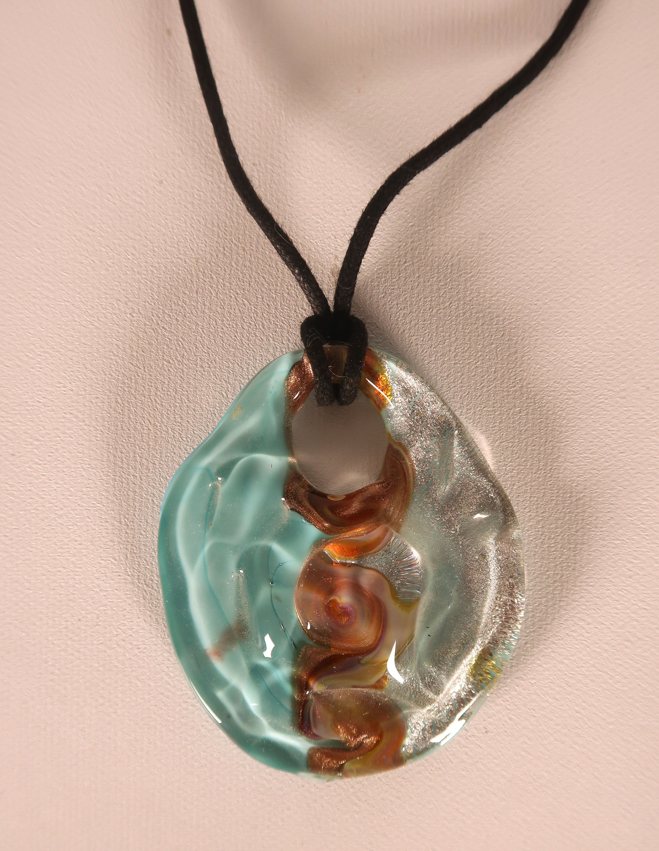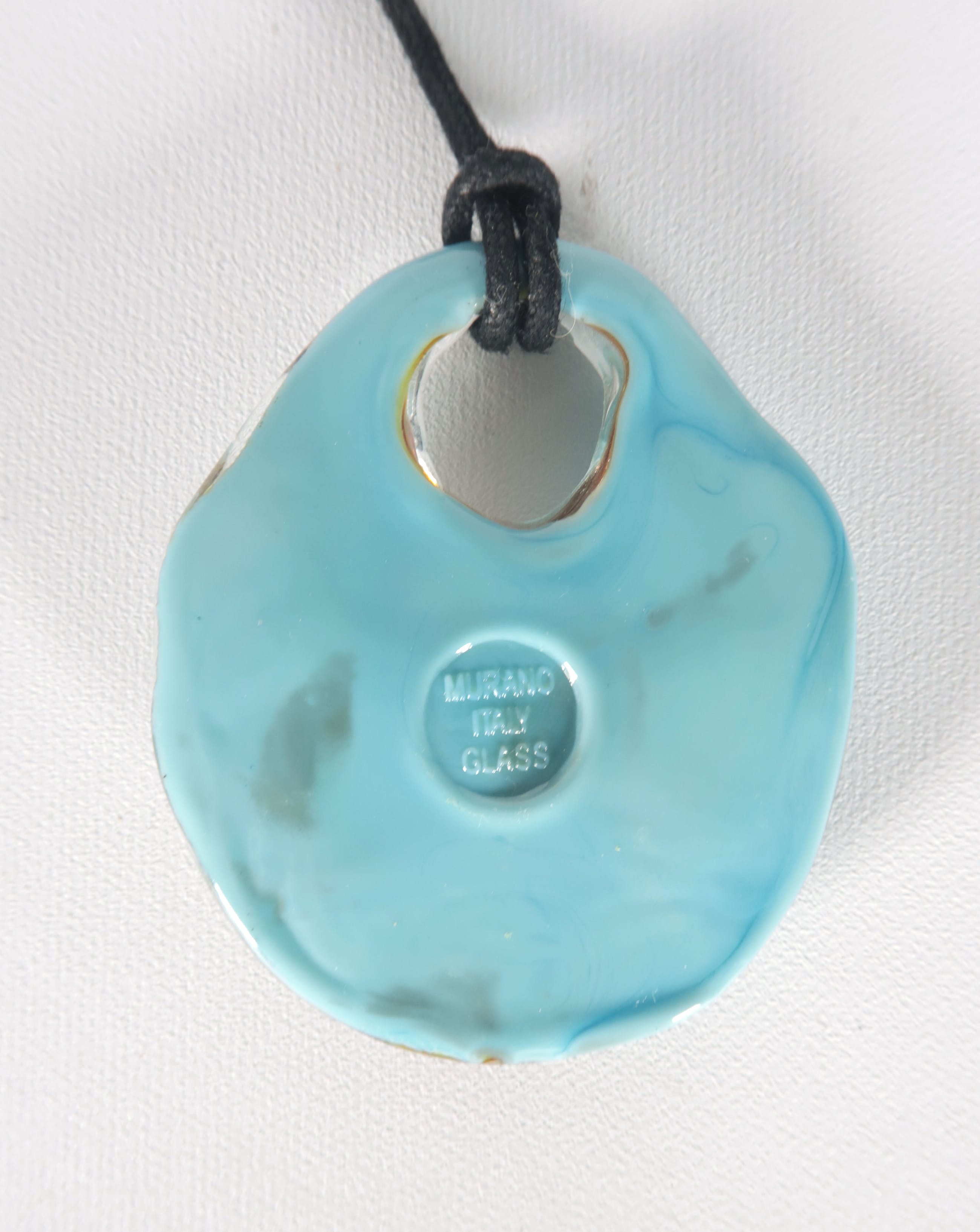 Drie glazen hangers met ketting, vervaardigd in het Italiaanse Murano.