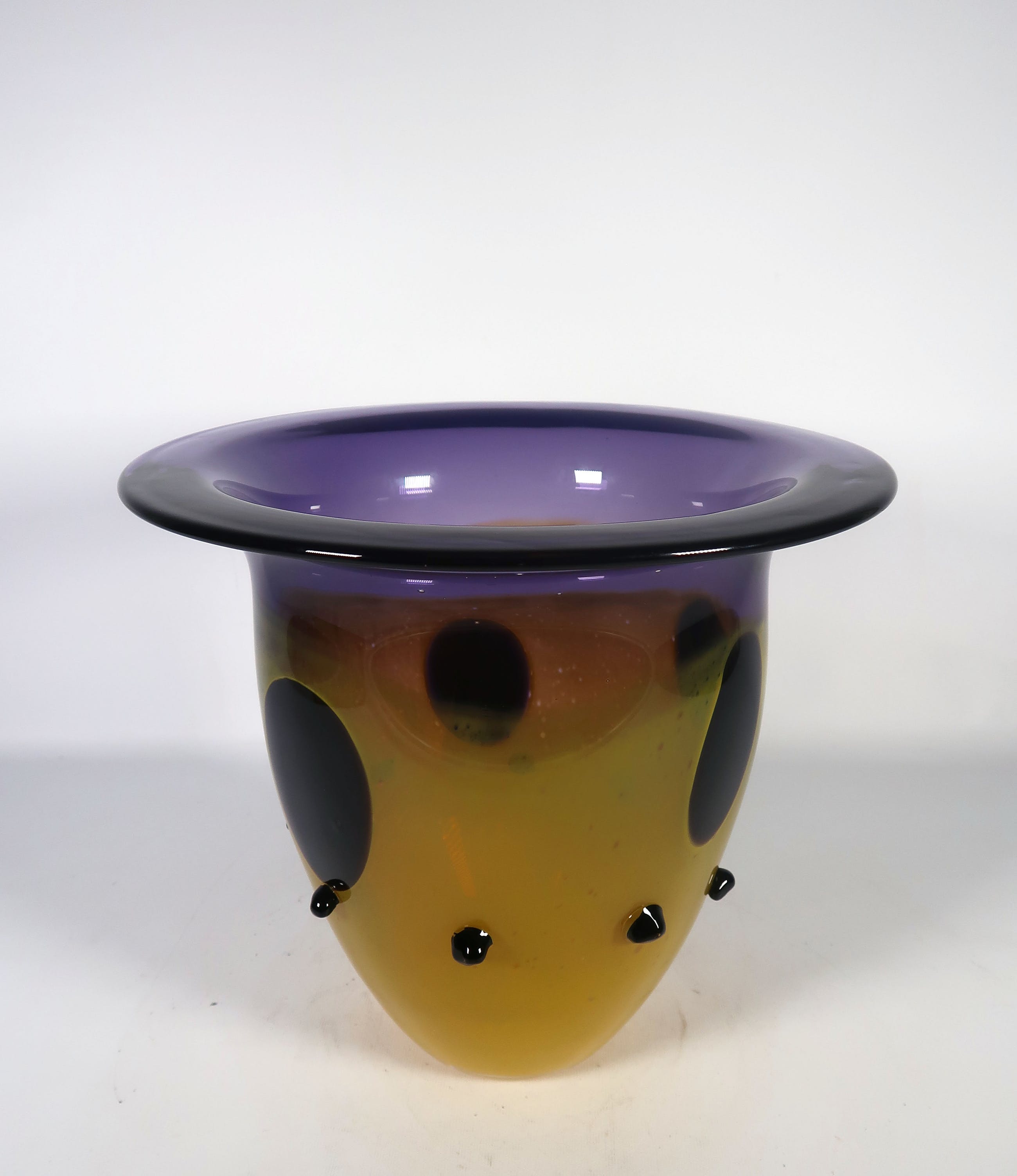 Niet of onleesbaar gesigneerd - Glas, Paars met gele vaas kopen? Bied vanaf 1!
