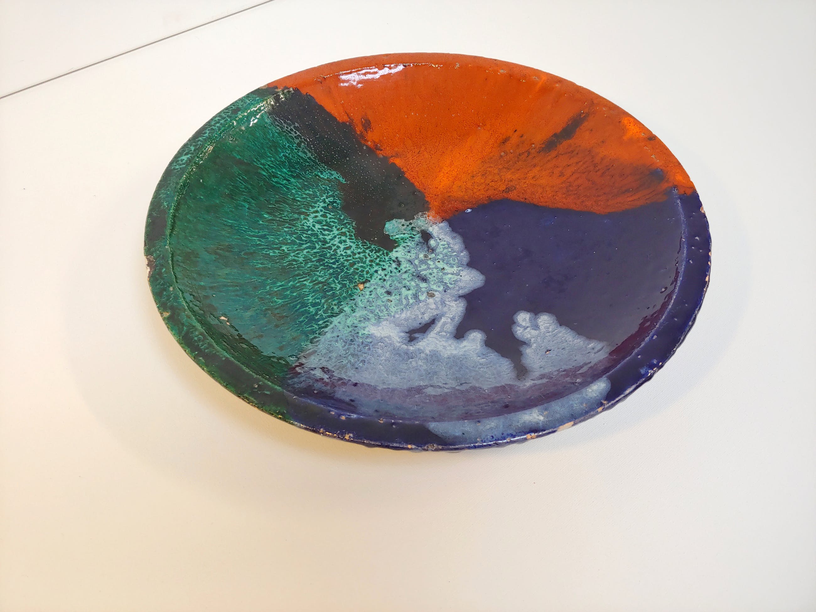 Eclectische, Bohemian Chic keramische ombre handgemaakte kom, in levendige kleuren. Gevonden op een ambachtelijke markt in Yerevan, Armenië. Handgemaakt door ambachtslieden ca. 1998.