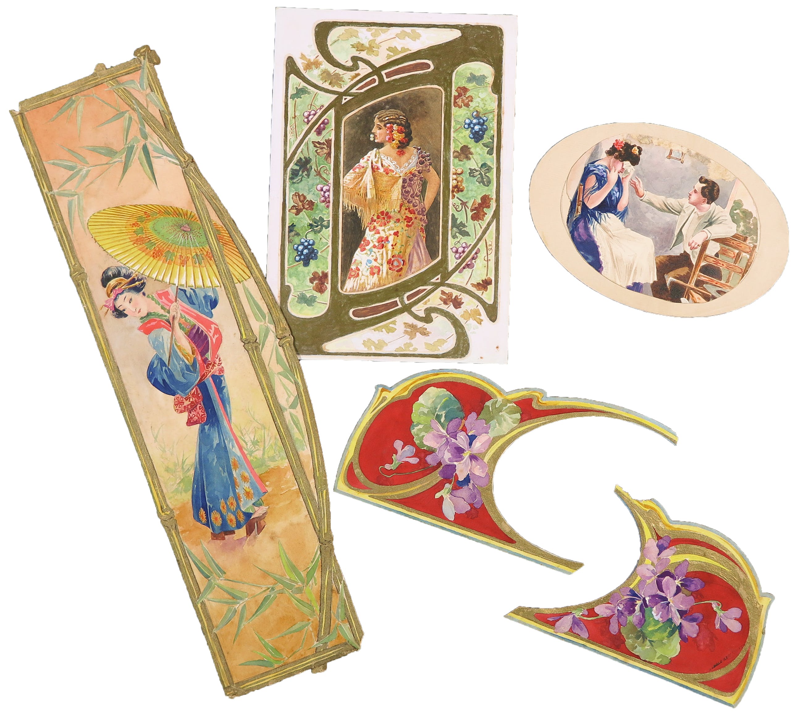 Genoemde afmetingen zijn van het grootste blad (het blad met de geisha).