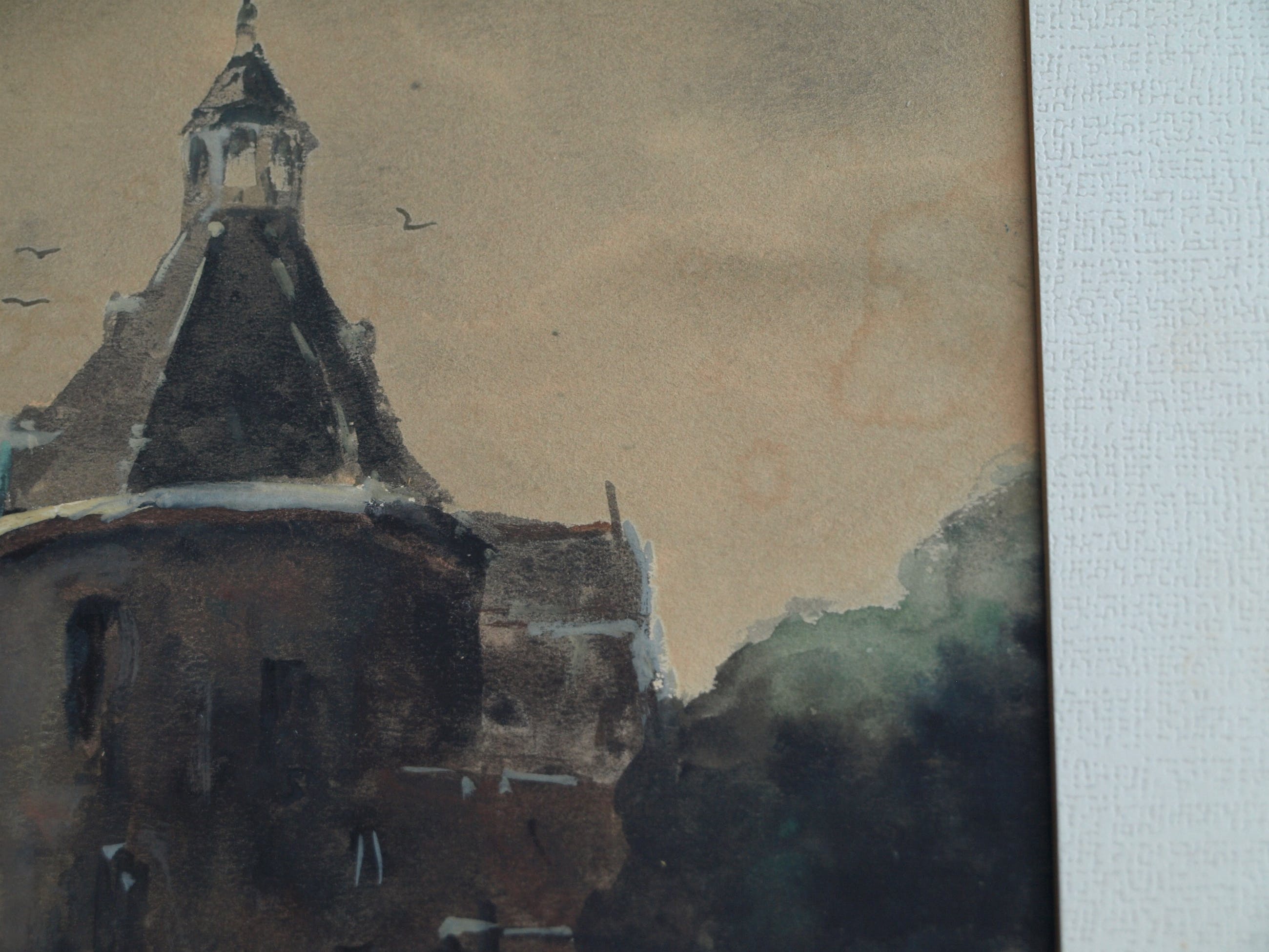 Een oude ingelijste gouache van een ons onbekende kunstenaar.