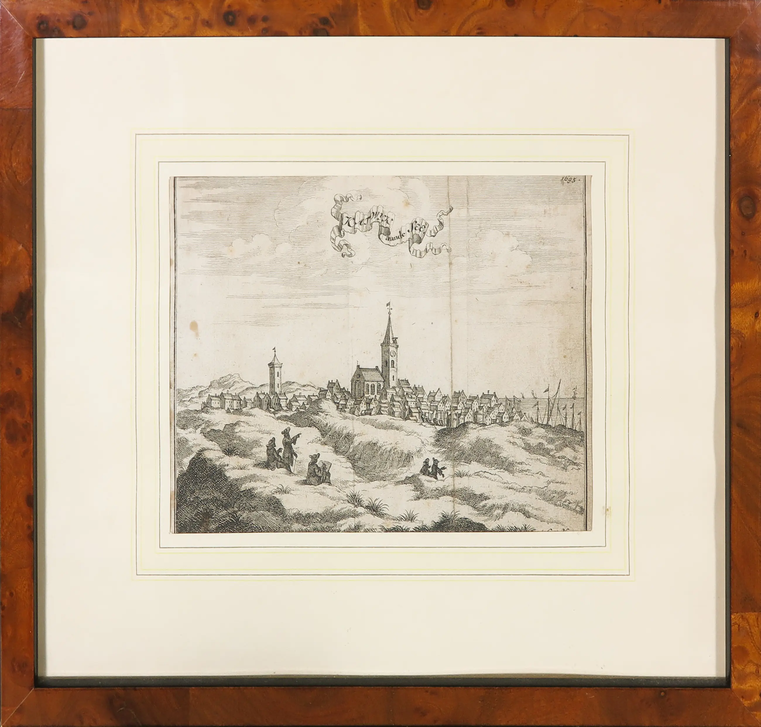 | Gezien de leeftijd is de prent in goede staat, er lijken enkel een paar (zuur) vlekjes in de compositie te zitten. (Zie detailfoto's) Daarnaast zit er wat golving in het papier en Passe-partout. Rechts van het midden lopen twee vouwlijnen door de compositie. | |||||||||||
