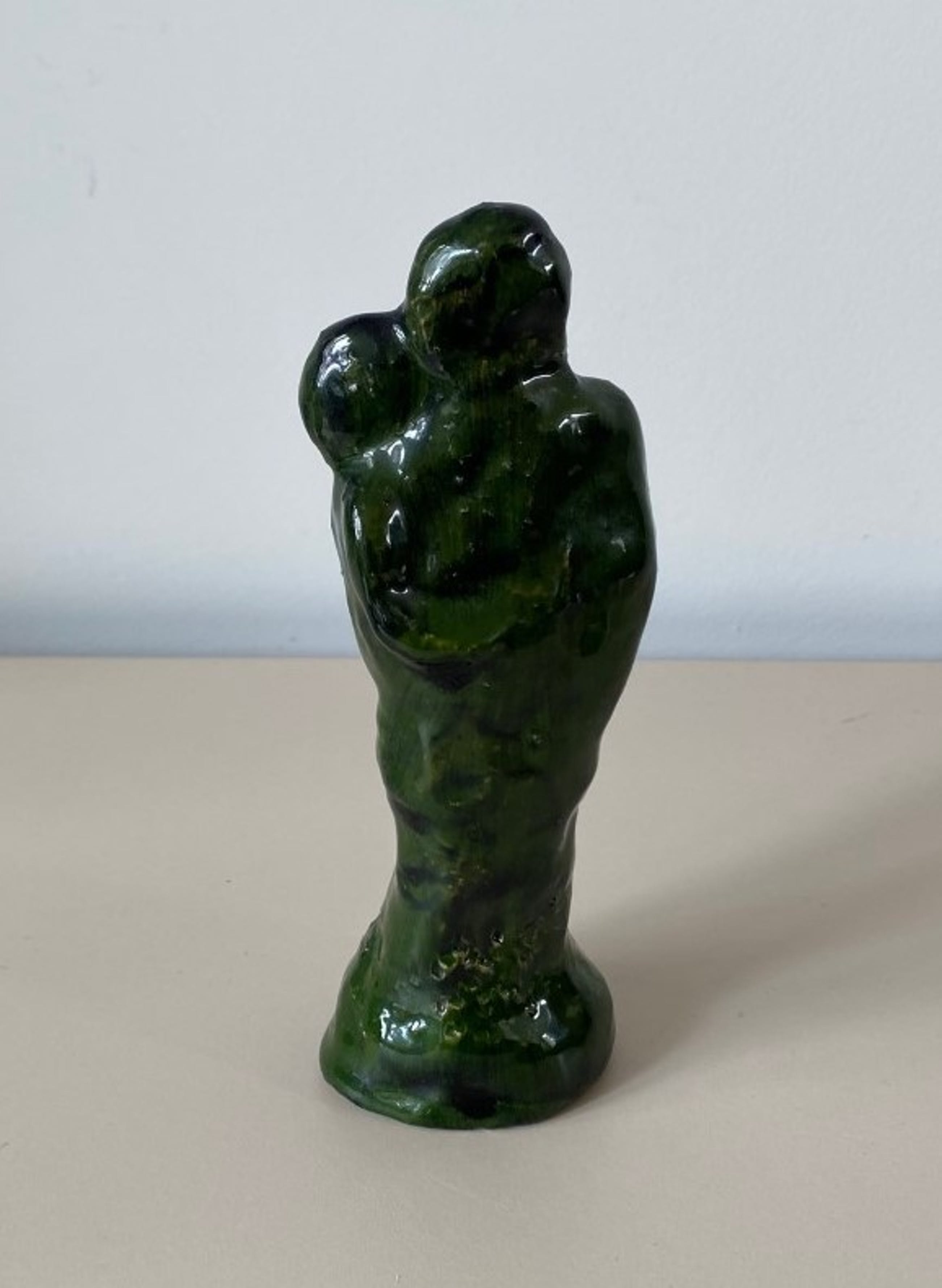 Groen aardewerken figuur verliefd stel. In onbeschadigde conditie en niet gemerkt.