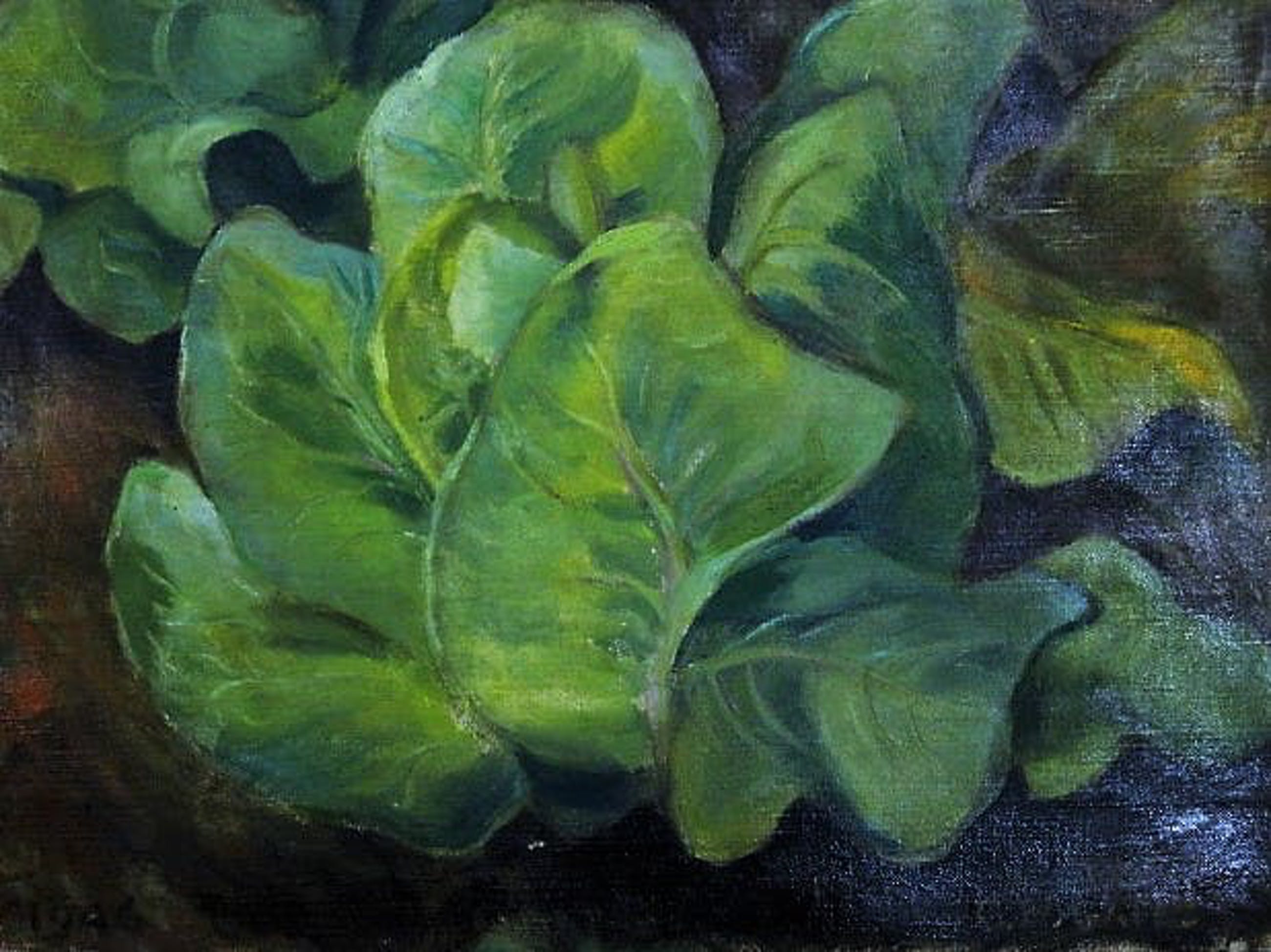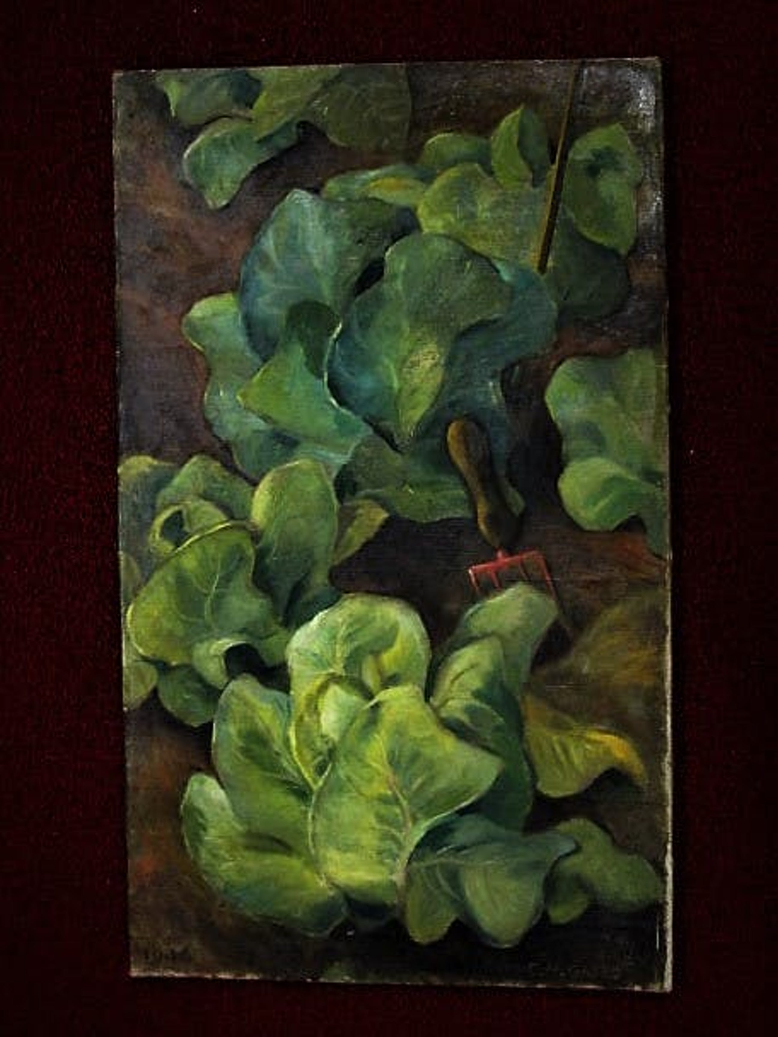 Onbekend - Groot 1946 gesigneerd Amerikaans olieverf "Moestuin met Sla" - Verkocht
