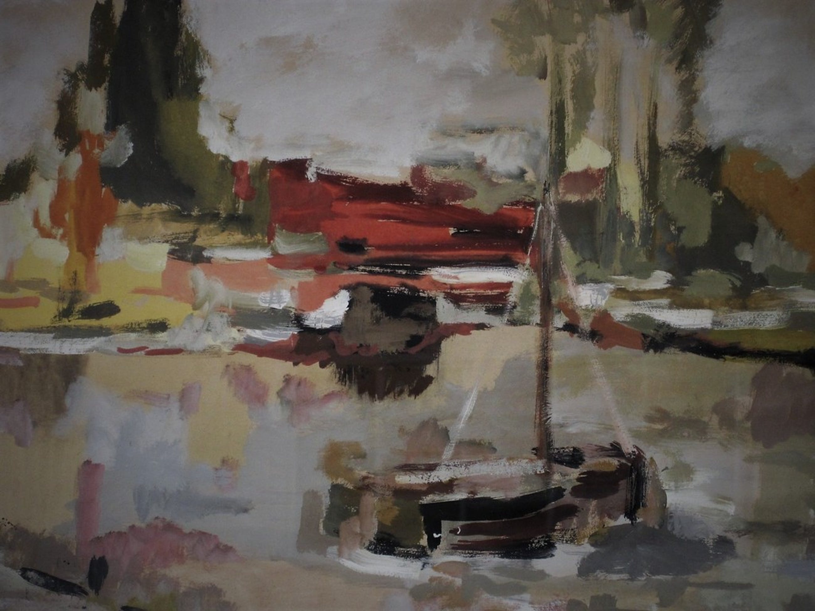 Titel/Voorstelling : " zeilboten in zonnig polderlandschap "