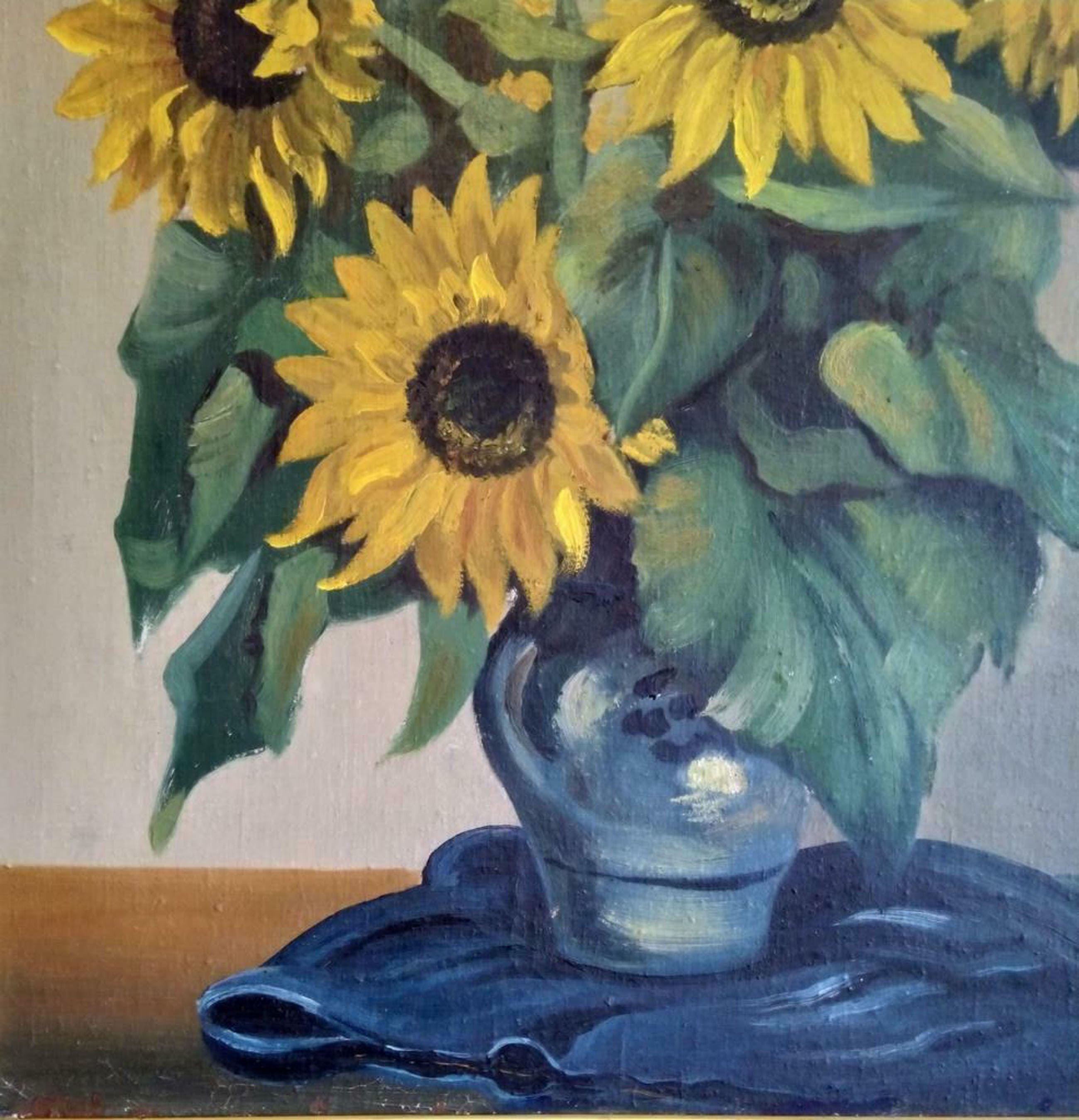 Zonnebloemen op vaas - Olieverf op doek - tweede helft 19e eeuw
