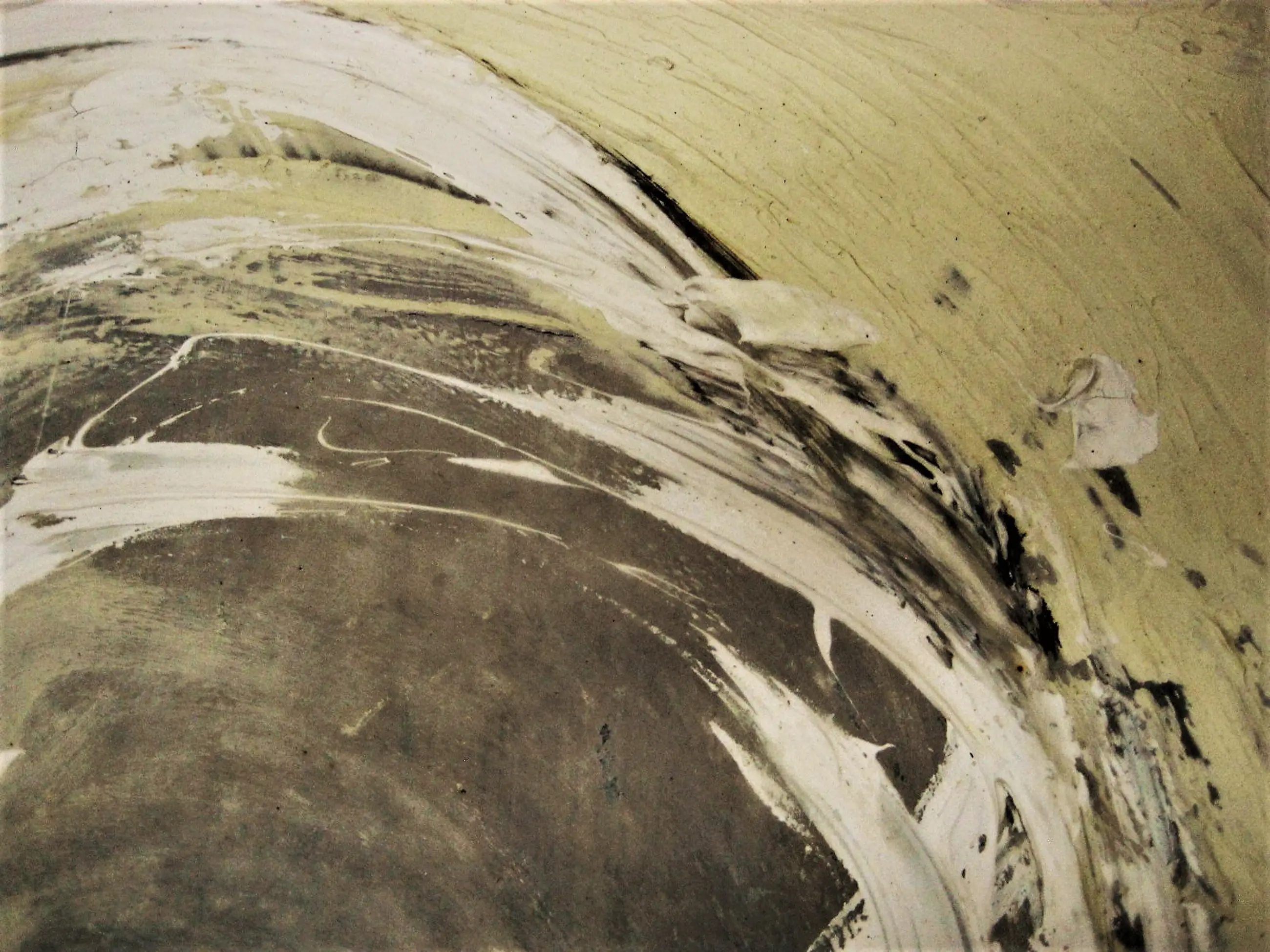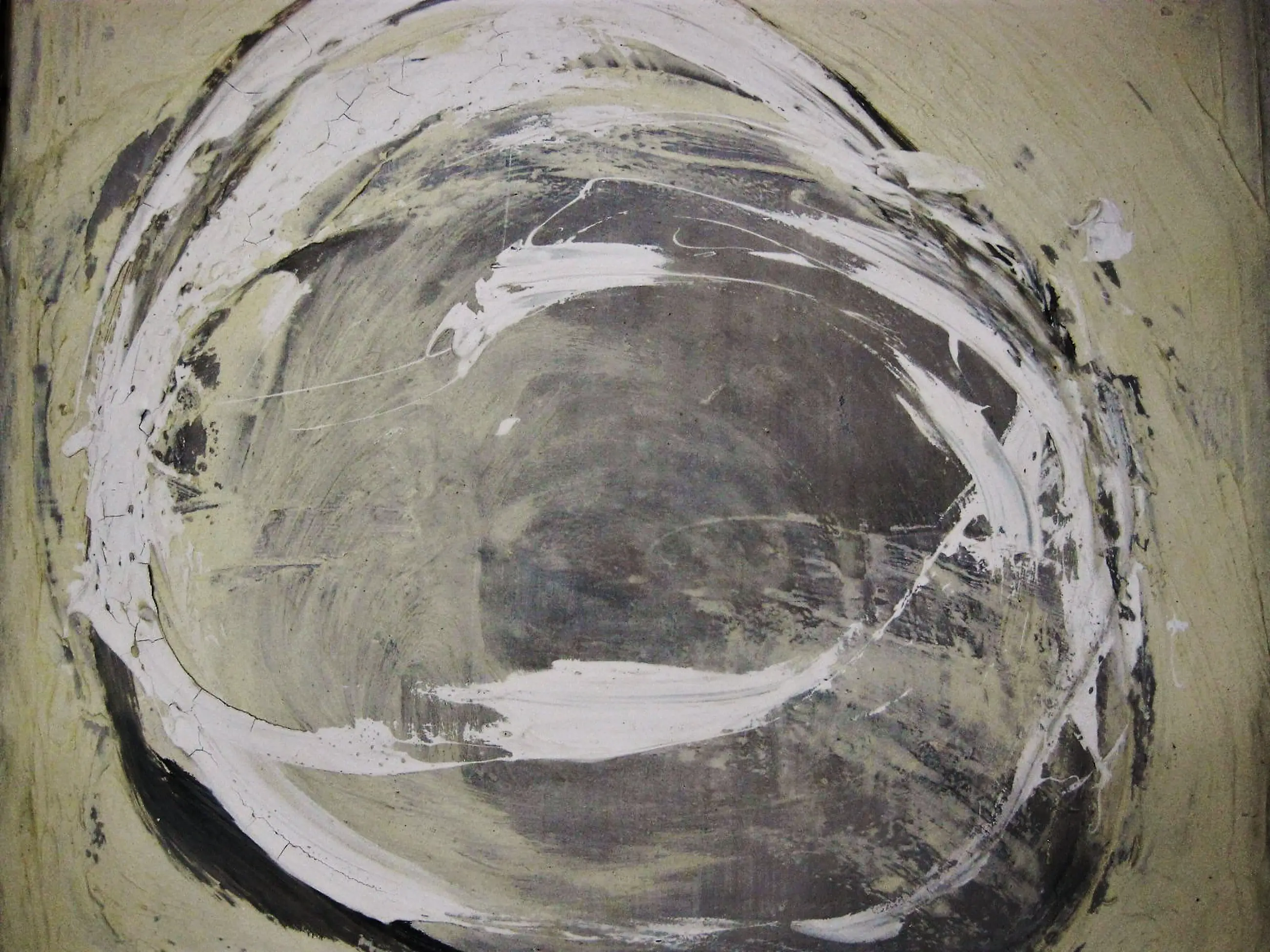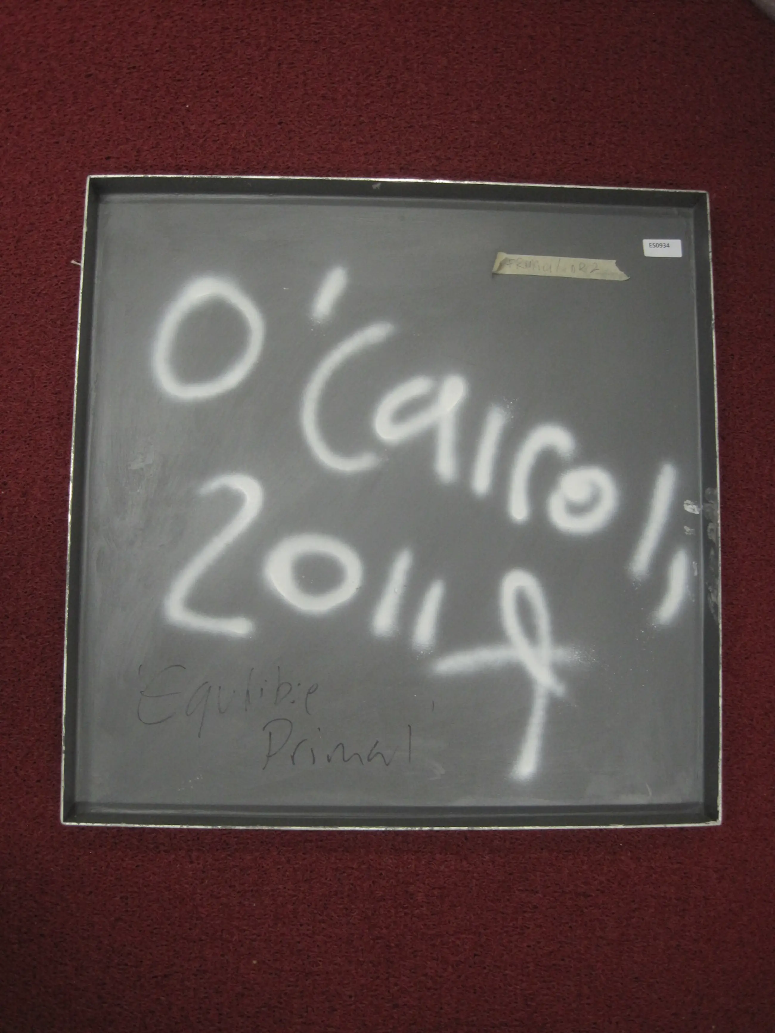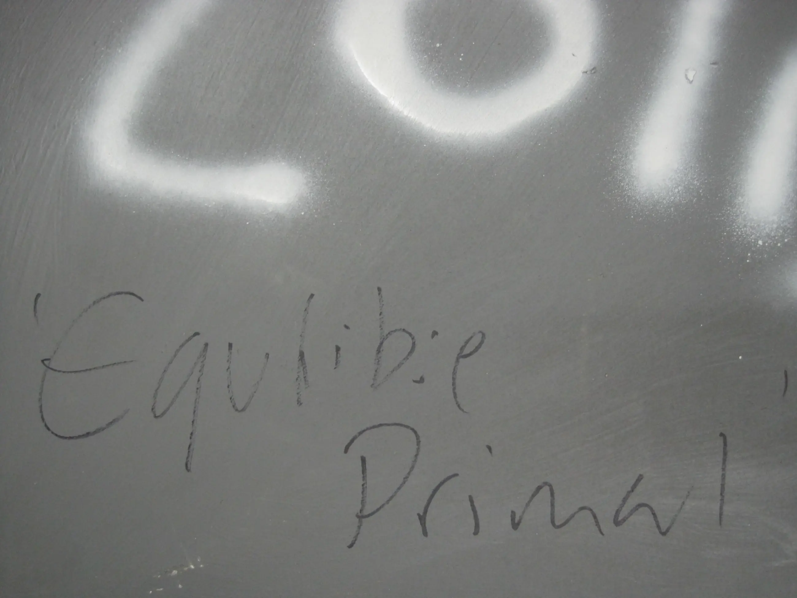 Intrigerende gemengde techniek (Acryl, Olieverf ea) op paneel schilderij getiteld "Equilibre primal I" en gedateerd 2011. Op achterzijde gesigneerd. Het grote schilderij verkeert in goede conditie op enige craquele (linkerzijde/midden) na. In originele Alu/metalen lijst.