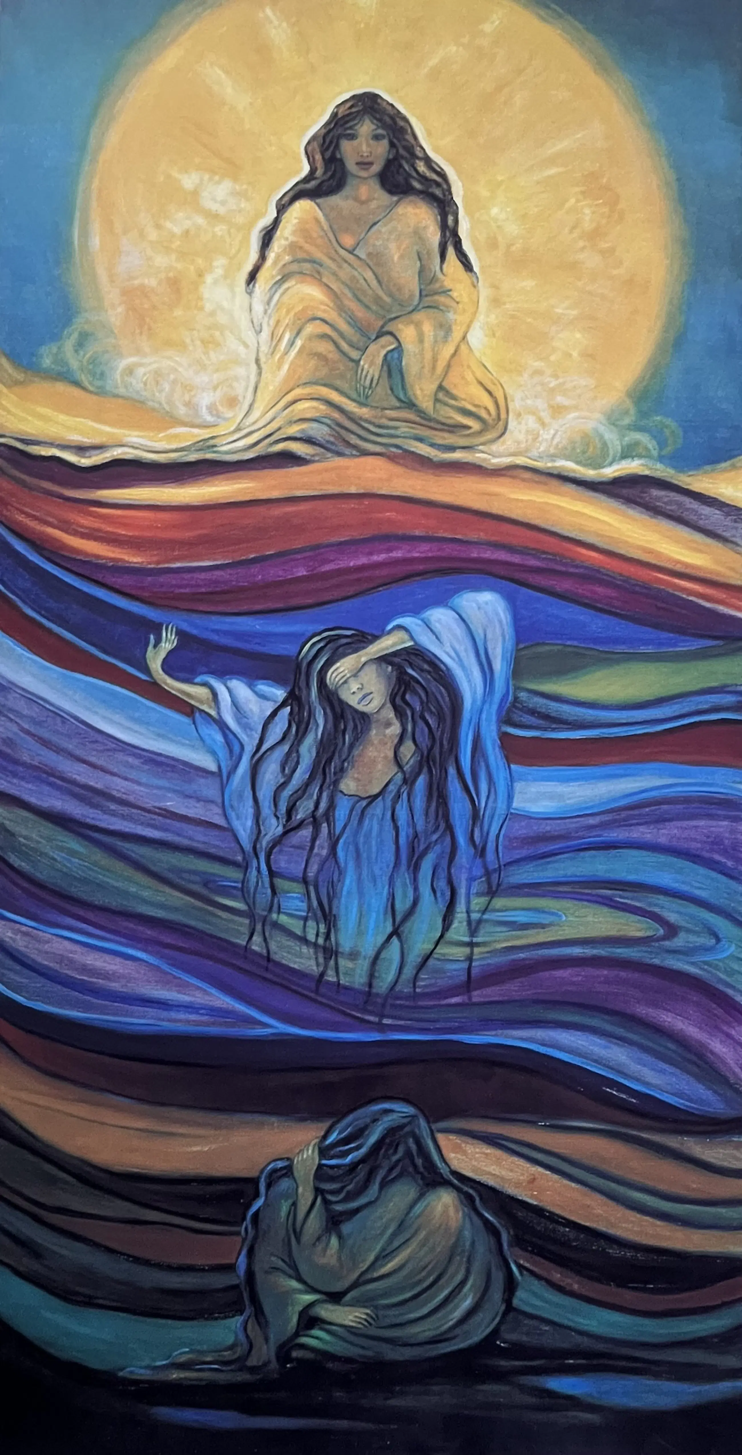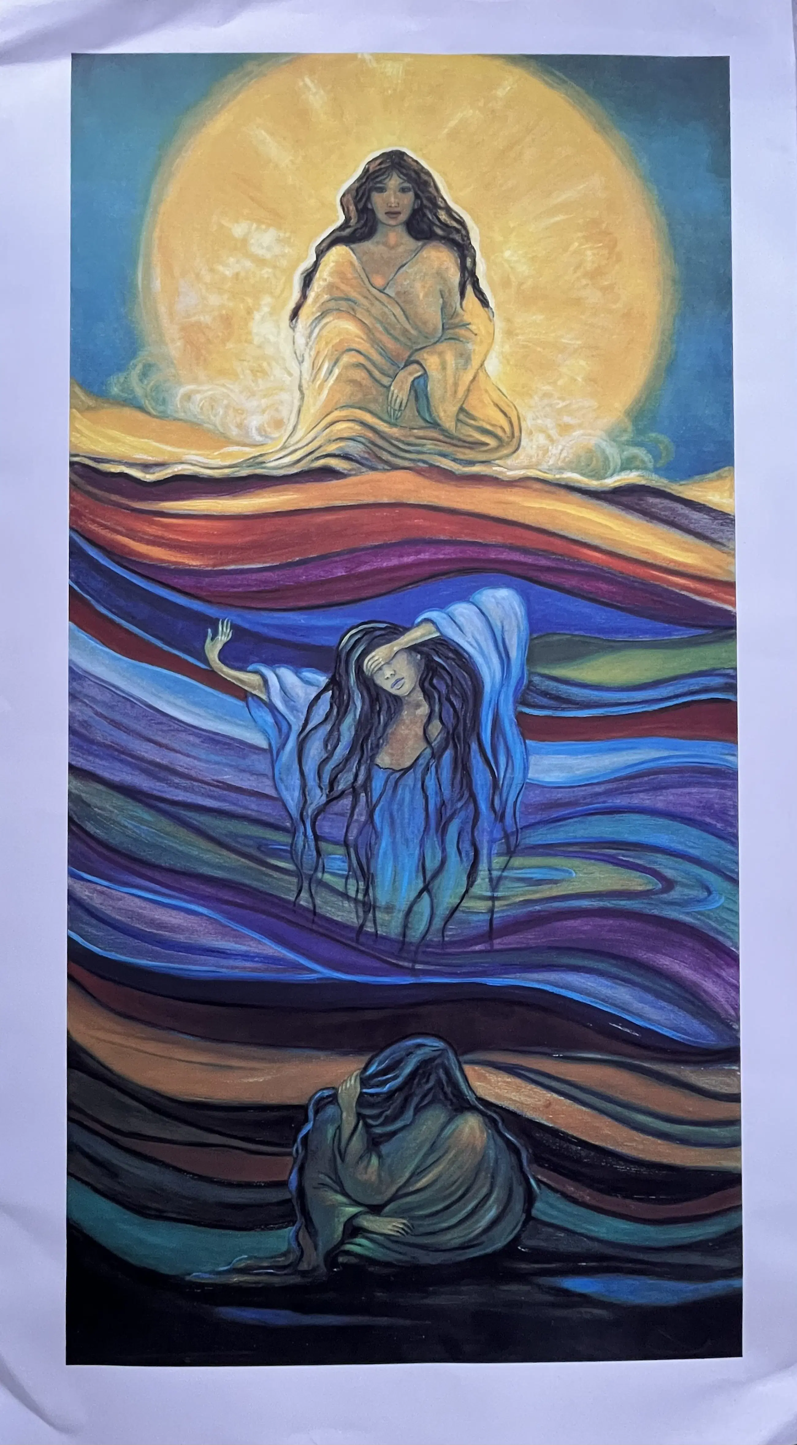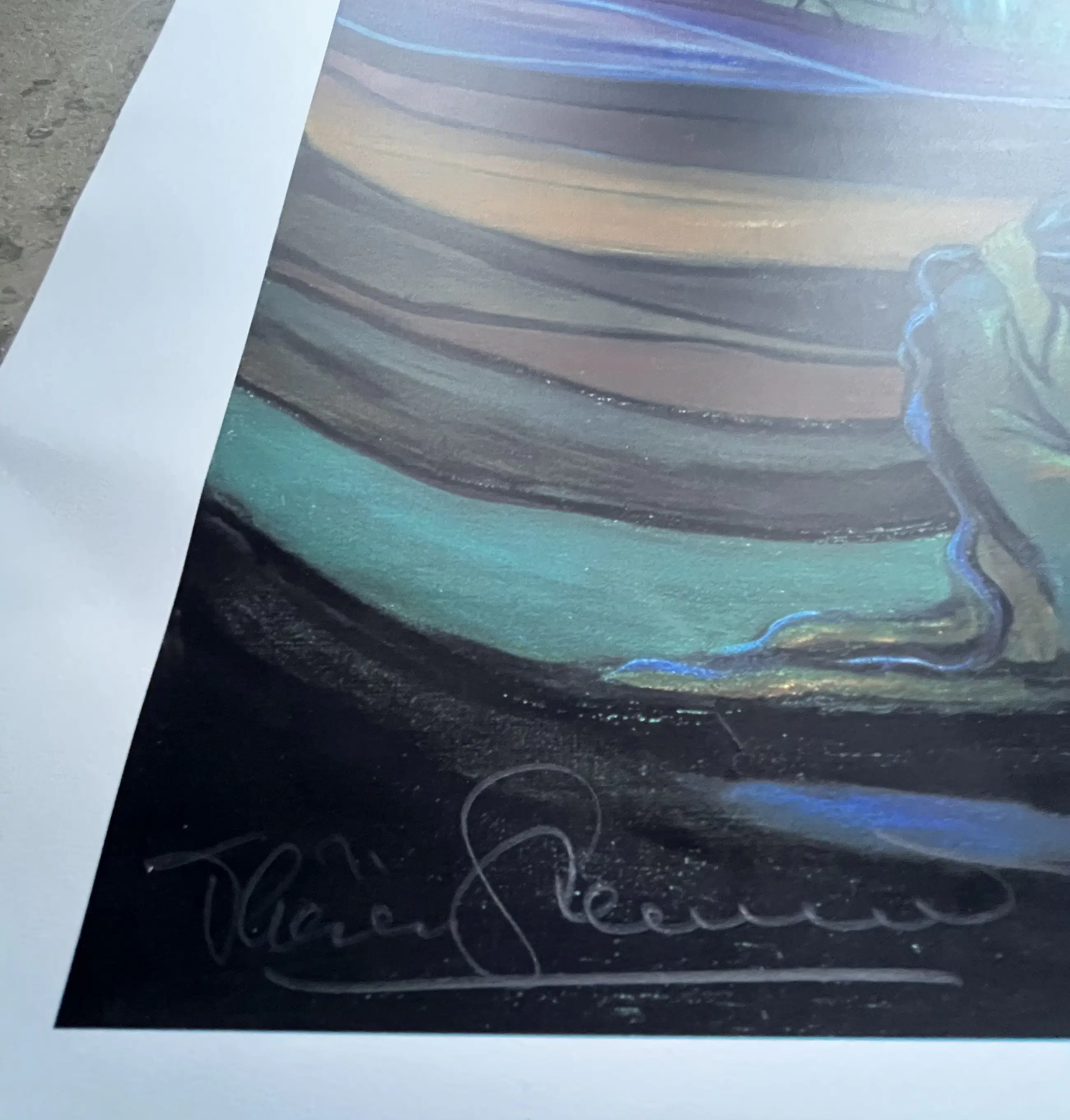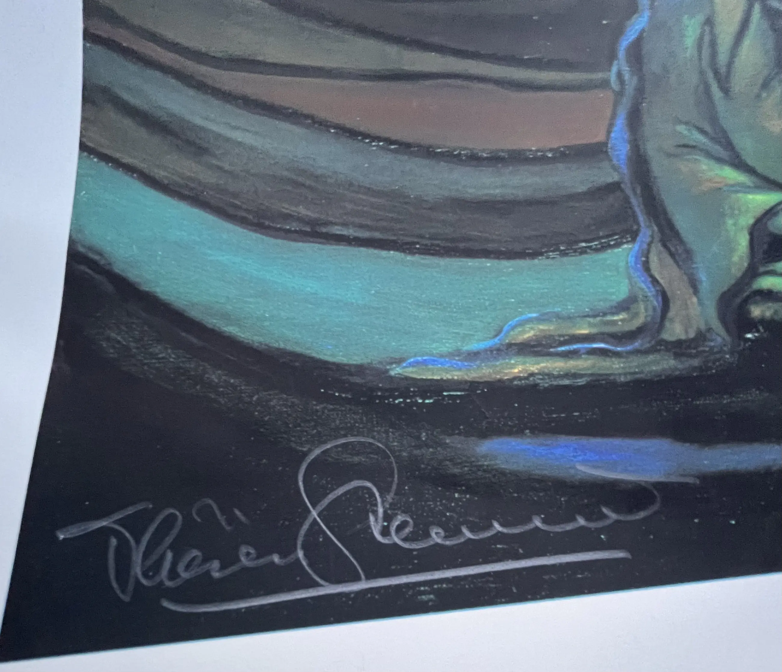 Grote gesigneerde zeefdruk. Van een voor mij onbekende kunstenaar. Zeer kleurrijk werk. Goede staat.