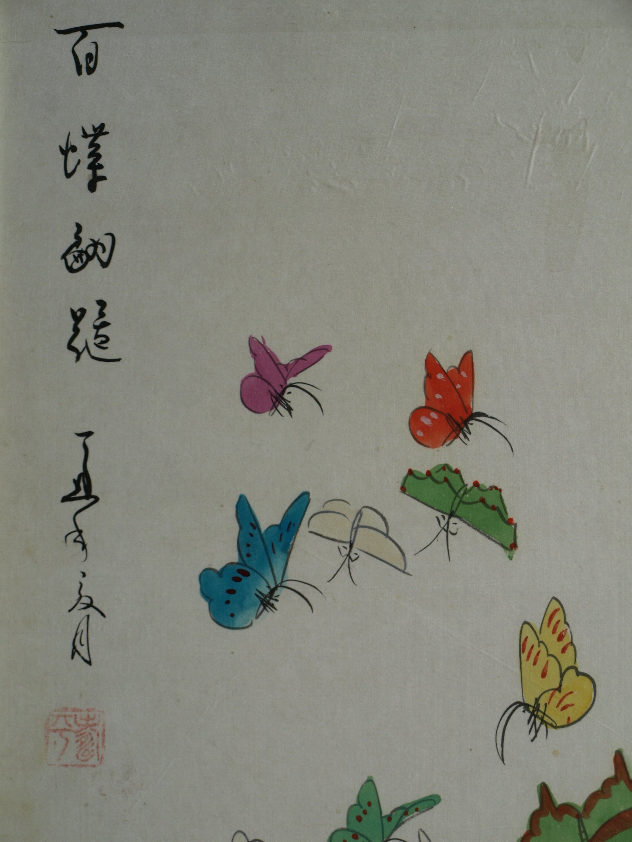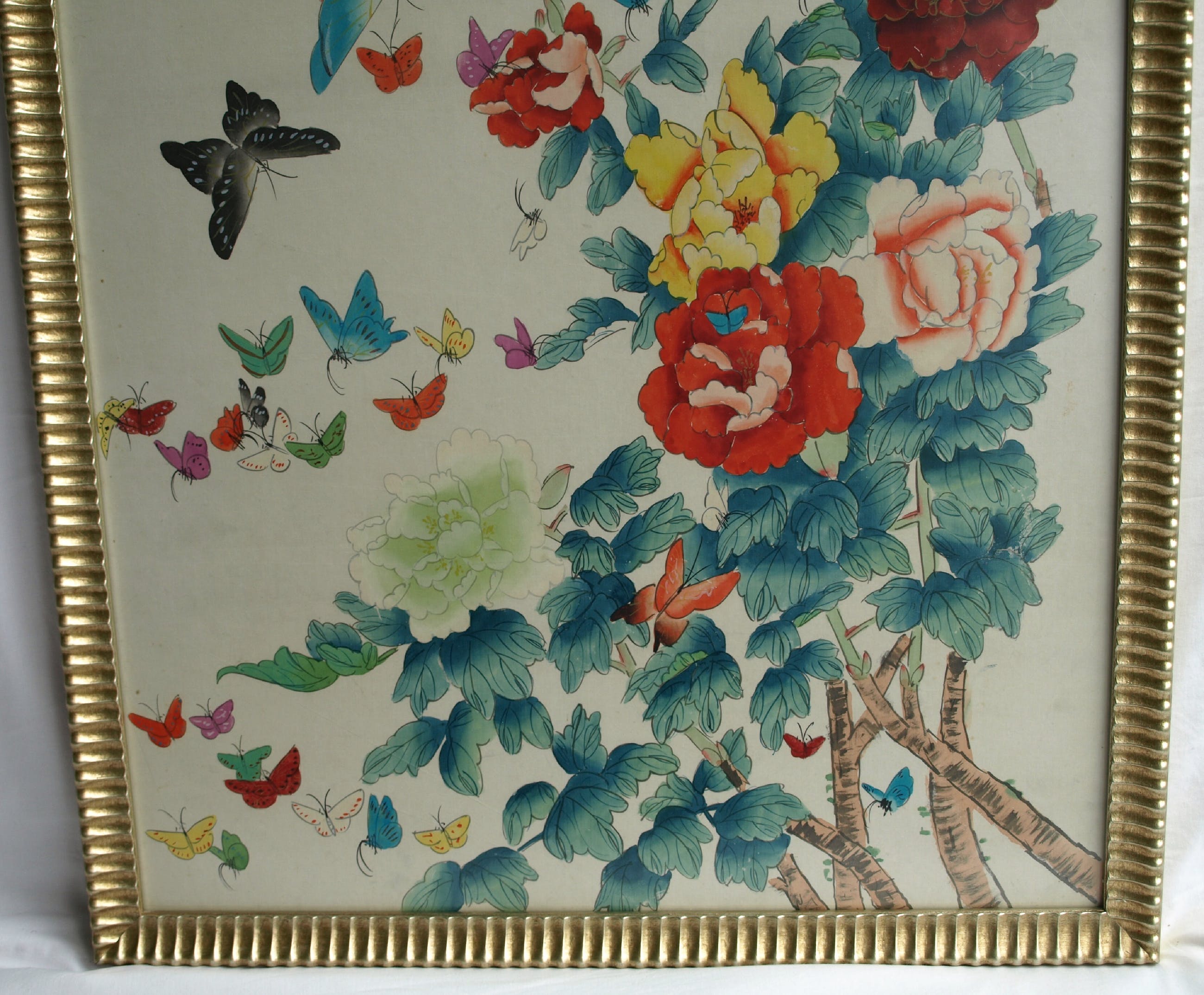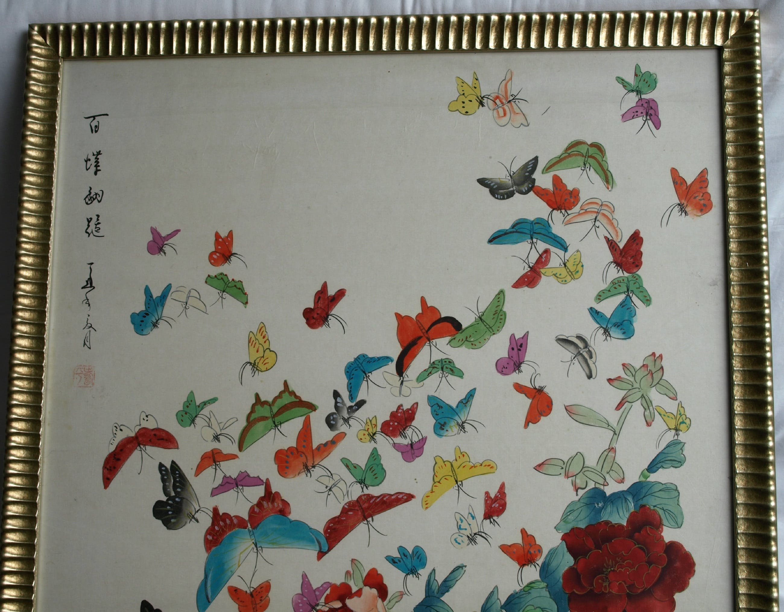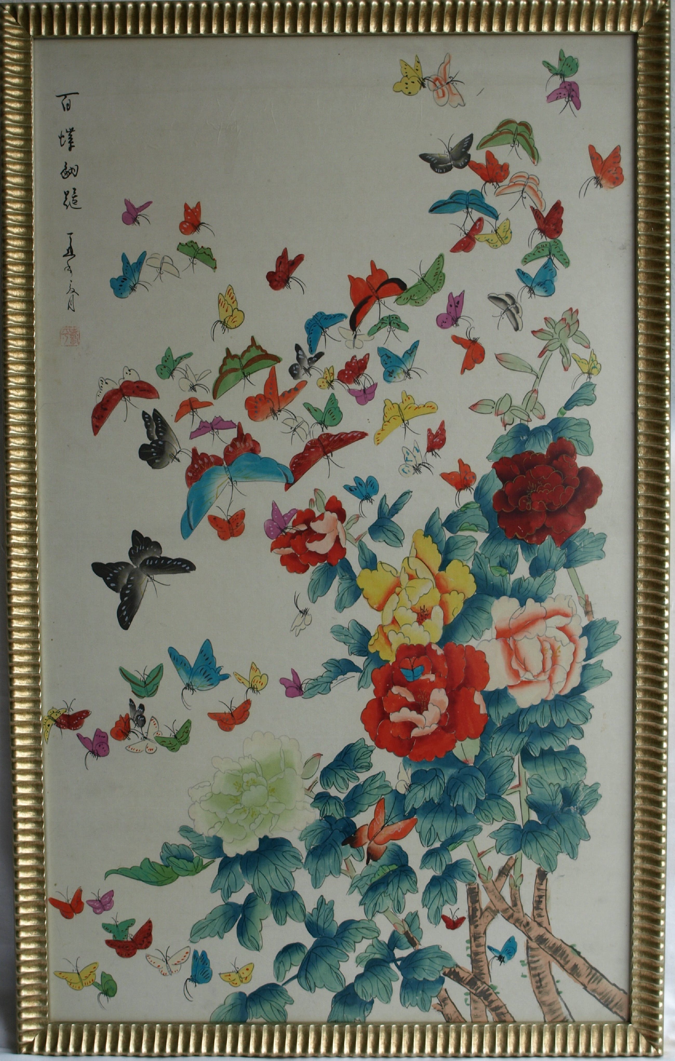 | In goede staat met lichte ouderdomssporen, wat vlekjes in het zijden doek. Zie ook de foto’s voor een eigen indruk. Kan zo aan de muur. | |