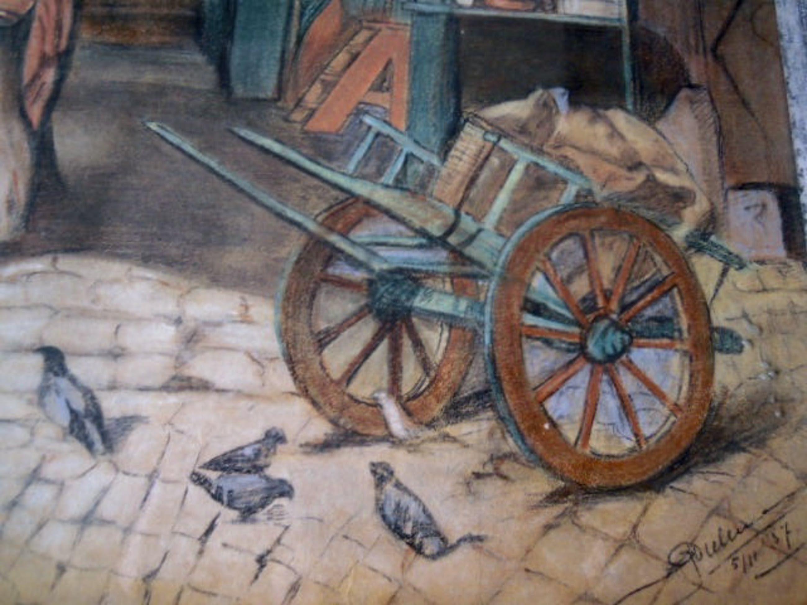 Grote tekening in Dickens stijl uit 1937 = gesigneerd met waarschijnlijk J. Dielemans - maar is niet goed leesbaar.