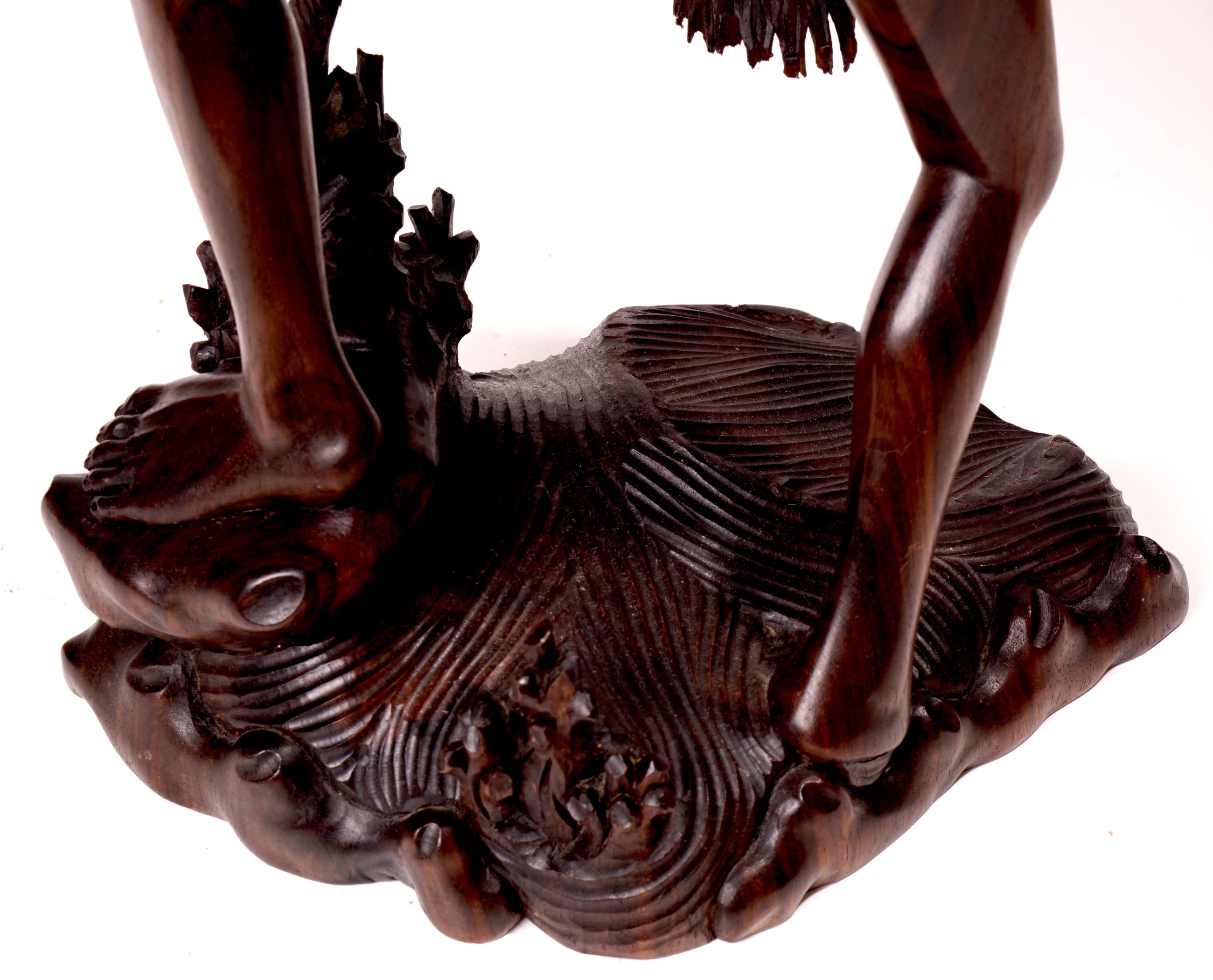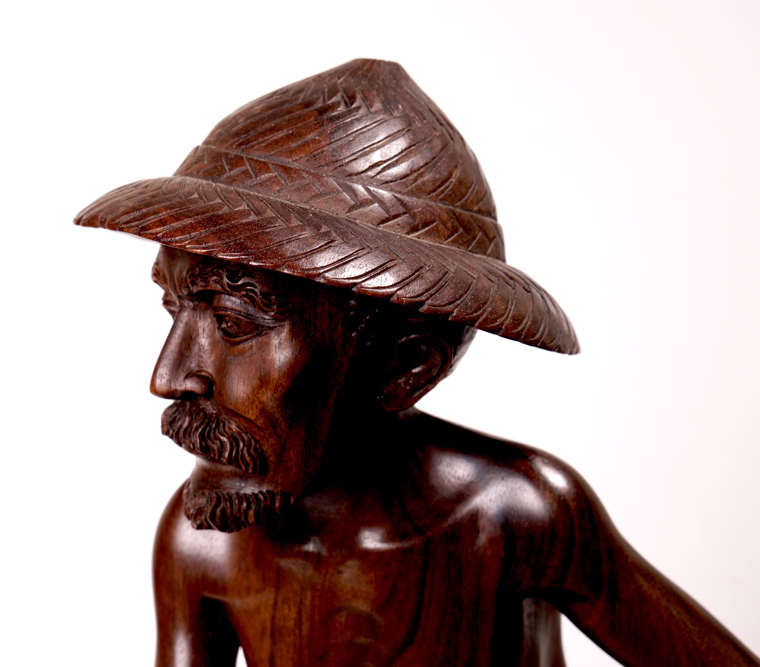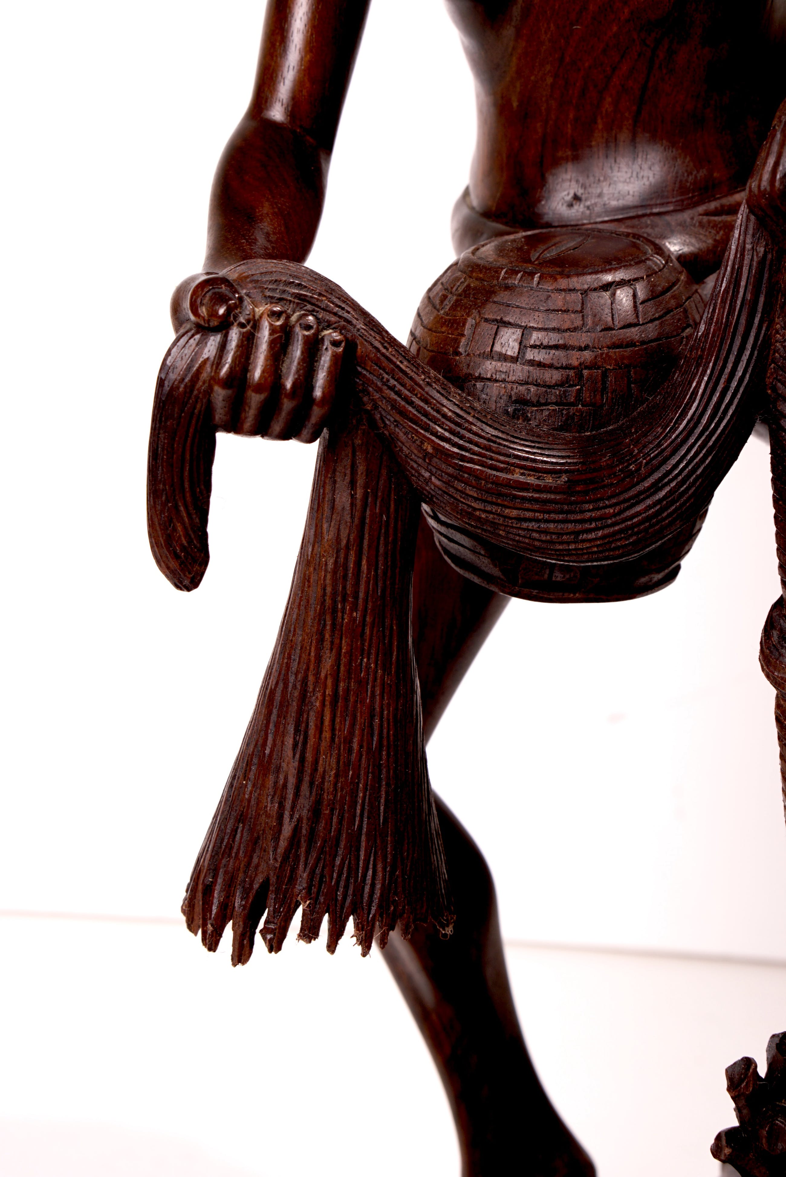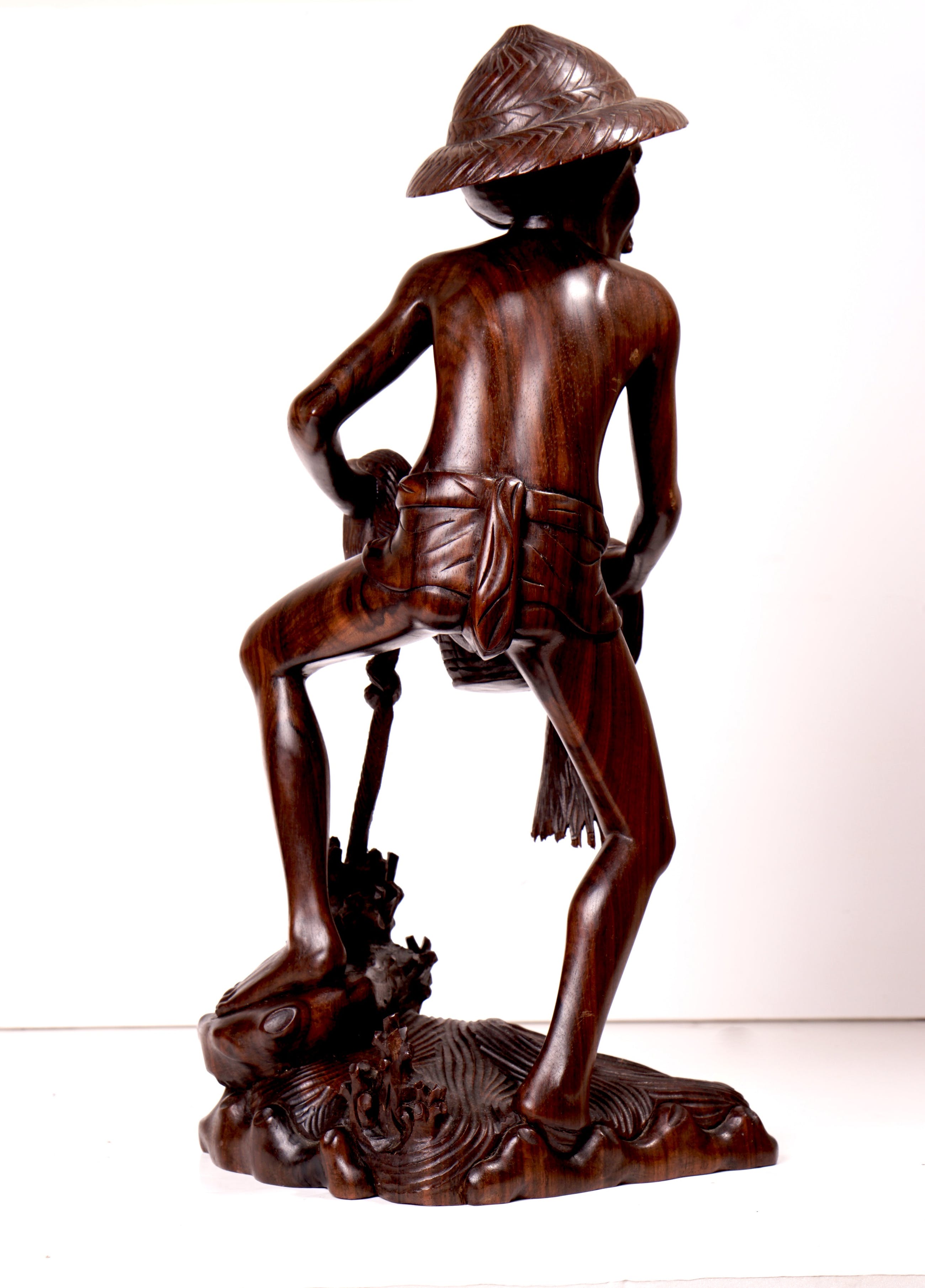 Groot, goed dynamisch vormgegeven en uitzonderlijk goed gestoken beeld van een visser staand in het water, terwijl hij een net uitwerpt. Stofuitdrukking en lichaam is zeer natuurgetrouw. Het beeld is in prima staat. Bij de onderzijde van het net zijn wat lichte beschadigingen, maar dat voegt zelfs iets toe aan de natuurgetrouwheid van het net (zie foto's). Beeld is verder niet gesigneerd.