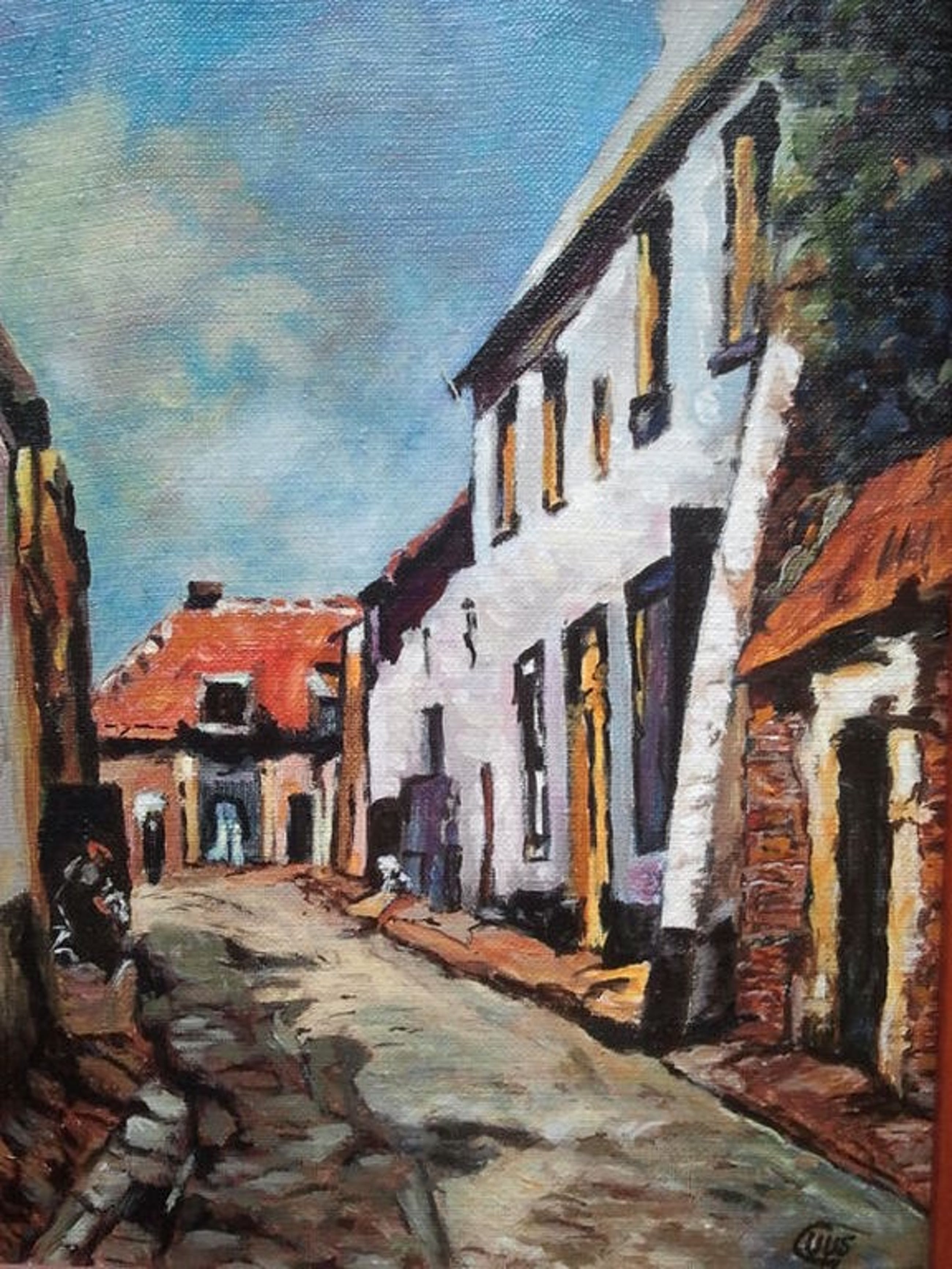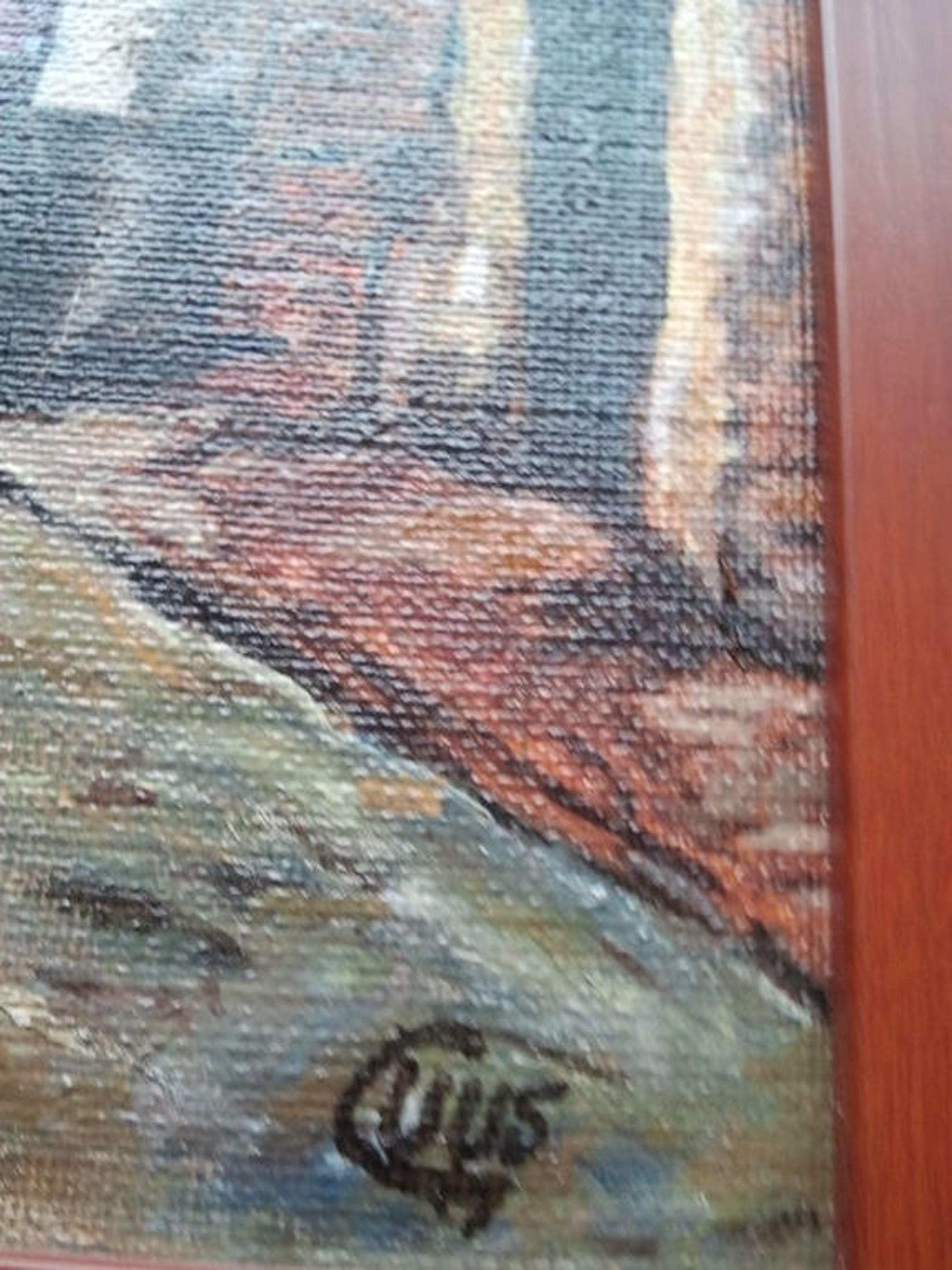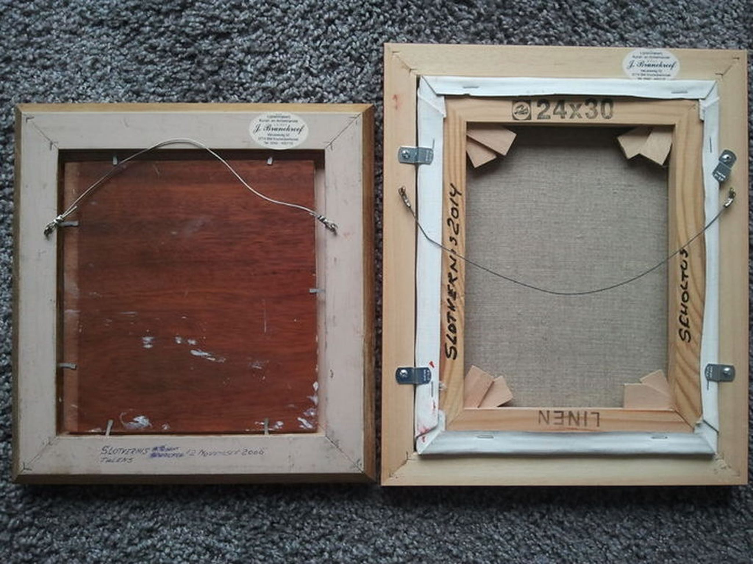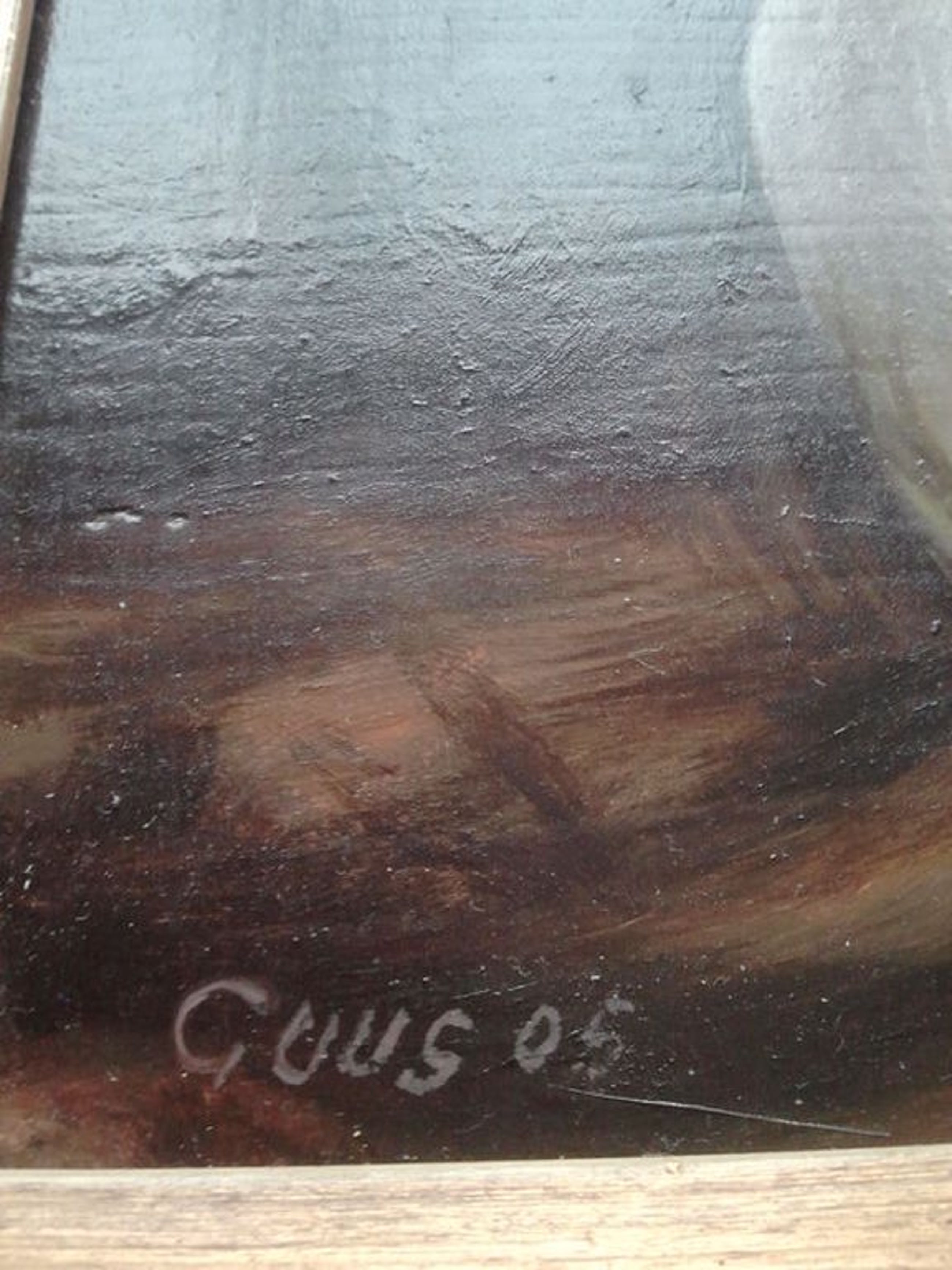 Twee mooie, kleine schilderijtjes, rechtsonder gesigneerd met 'Guus'. Afmeting: 29 x 30 cm - 35,5 x 30 cm ( met lijst )