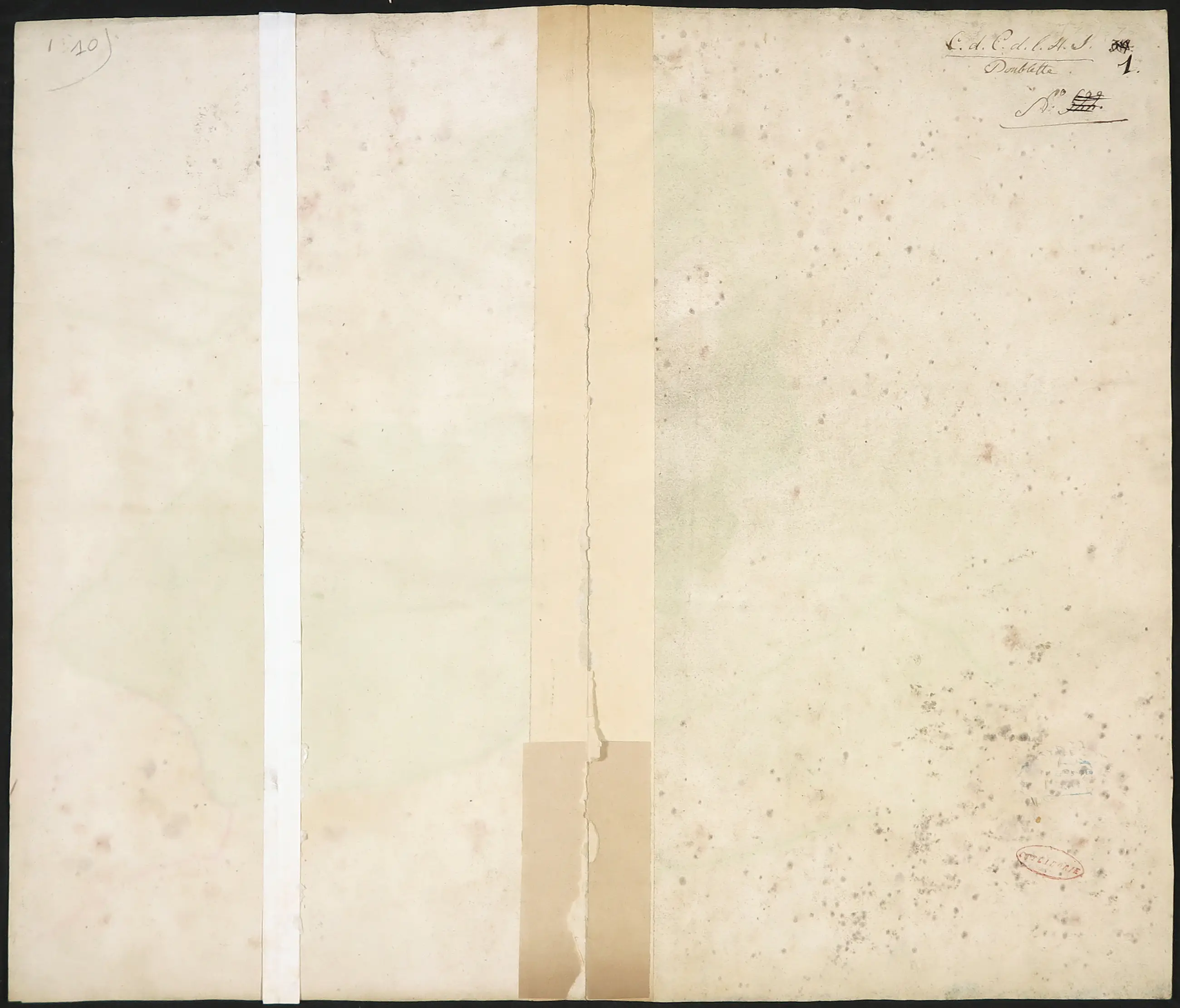 | Goede staat gezien de leeftijd. De kleuren hebben afgegeven, nadat het blad is dubbelgevouwen. In het midden dus een vouwlijn. Beetje smoezelig/vlekkerig langs de randen. | |||