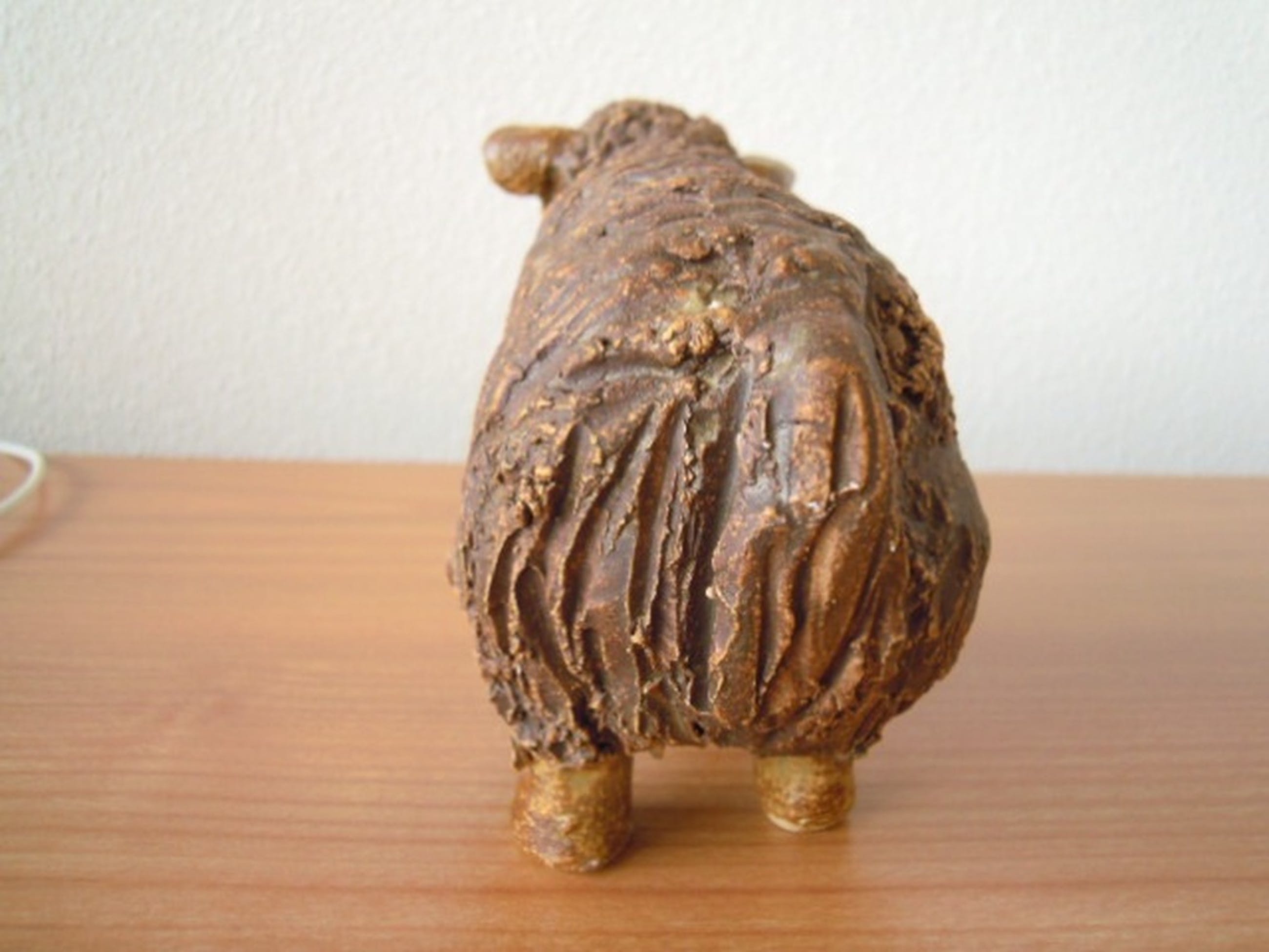 Handgemaakt beeldje van schaap 19 X 13 cm - gesigneerd JB.