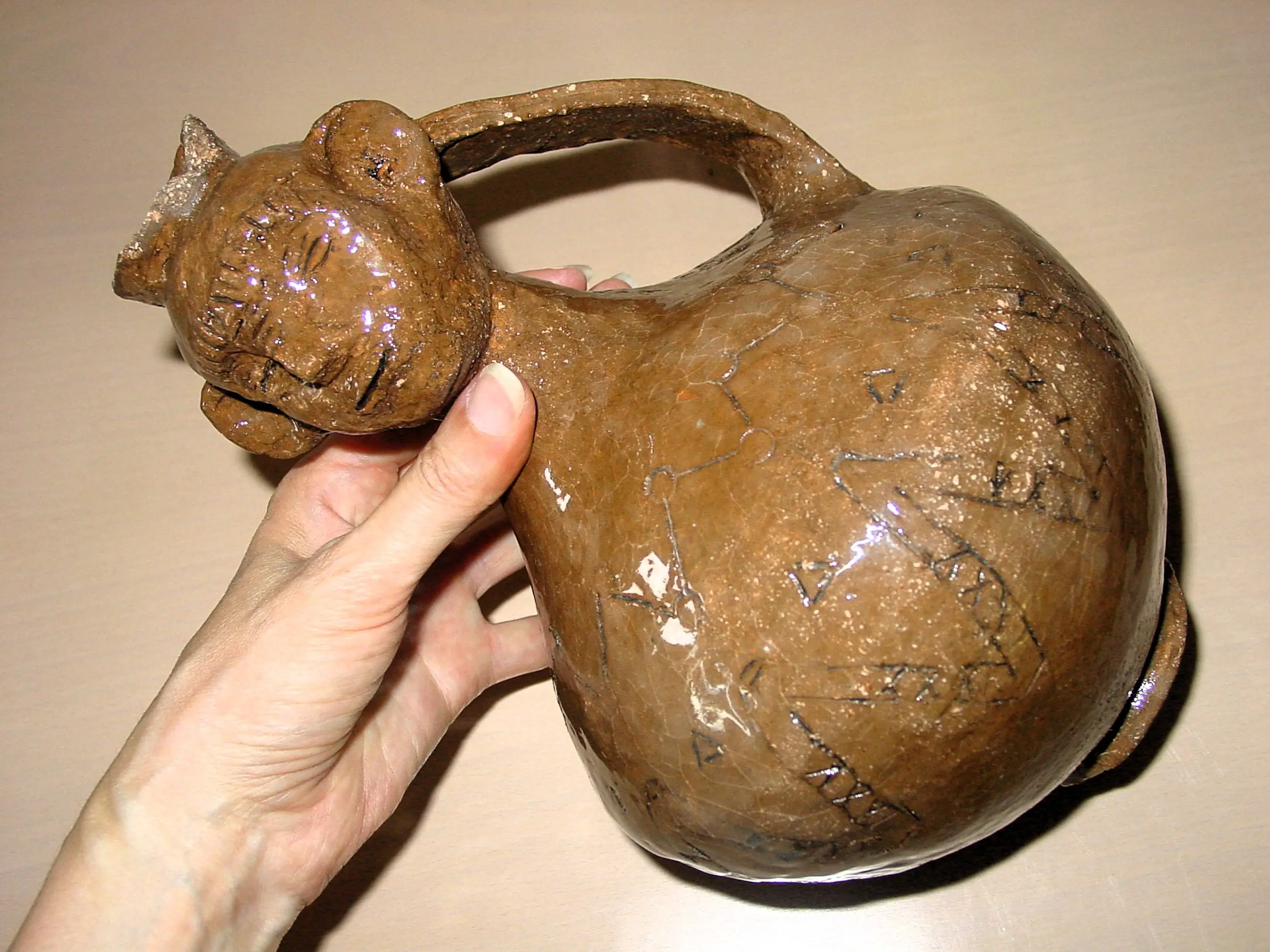 Onbekend - Handgemaakte geglazuurde kruik Peruaanse Face Jug van klei