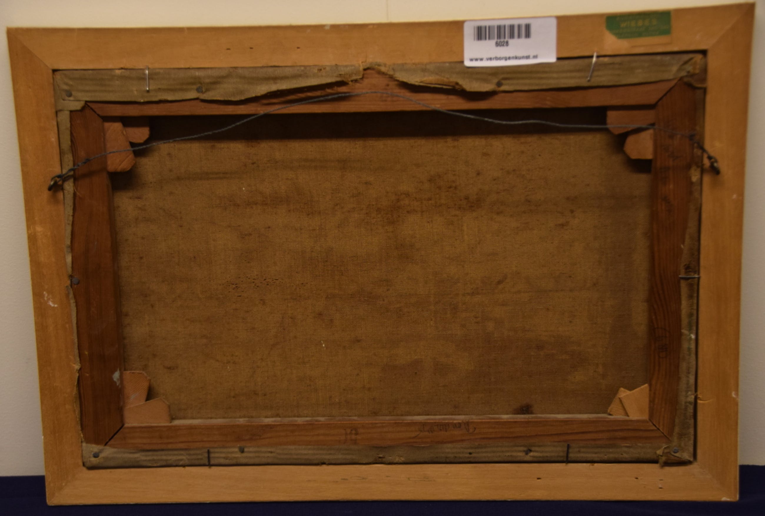 | Er is craquelé aanwezig in de verflaag aan de linkerzijde, ook zijn er enkele nauwelijks opvallende kleine beschadigingen aan de verflaag. | |