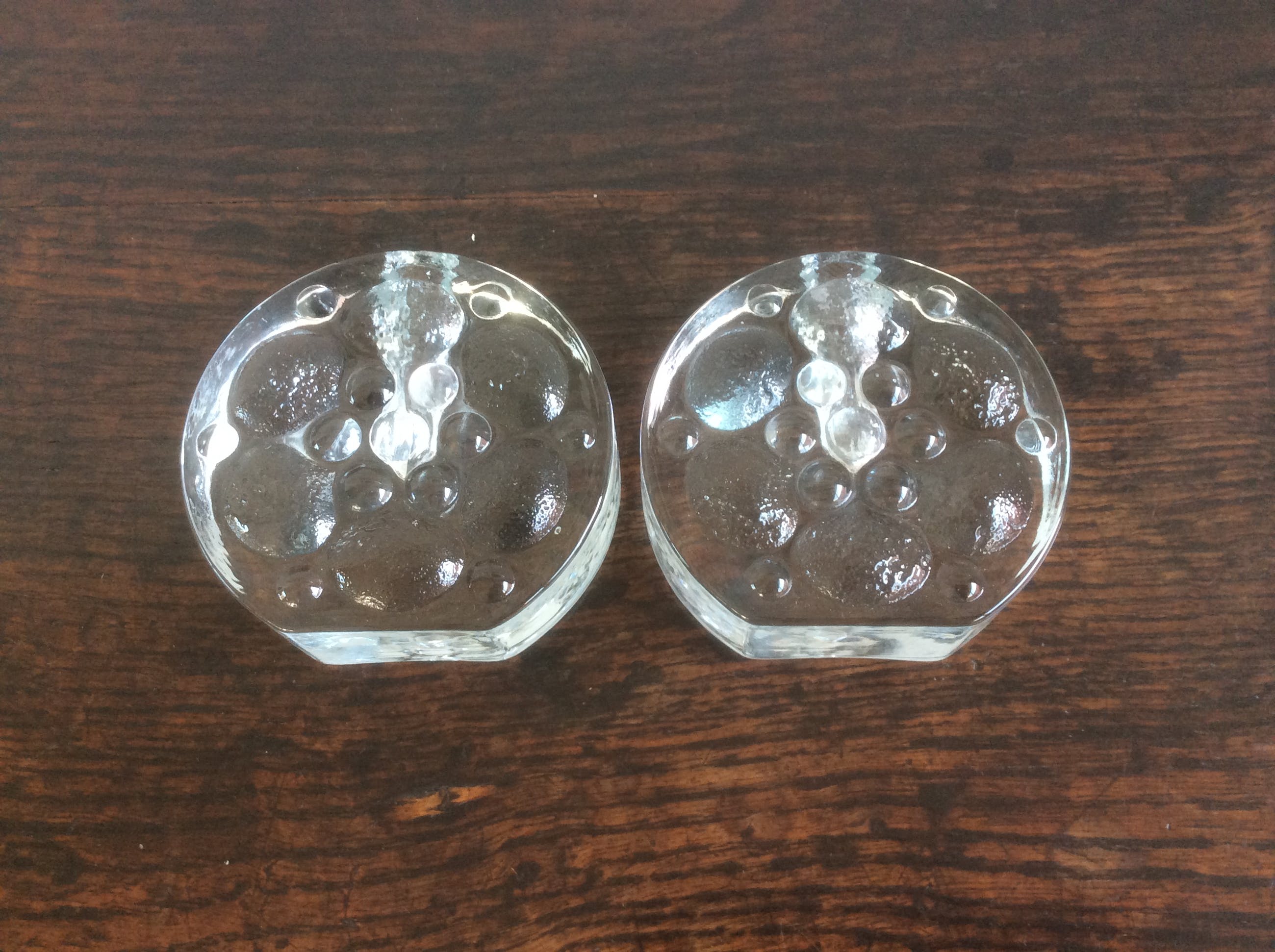Twee solifleur vaasjes ontworpen door Hein Düsterhaus. Uitgevoerd door Walther Design, Duitsland. Opening 1,75 cm. De vaasjes zijn puntgaaf.
