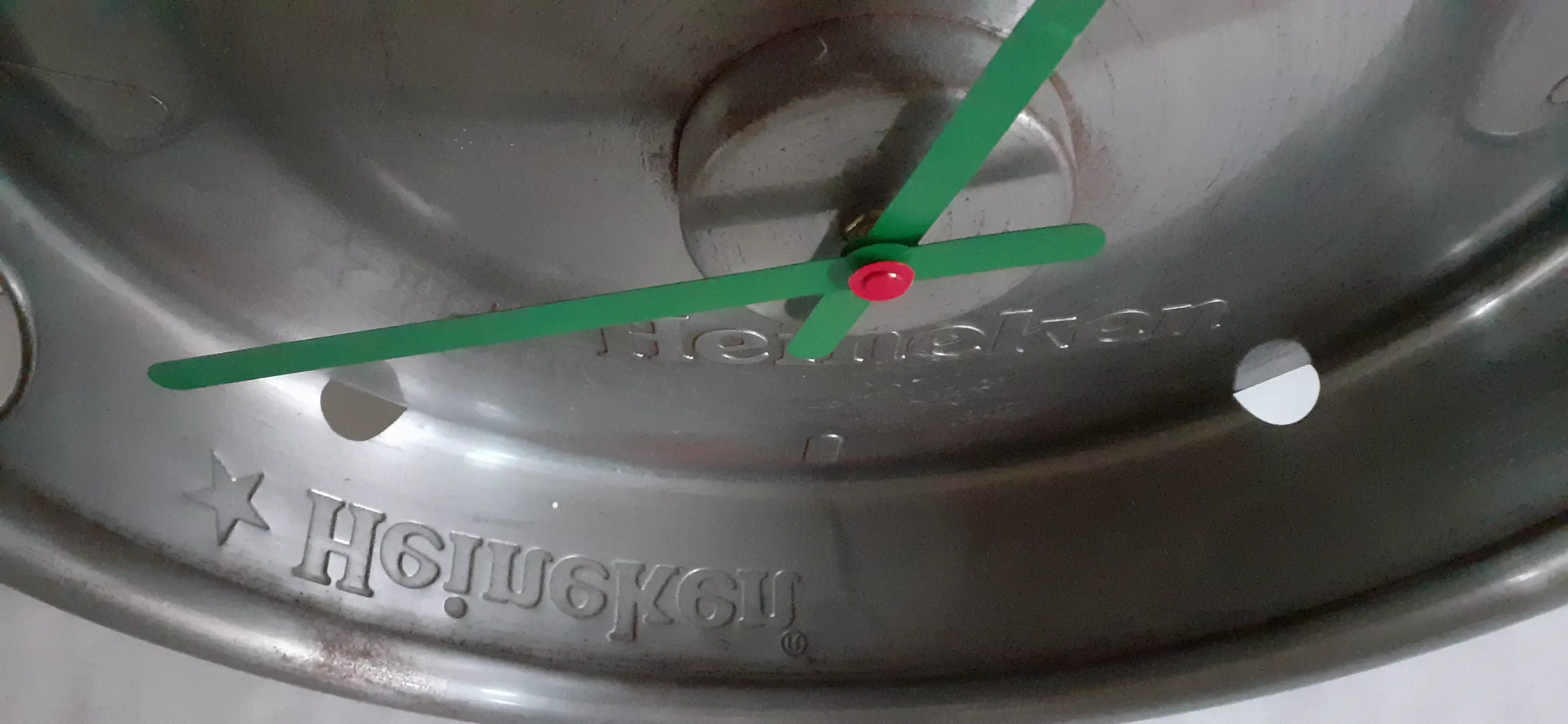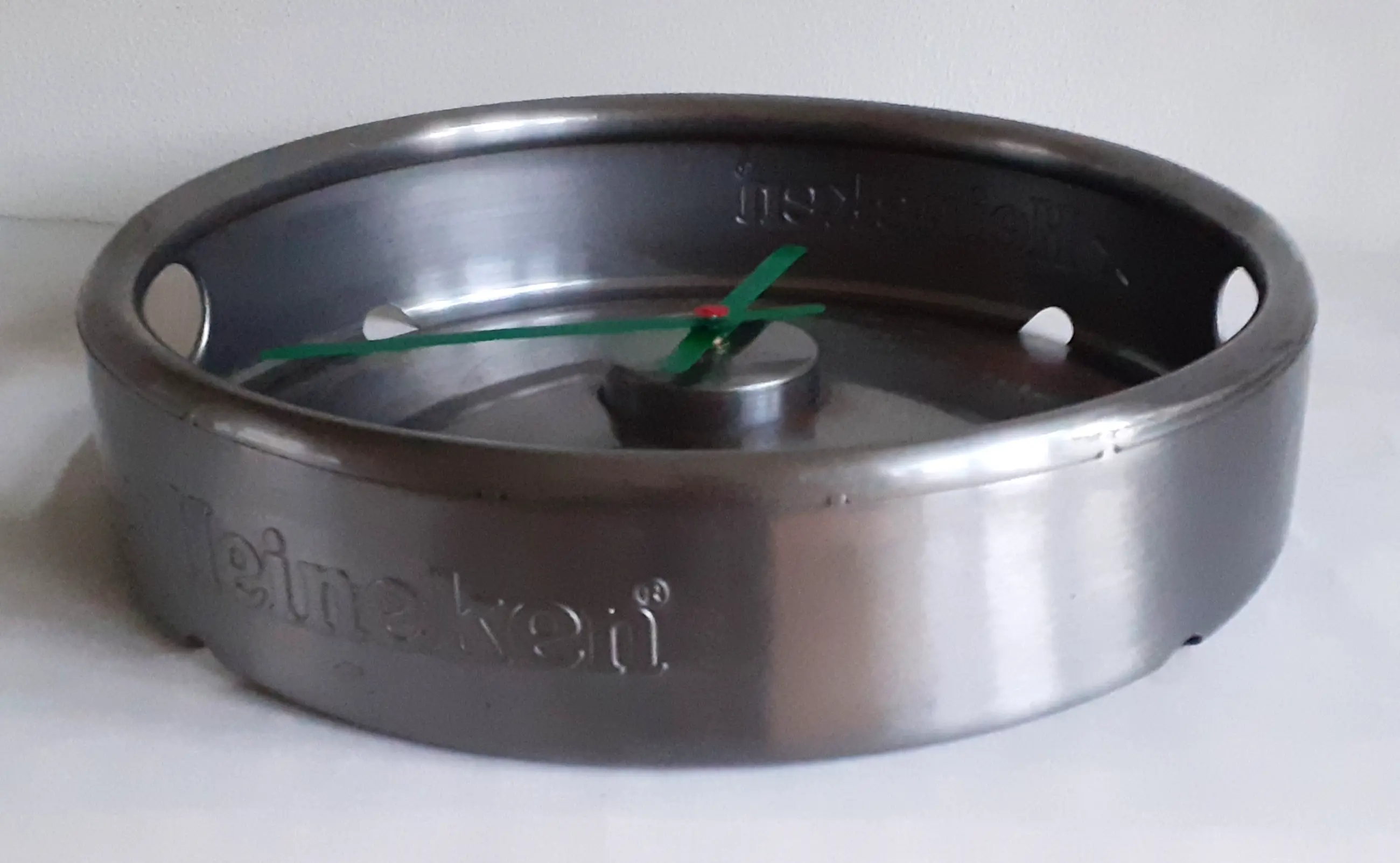 Originele Heineken vintage jaren '80 reclame klok, bierfust draagrand.