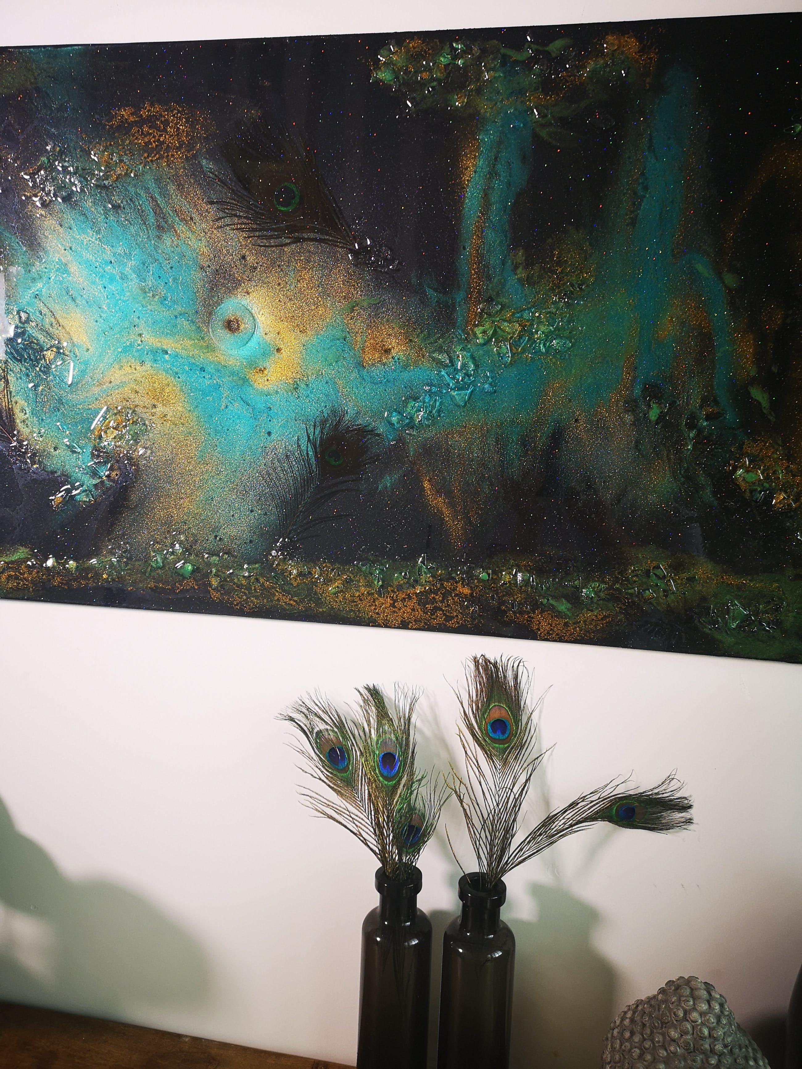 Dit prachtige resin kunstwerk is met meerder lagen gemaakt.