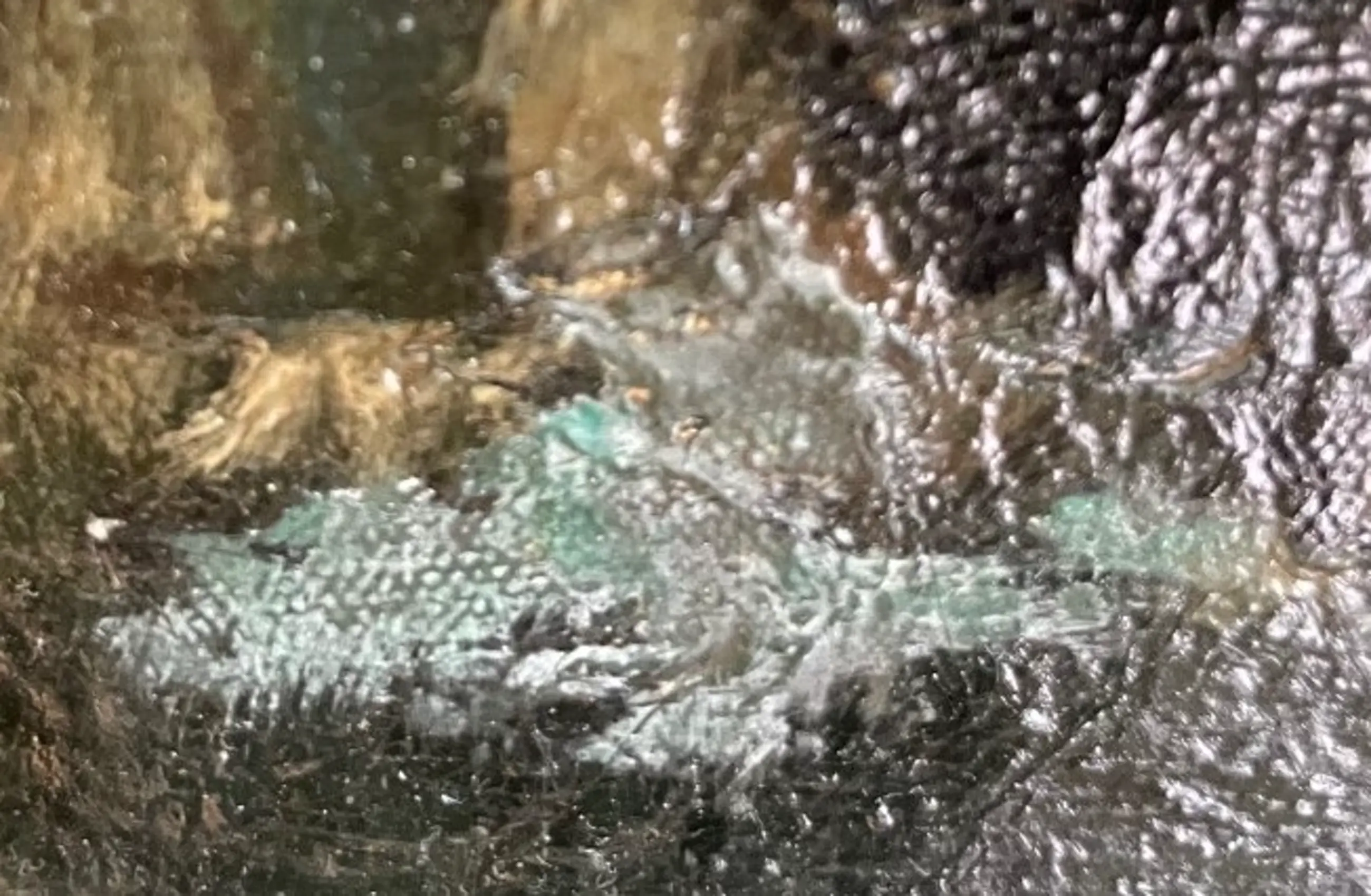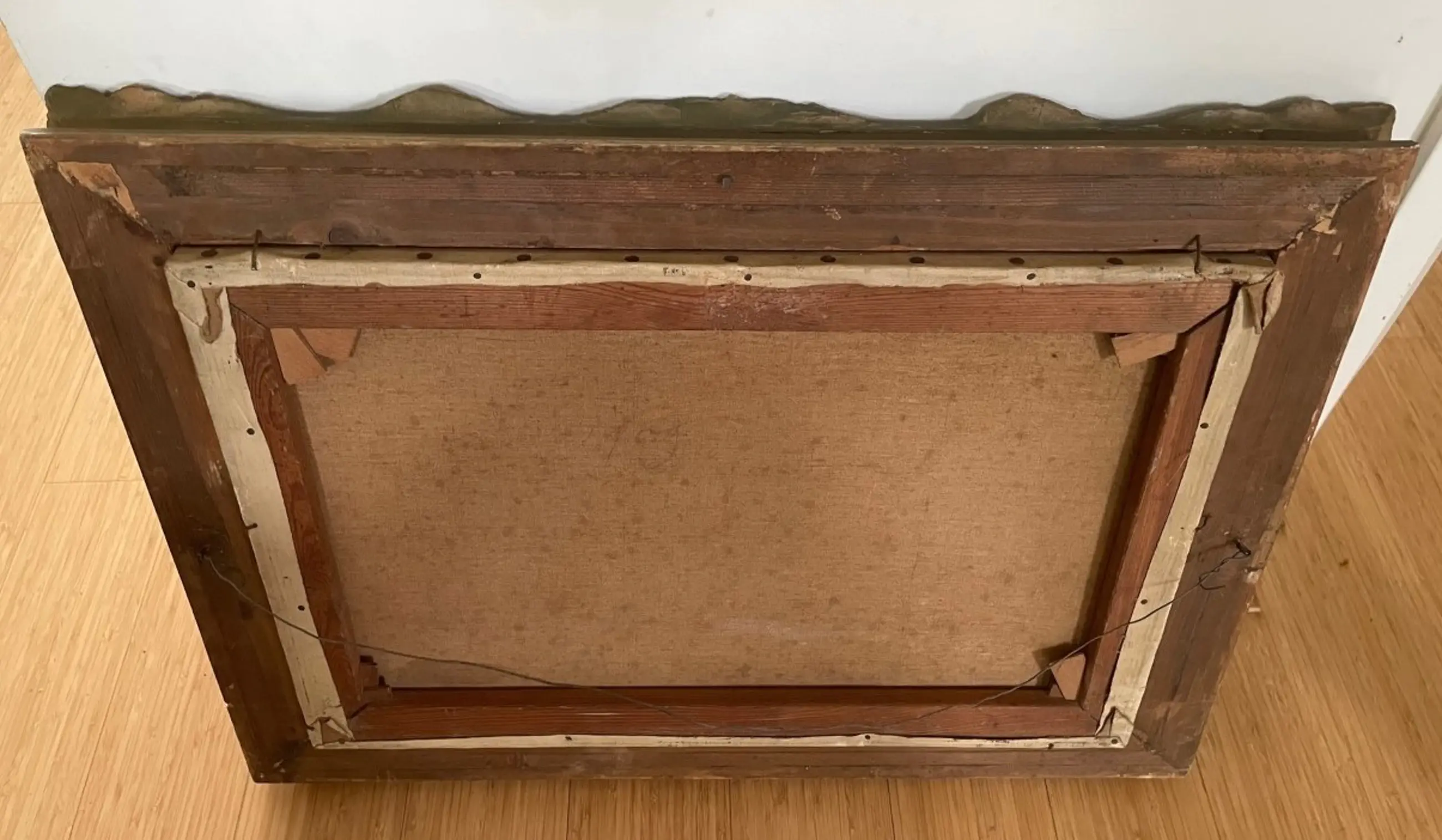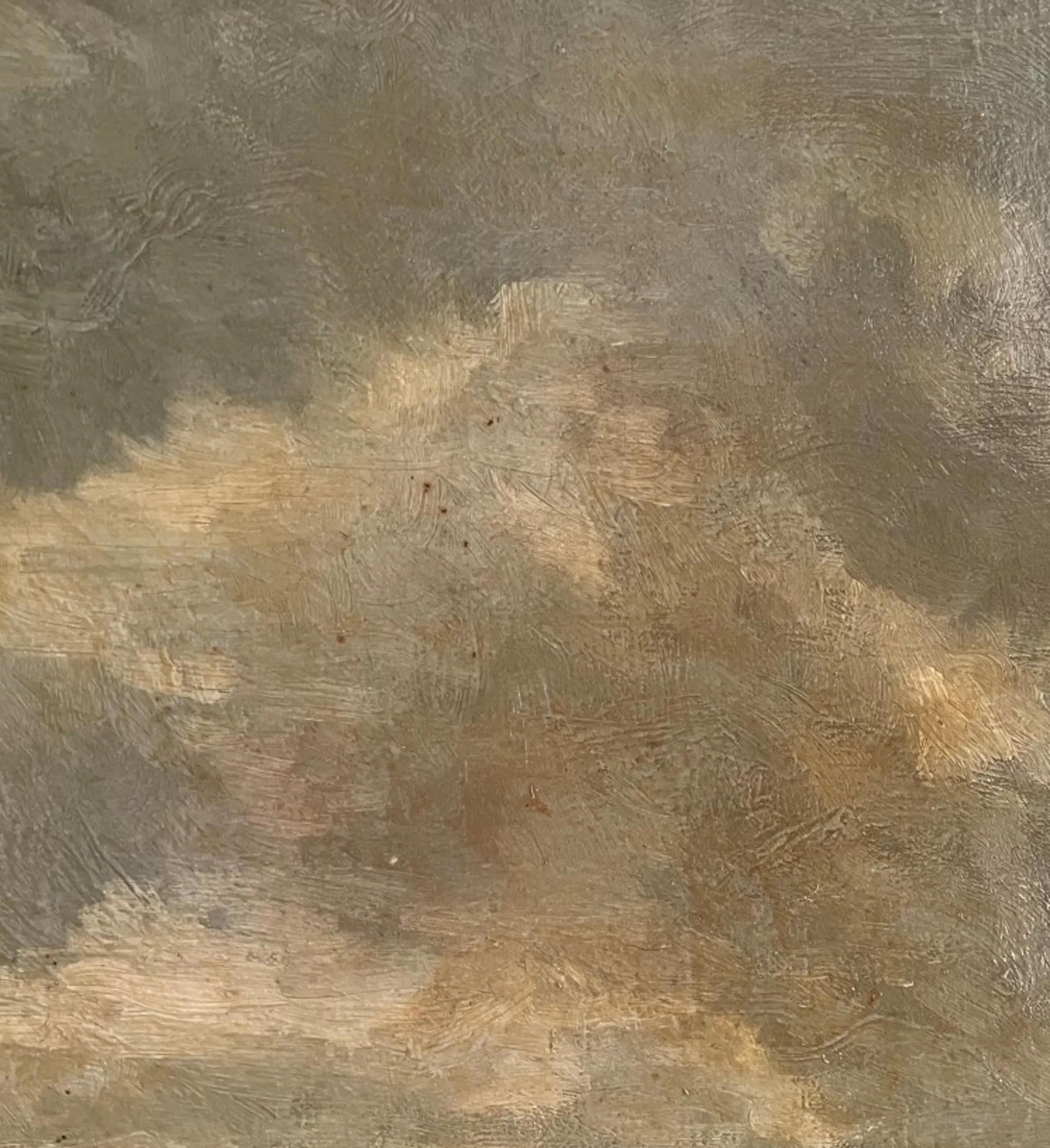 Het werk is vrij vuil en heeft rechts onderin een reparatie (grijsgroene verf)