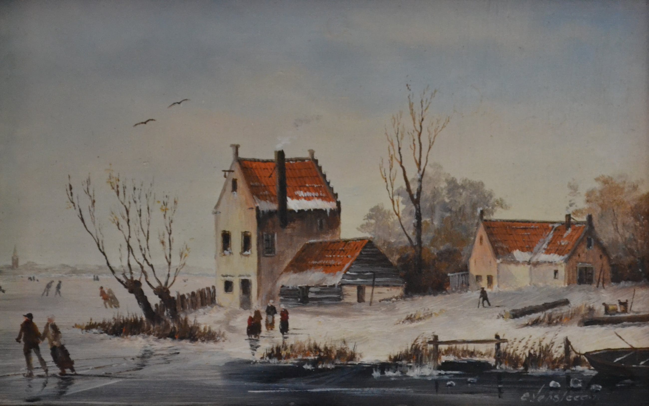 Fraai en fijn geschilderd winterlandschap door (?) Versteeg, r.o. gesigneerd. Olieverf op paneel en voorzien van mooie lijst. Wordt goed verpakt en aangetekend verstuurd.