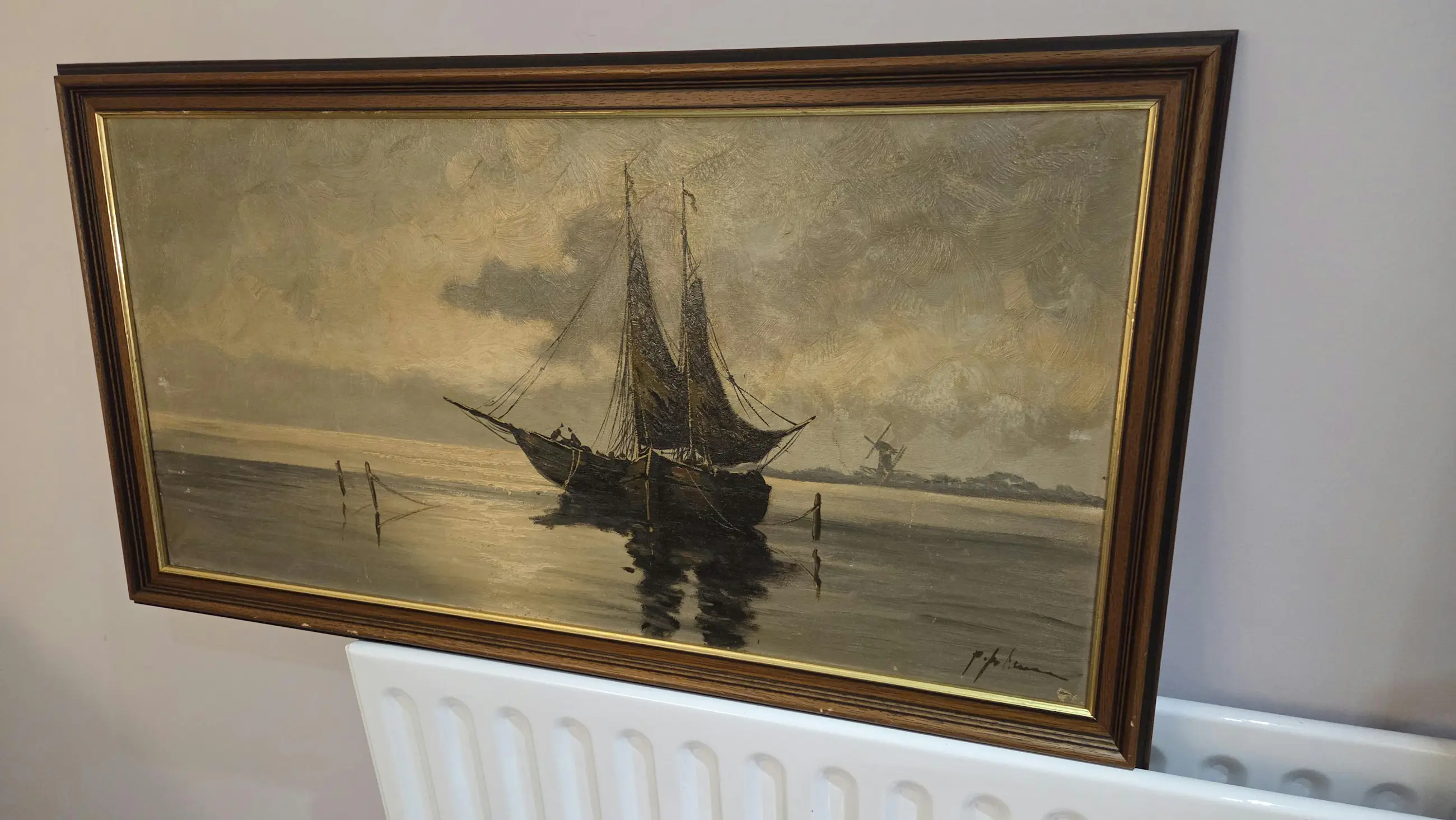 Het schilderij verkeert in goede conditie, met slechts lichte gebruikssporen.