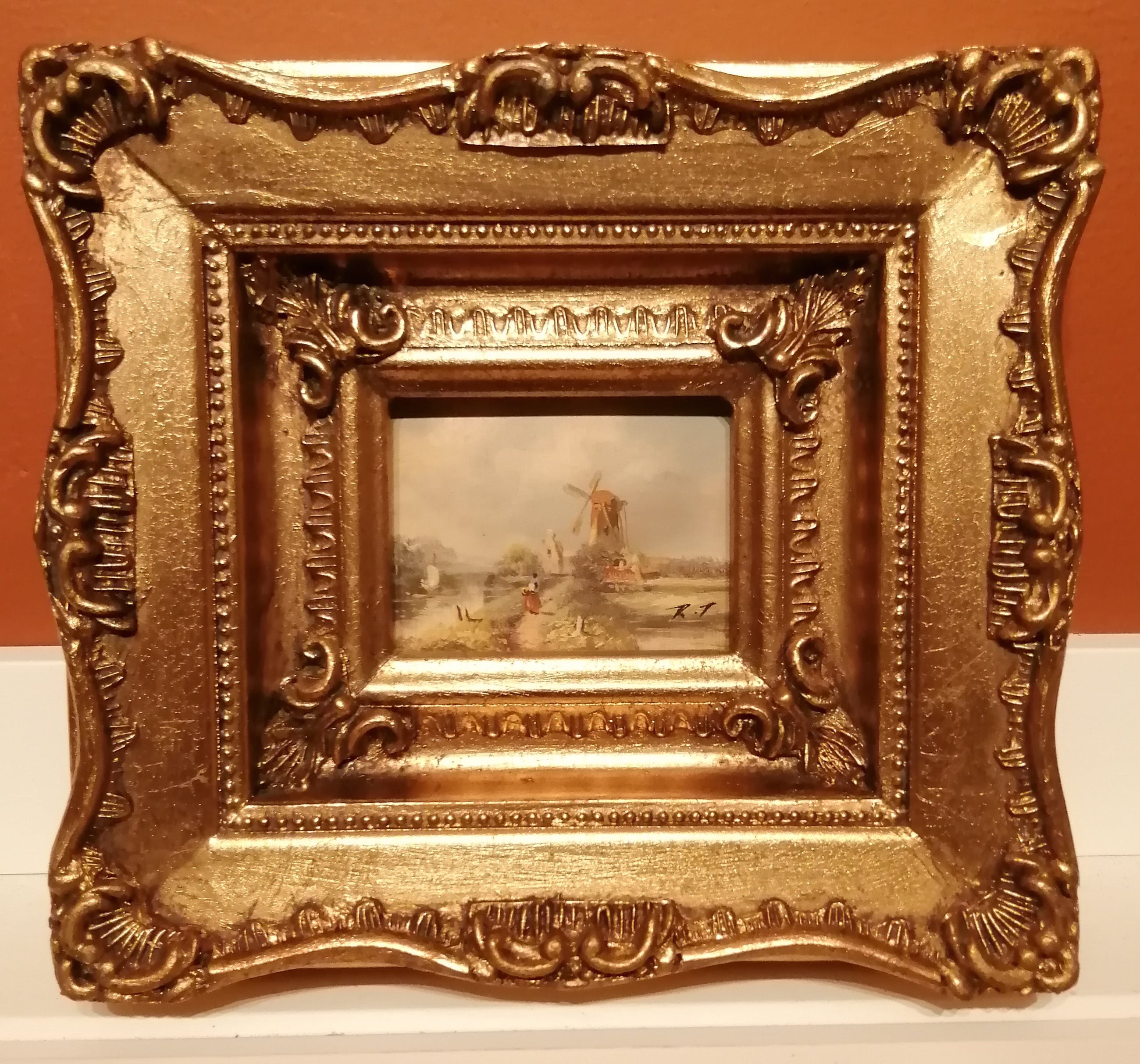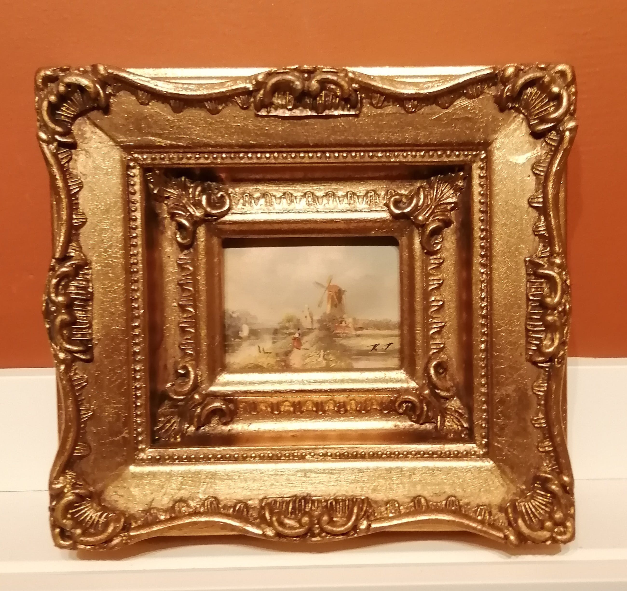 Een prachtig 19e eeuws (Hollandse School) miniatuur landschap door monogrammist. Het werk is van hoge kwaliteit en in zeer goede staat, zie foto's deze zijn onderdeel van de beschrijving. Het schilderij heeft een prachtige lijst, geheel in perfecte staat. De lijst is waarschijnlijk gemaakt door Biggs & Sons.