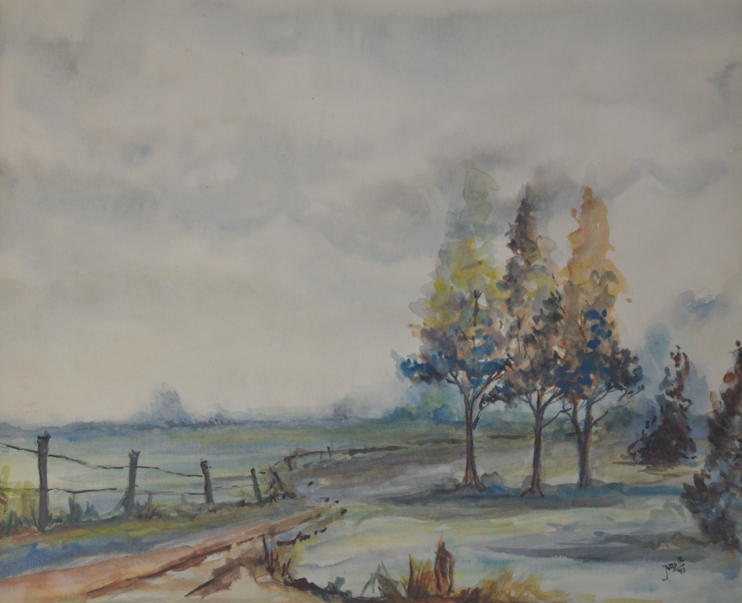 Mooie aquarel van landschap met zandpad. Rechtsonder gesigneerd / gemonogrameerd maar moeilijk te lezen. Gedateerd 1993. Voorzien van lijst met mat glas en pass-partout. Alles in prima conditie. Verso staat met pen geschreven: De Rooy Tholen. Wordt goed verpakt en aangetekend verstuurd