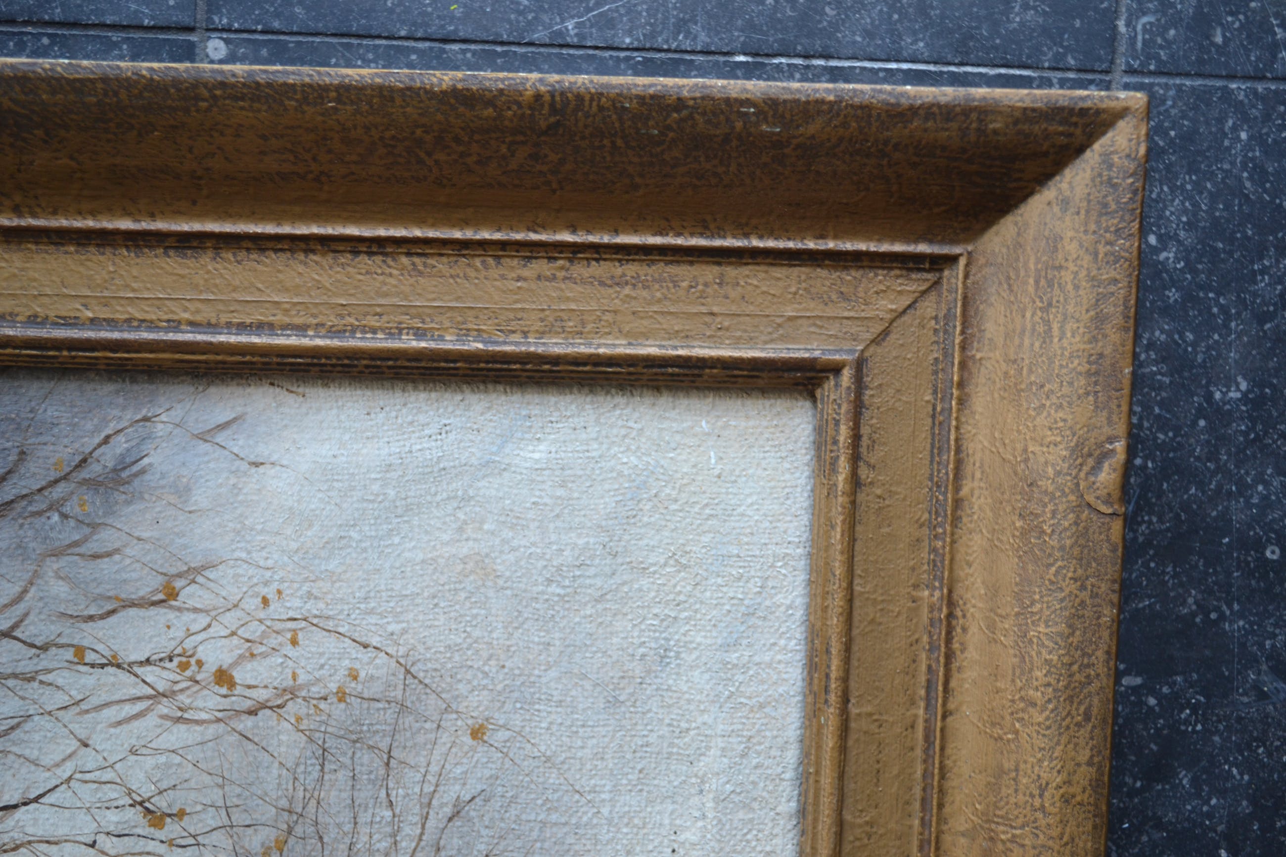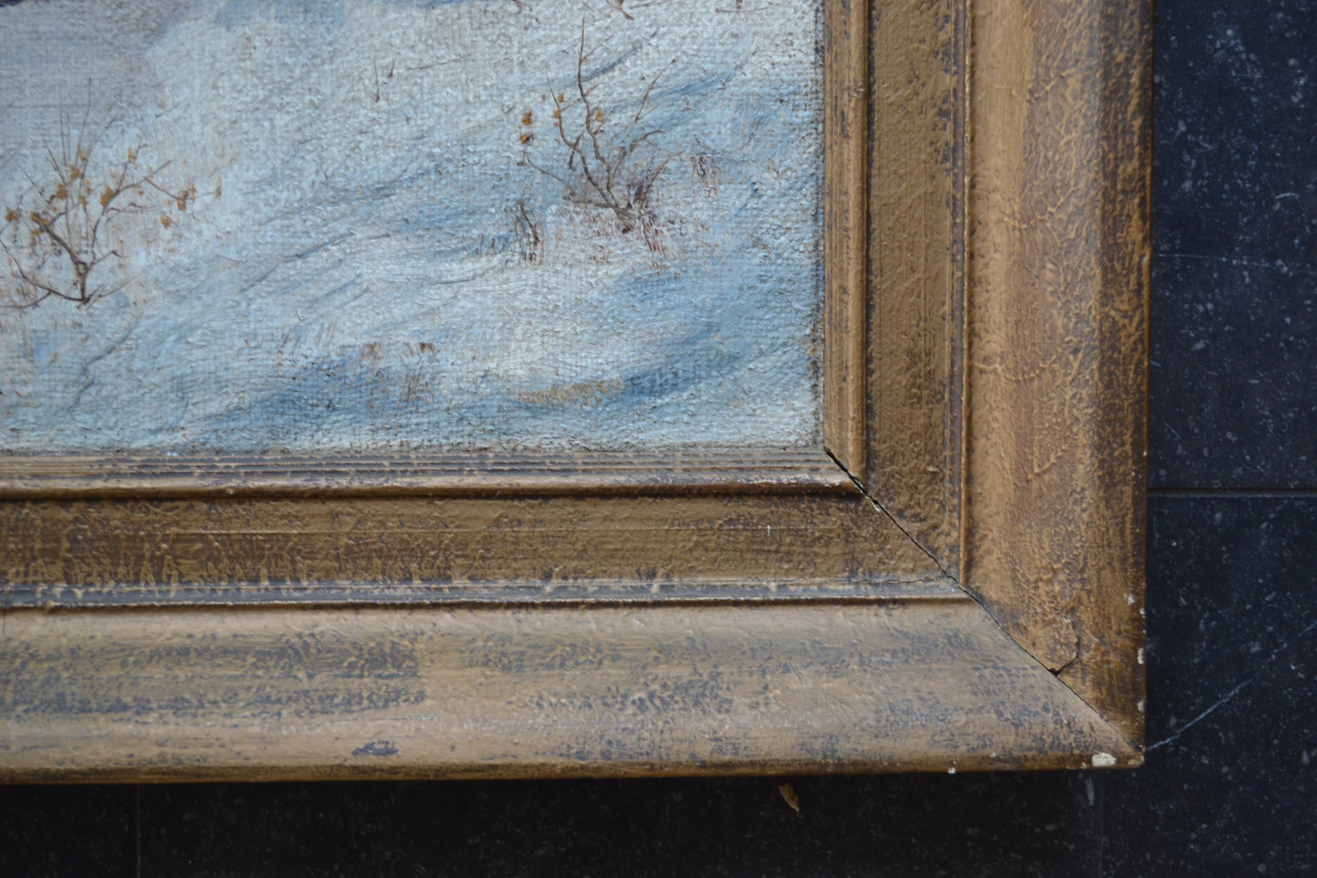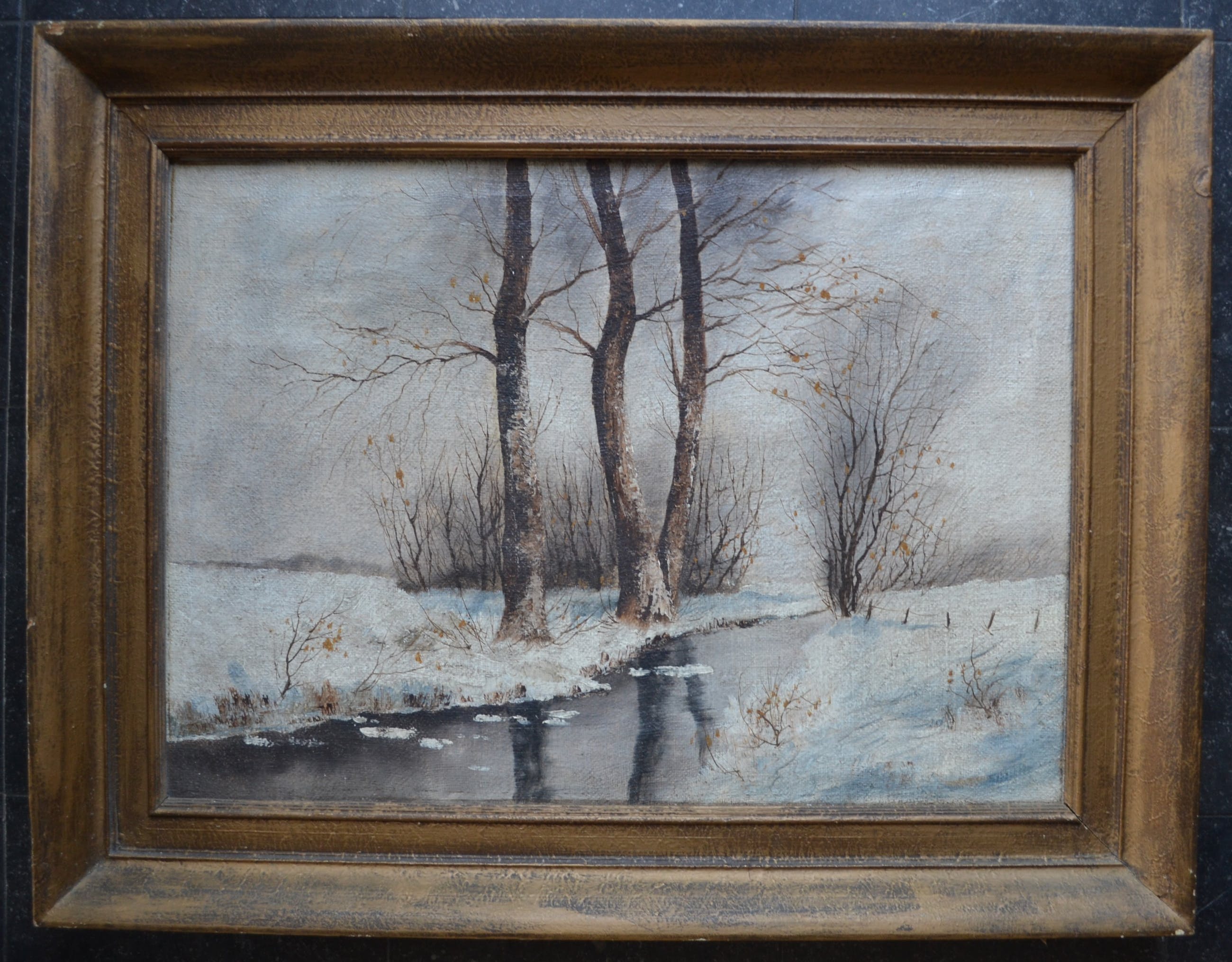 Sfeervol winters landschap. Lijst heeft wat gebruikssporen. Helaas ongesigneerd.