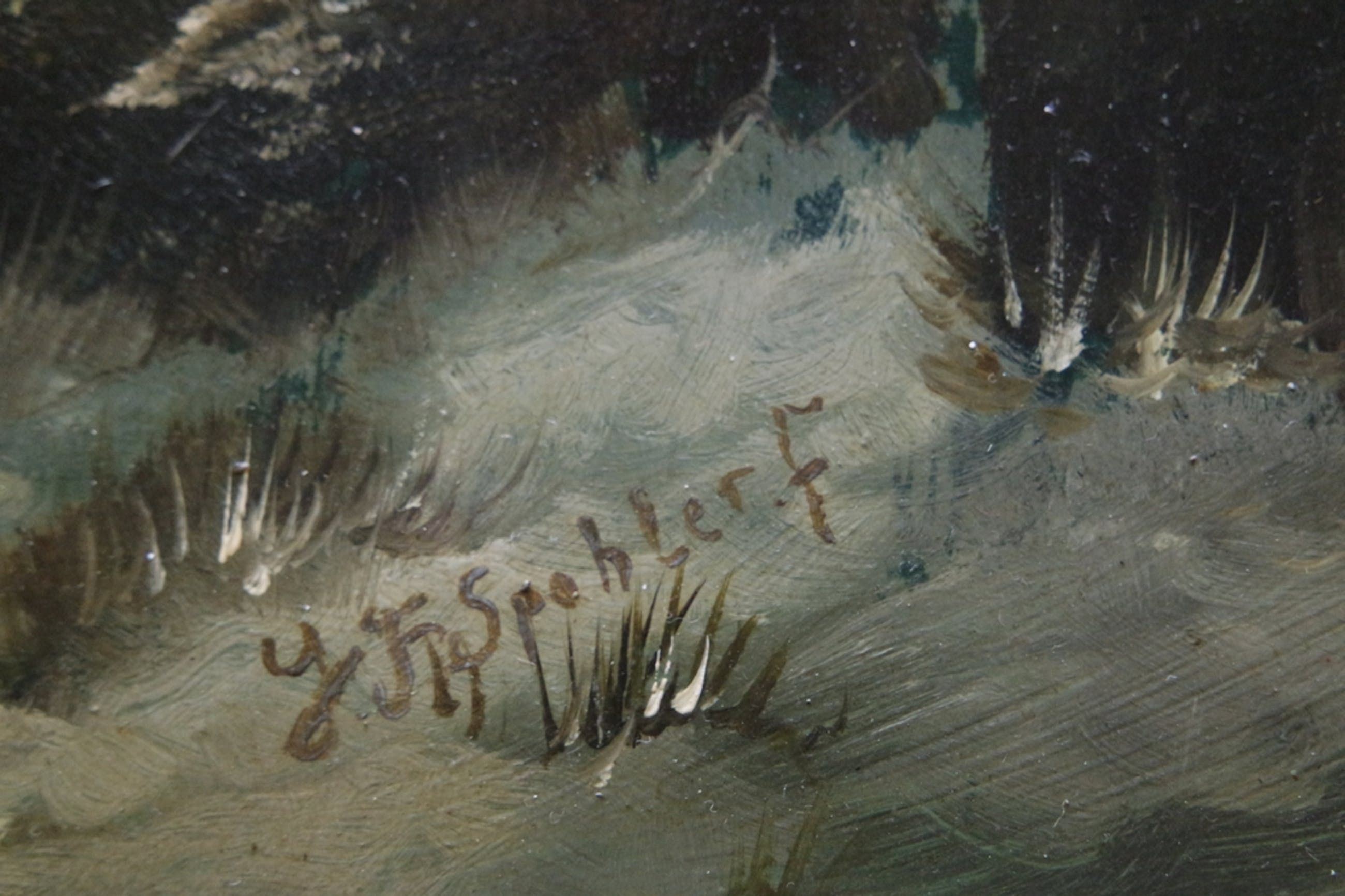 Een prachtig winterlandschap in een authentieke lijst. Olieverf op paneel. Gesigneerd met Spohler.