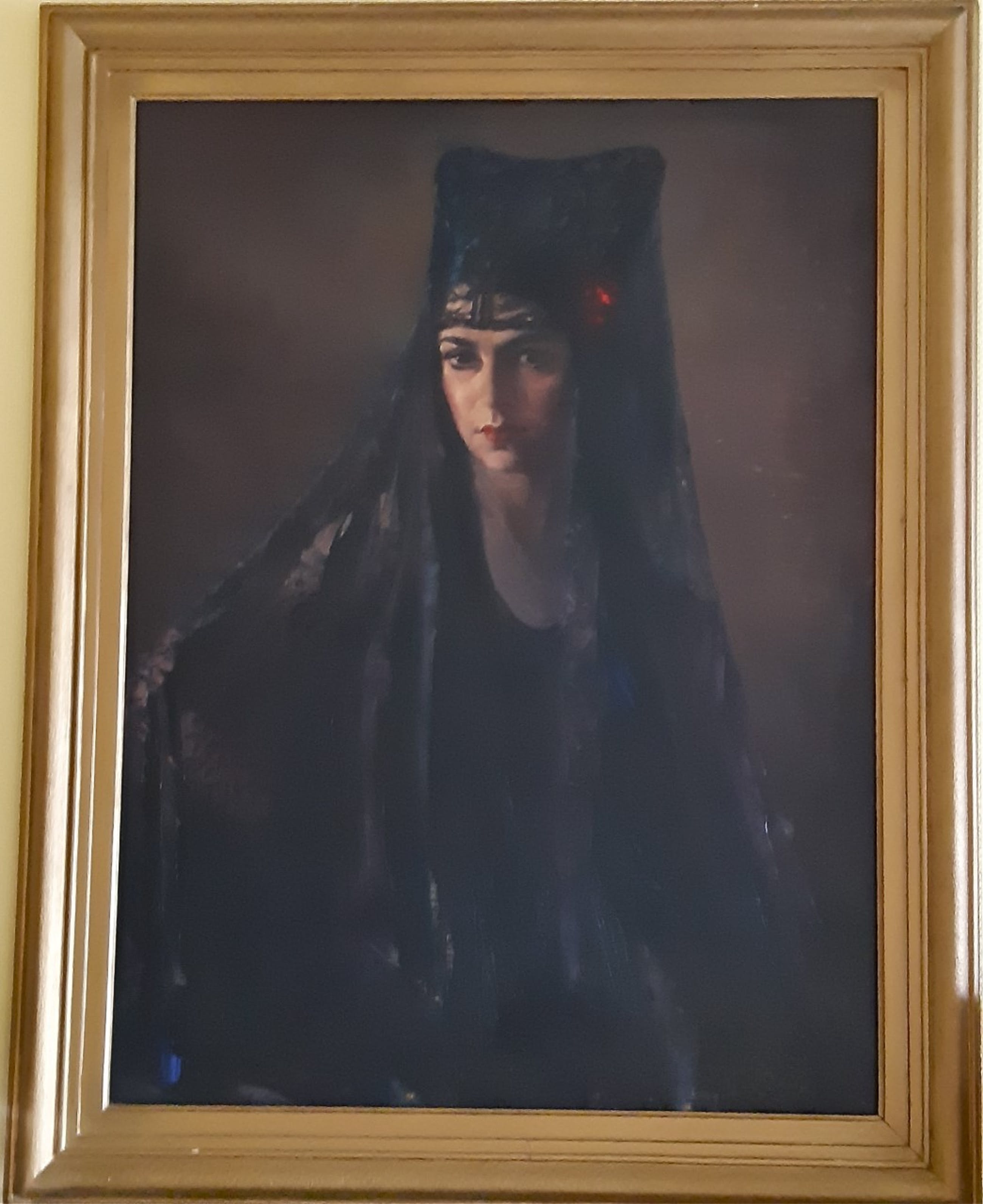 Prachtig portret van een mysterieus, gesluierde dame. Zeer goede staat ! Perfekt schilderij om op te hangen in een traphal of plaats met veel ruimte !