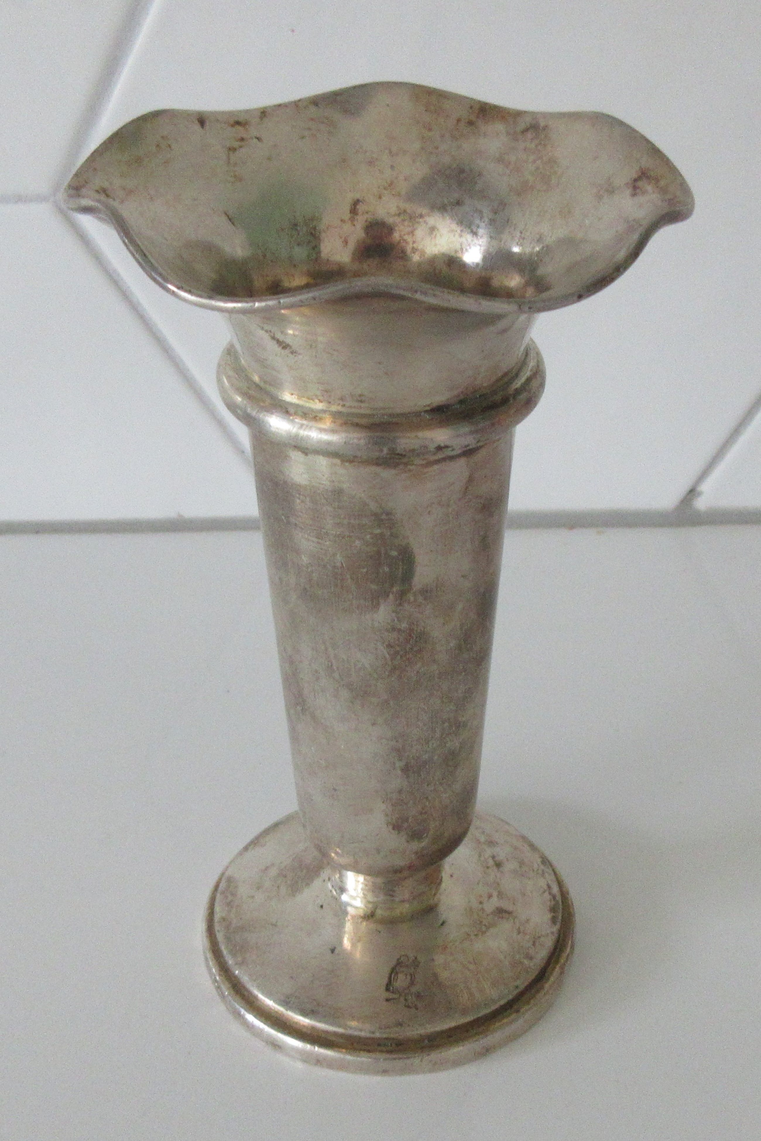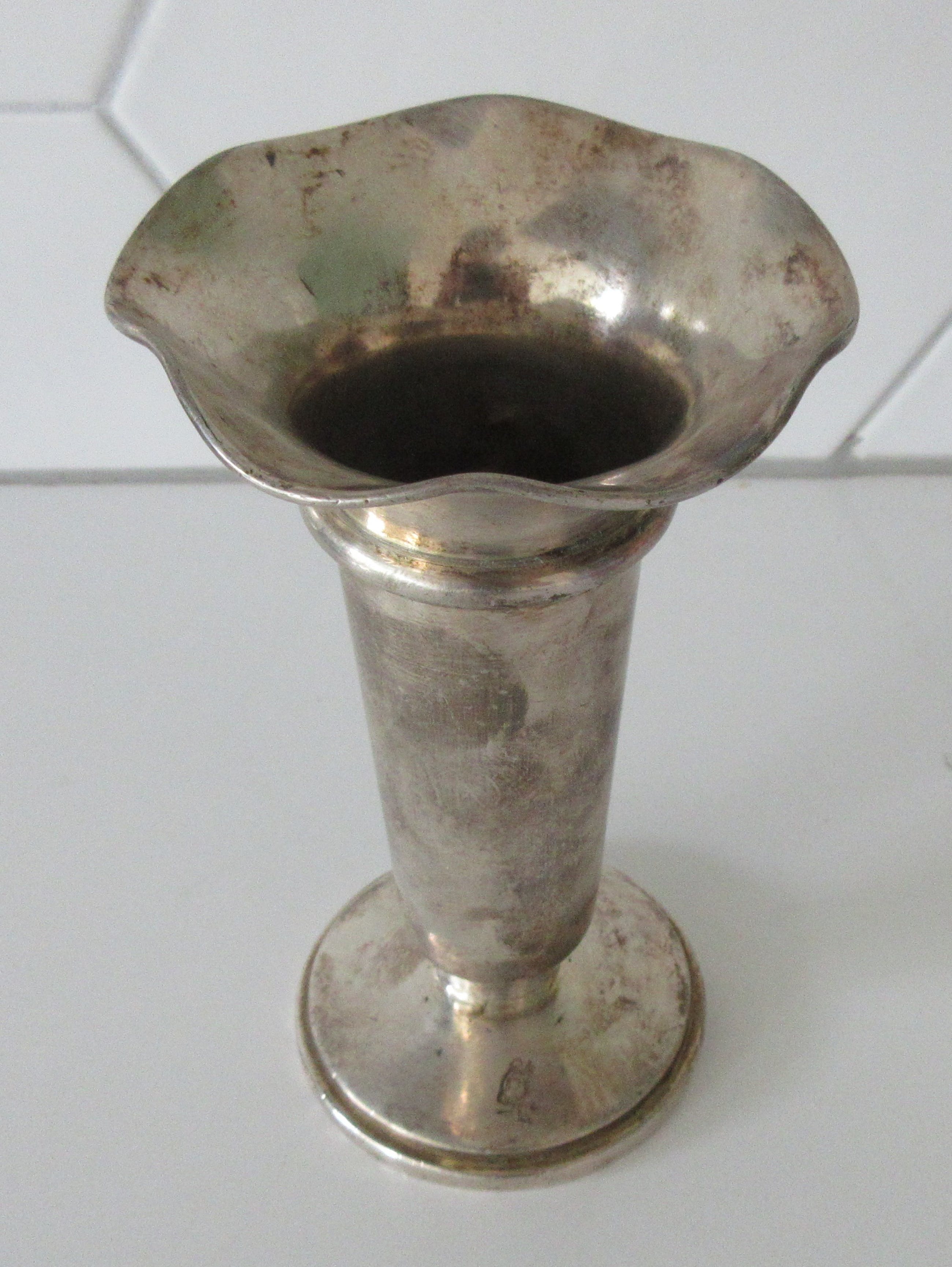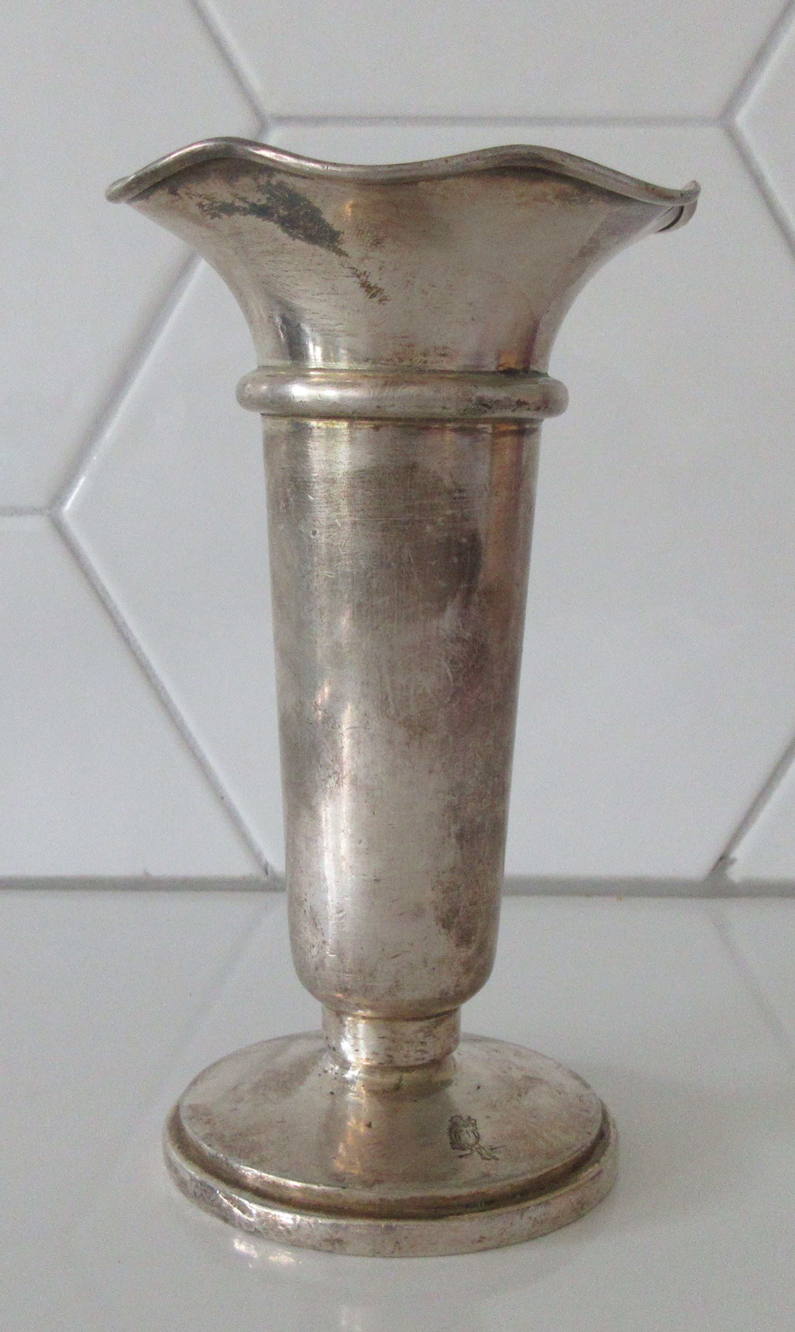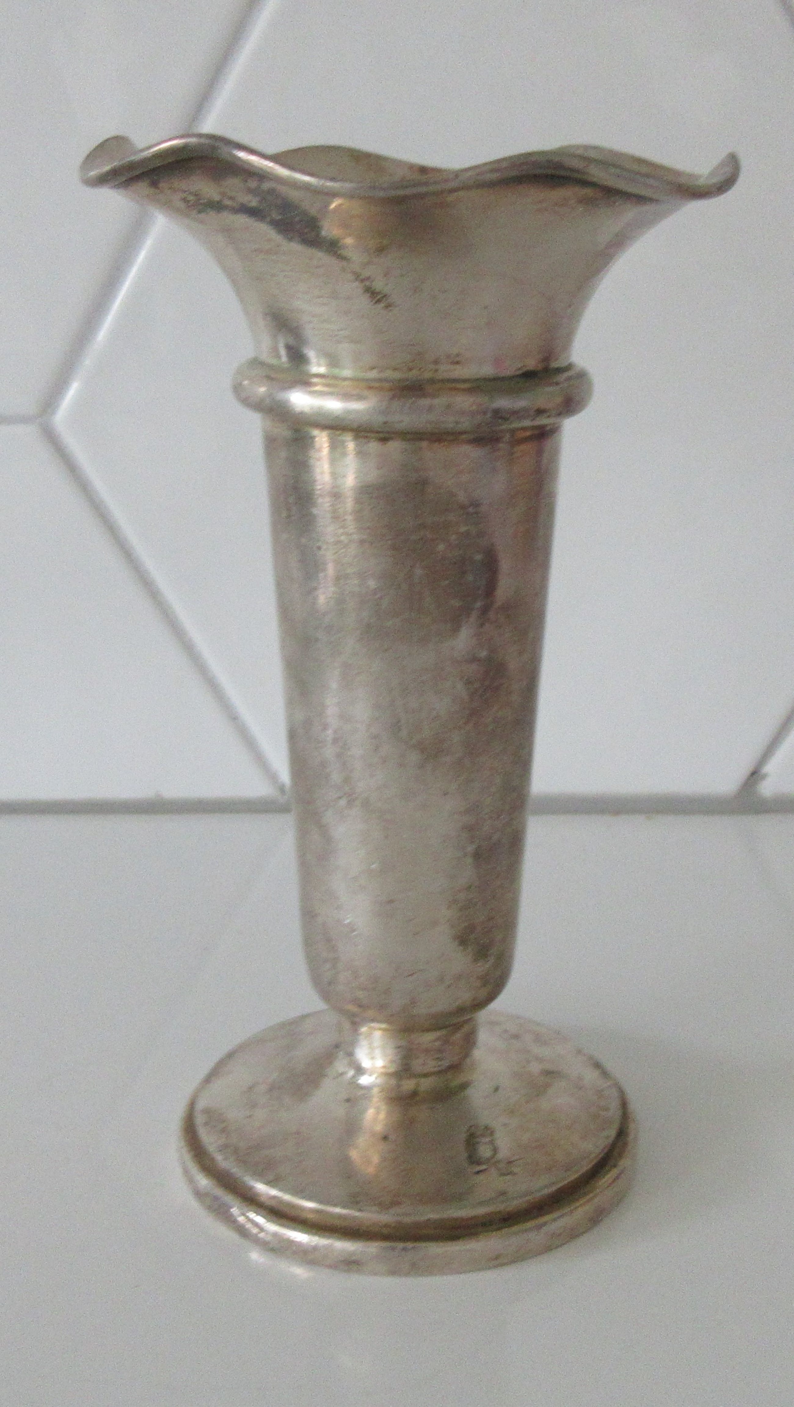 Hotel zilveren Anemonen vaasje van Hollandia Plate uit Hilversum. In goede grbruikte conditie en gemerkt op de onderzijde.