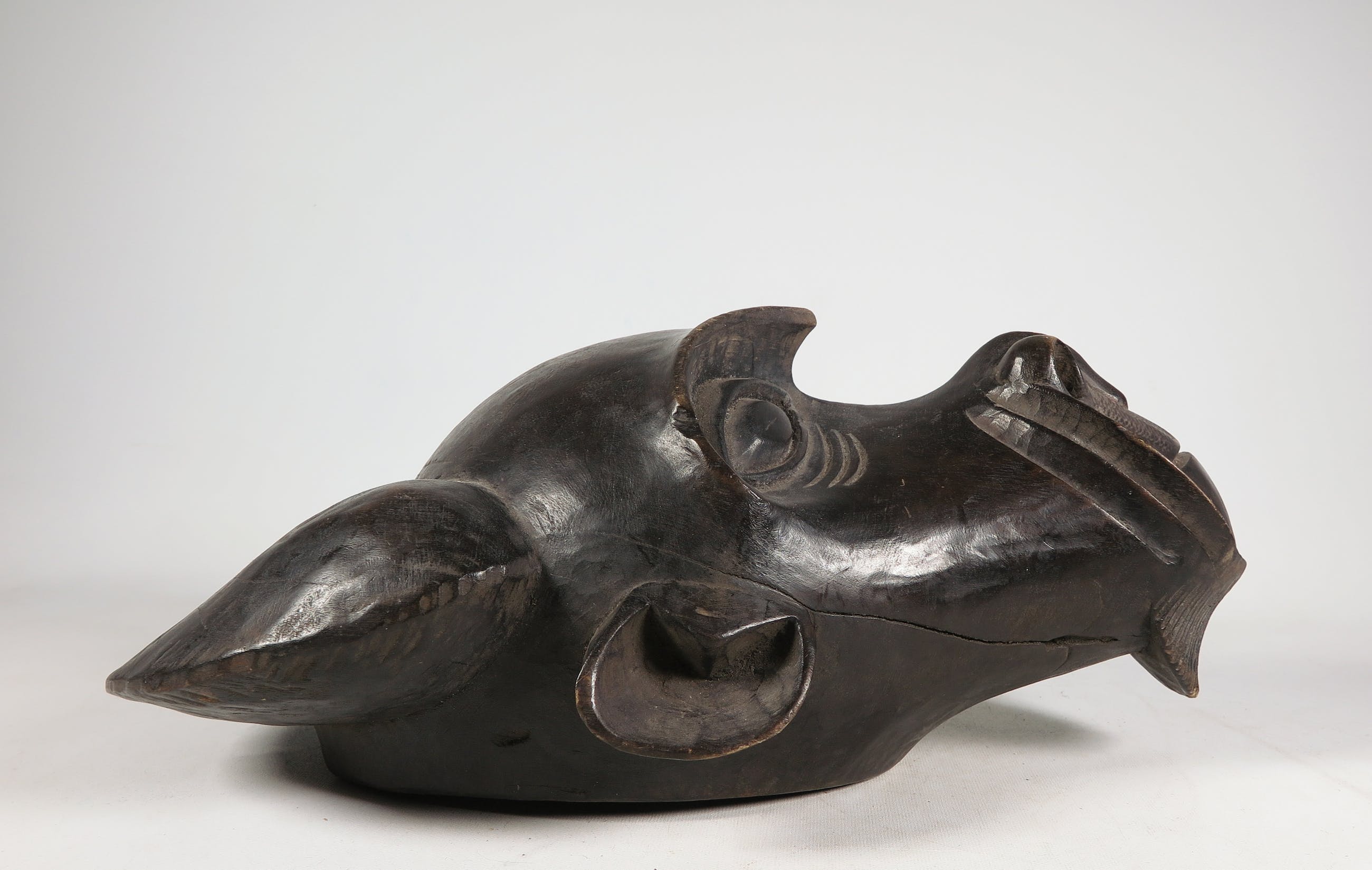 Zeer goede staat, met wat oppervlakkige krasjes/slijtage. Aan de achterzijde is te zien dat er lichte beschadigingen zijn aan de kin en dat er een barst loopt door het bovenste deel. | |||