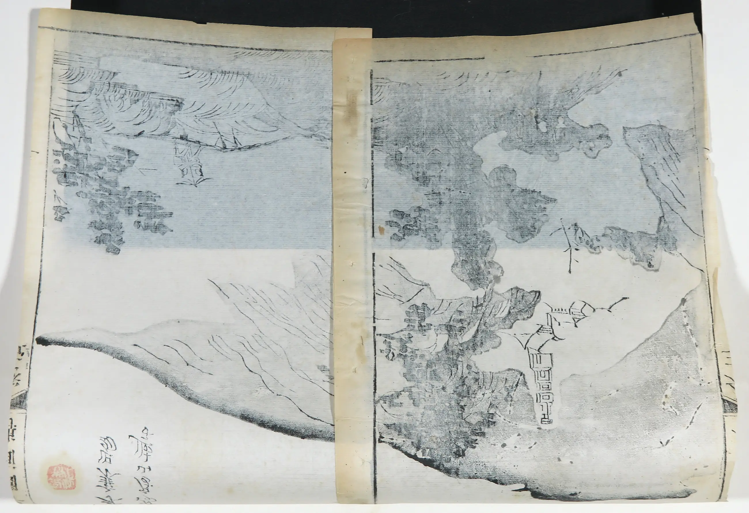 Goede staat gezien leeftijd, wel wat vlekkerig/foxing. Duidelijke vergeling langs de randen (onder het passe-partout. | |||