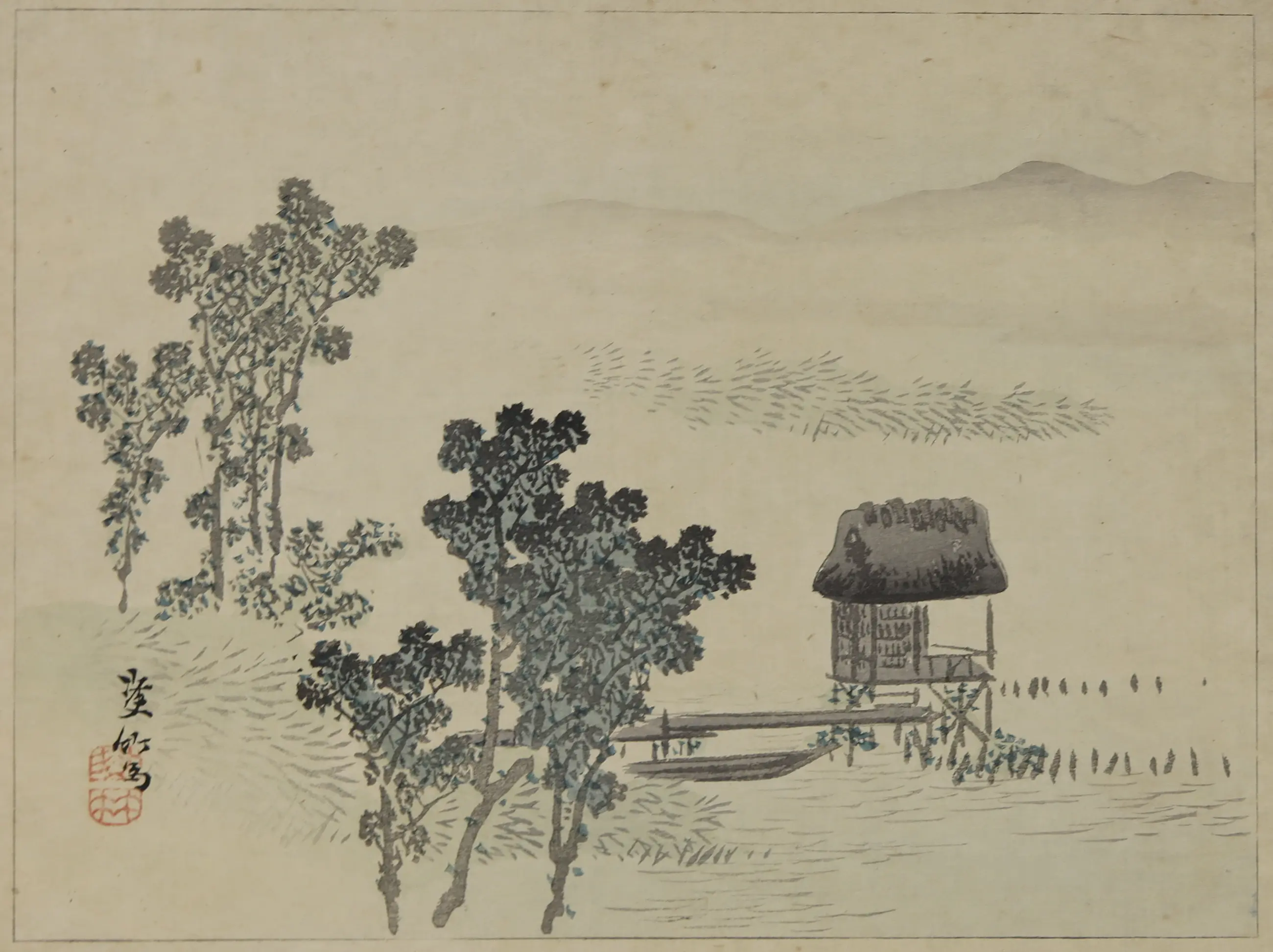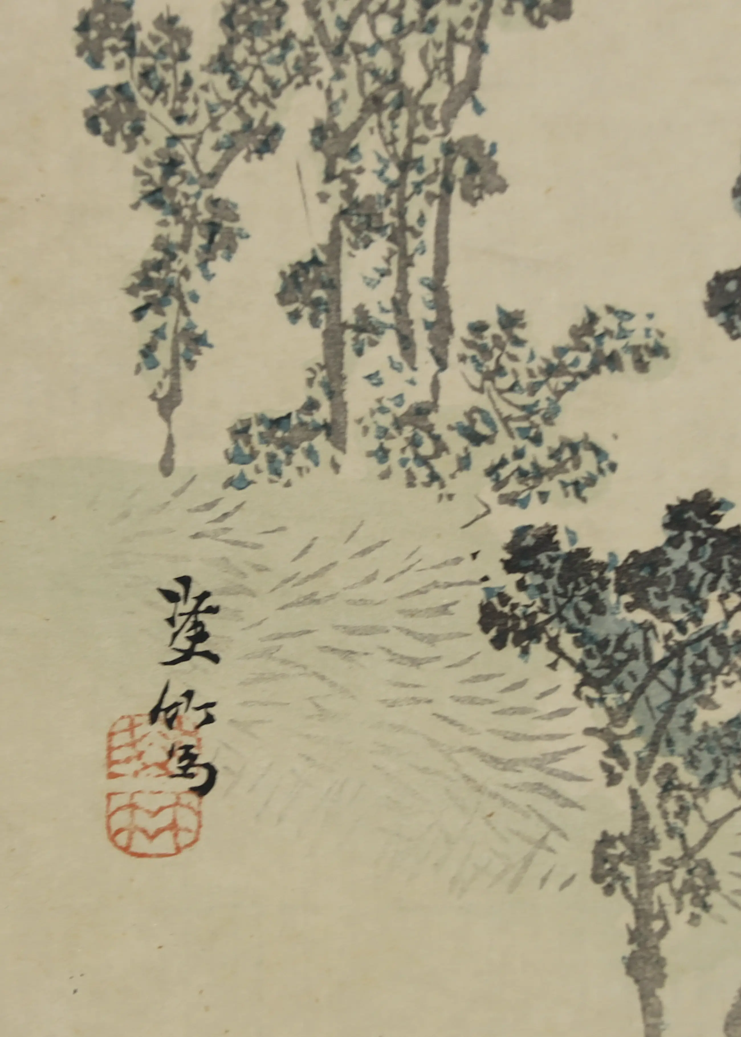 Fraaie Japanse houtdruk door een voor ons onbekende prentkunstenaar.