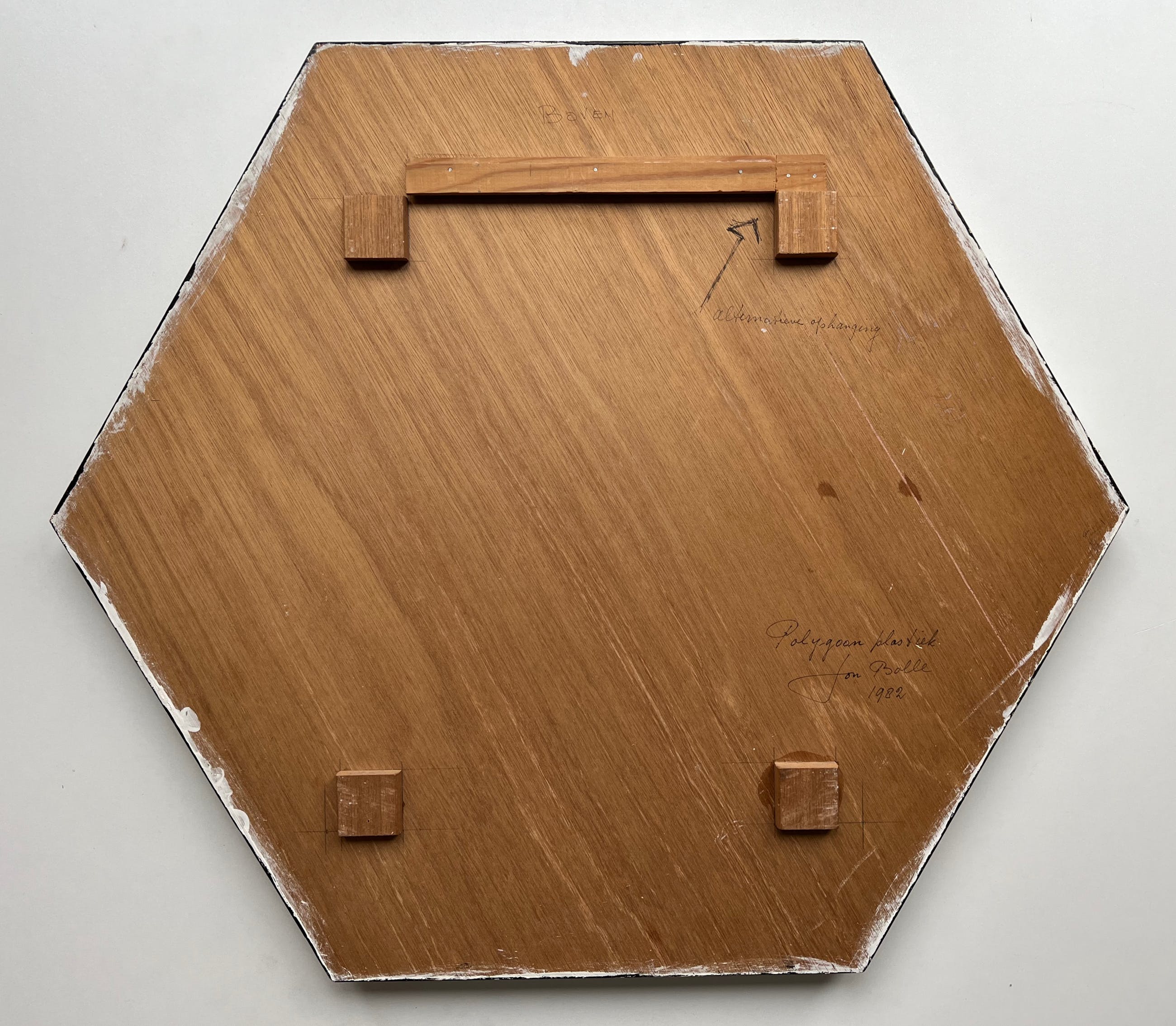 Fraai en interessant werk uit 1982. Volledig van houten panelen vervaardigd. Diepte van het werk is vier centimeter.