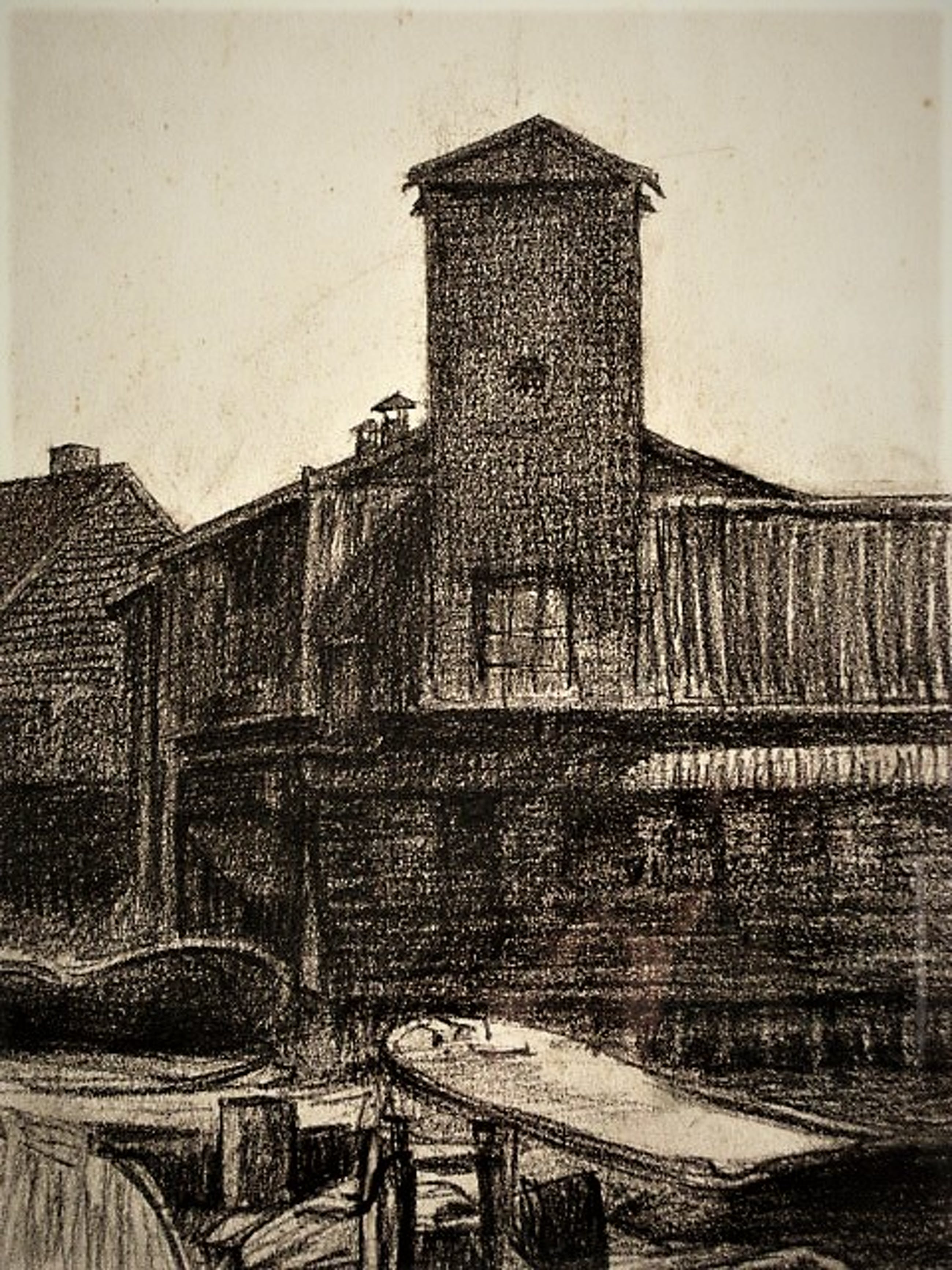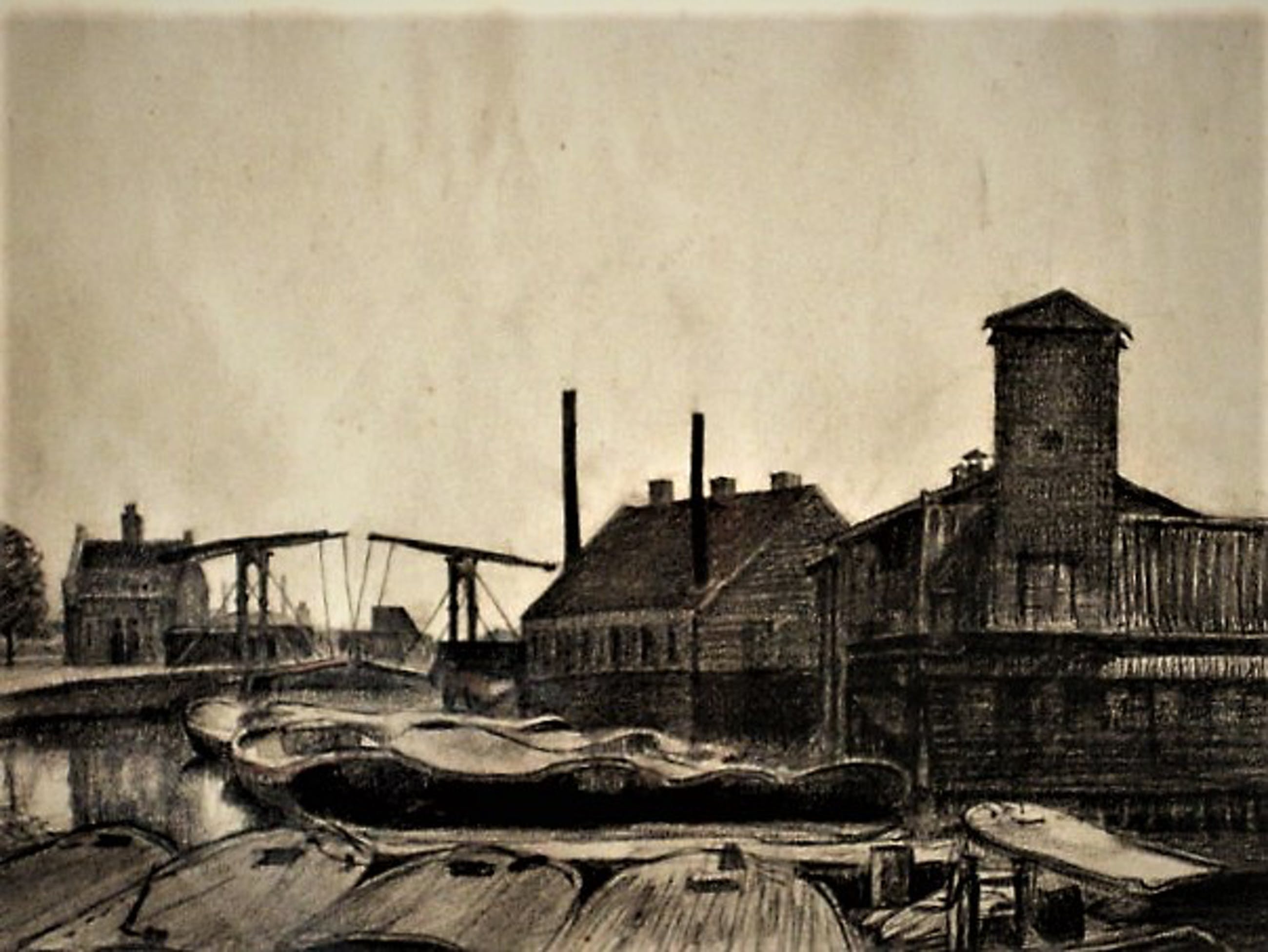 Mooie, omstreeks 1920/1930 te dateren Houtskool op papier tekening met voorstelling van een Amsterdams stadsgezicht "het Realeneiland met de Drieharingenbrug". Deze grote Houtskool op papier tekening verkeert in goede staat, afgezien van wat "houtskool-vegen" in de luchtpartij . Afmetingen van het papier zijn ca. 30x40cm (HxB). Inclusief passe partout zijn de maten 50x60cm. Herkomst : kunsthandel Ariens Kappers / nwe Spiegelstraat Amsterdam.