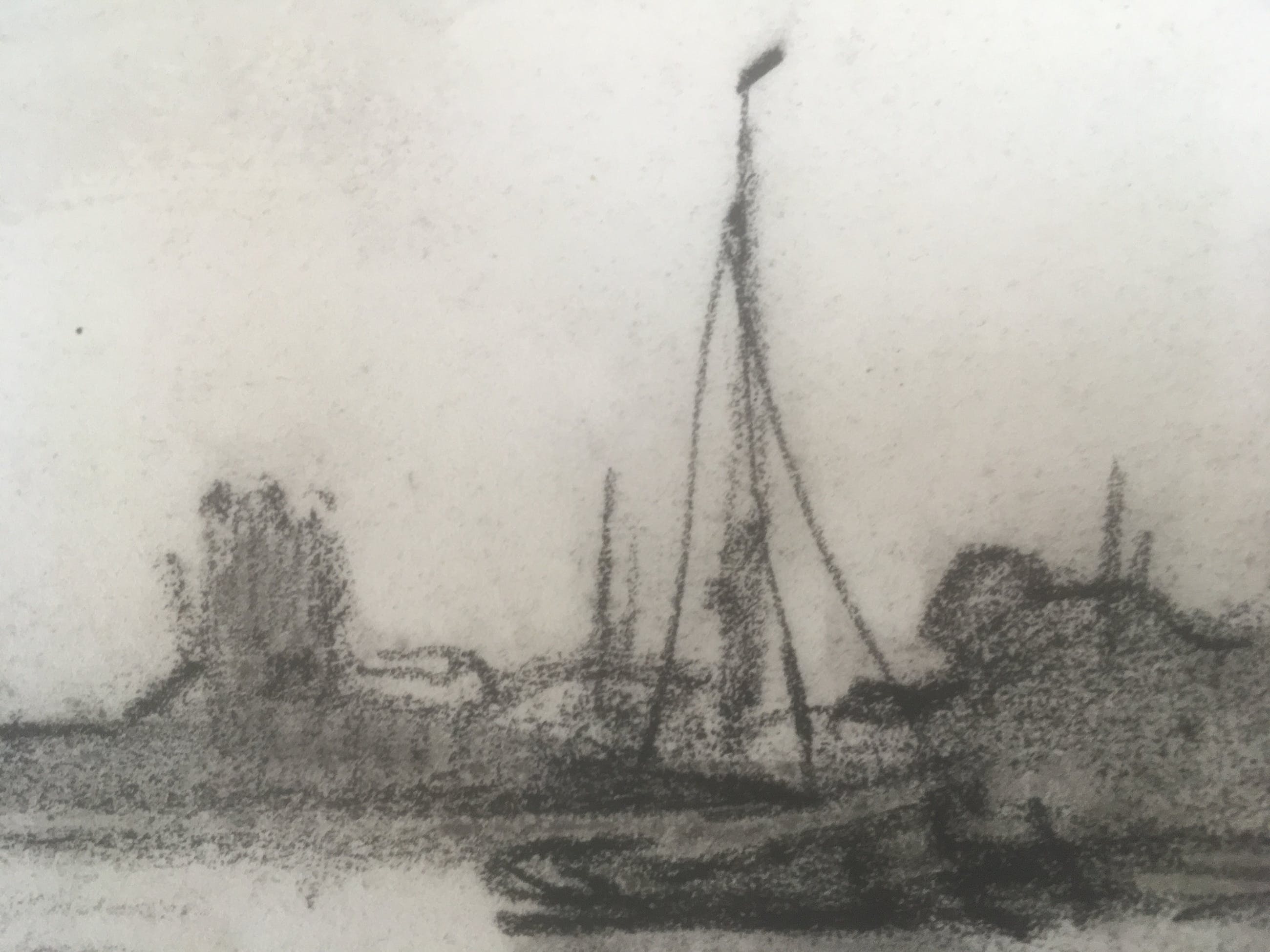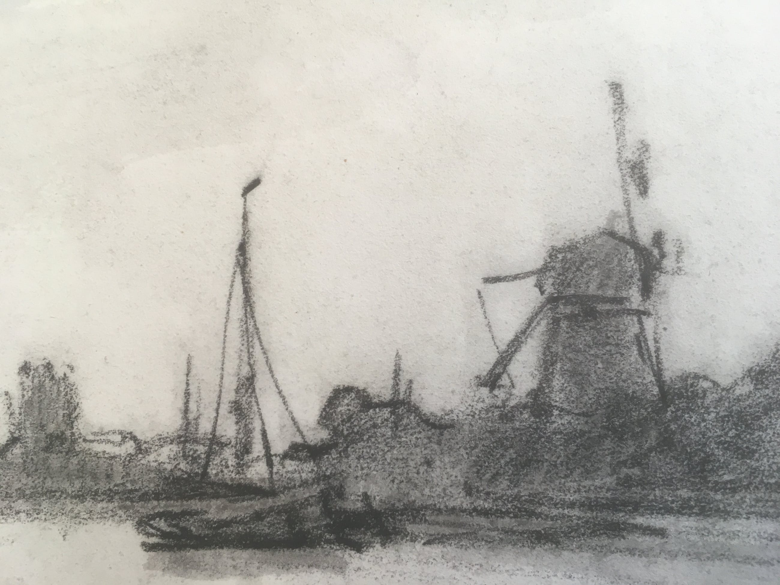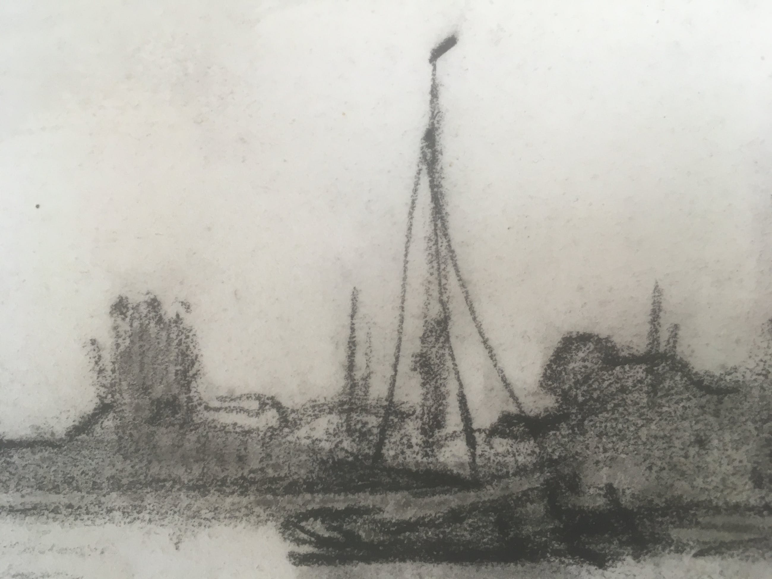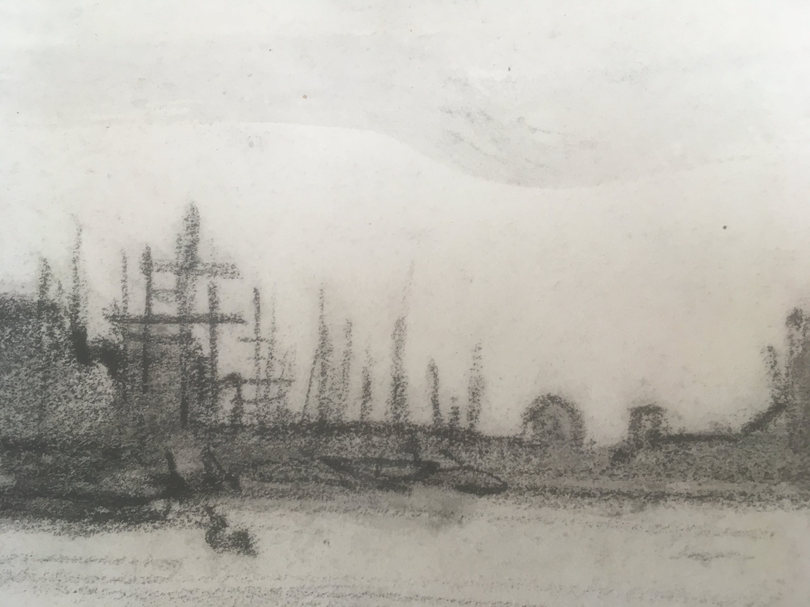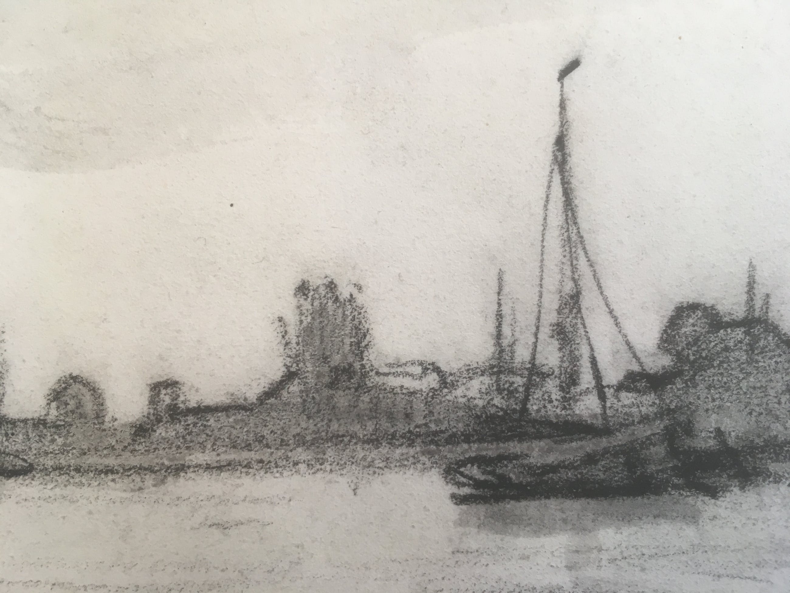 Onbekend - Houtskool op papier - Gezicht op Dordrecht. - Verkocht