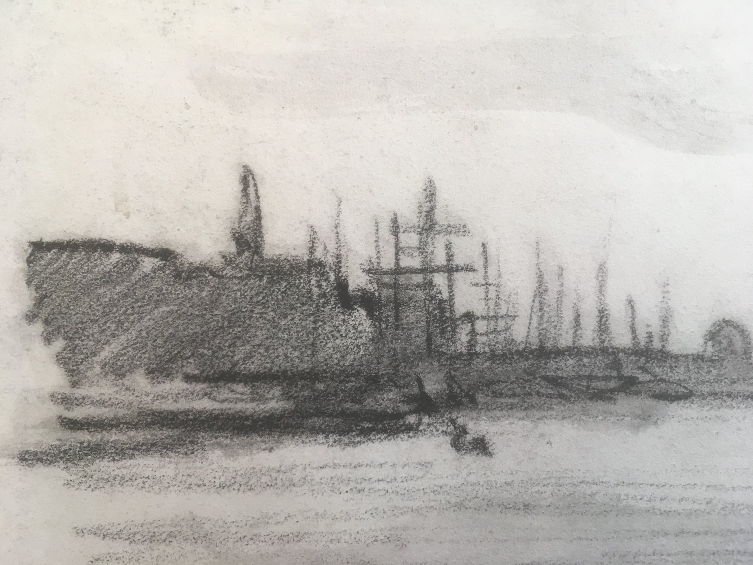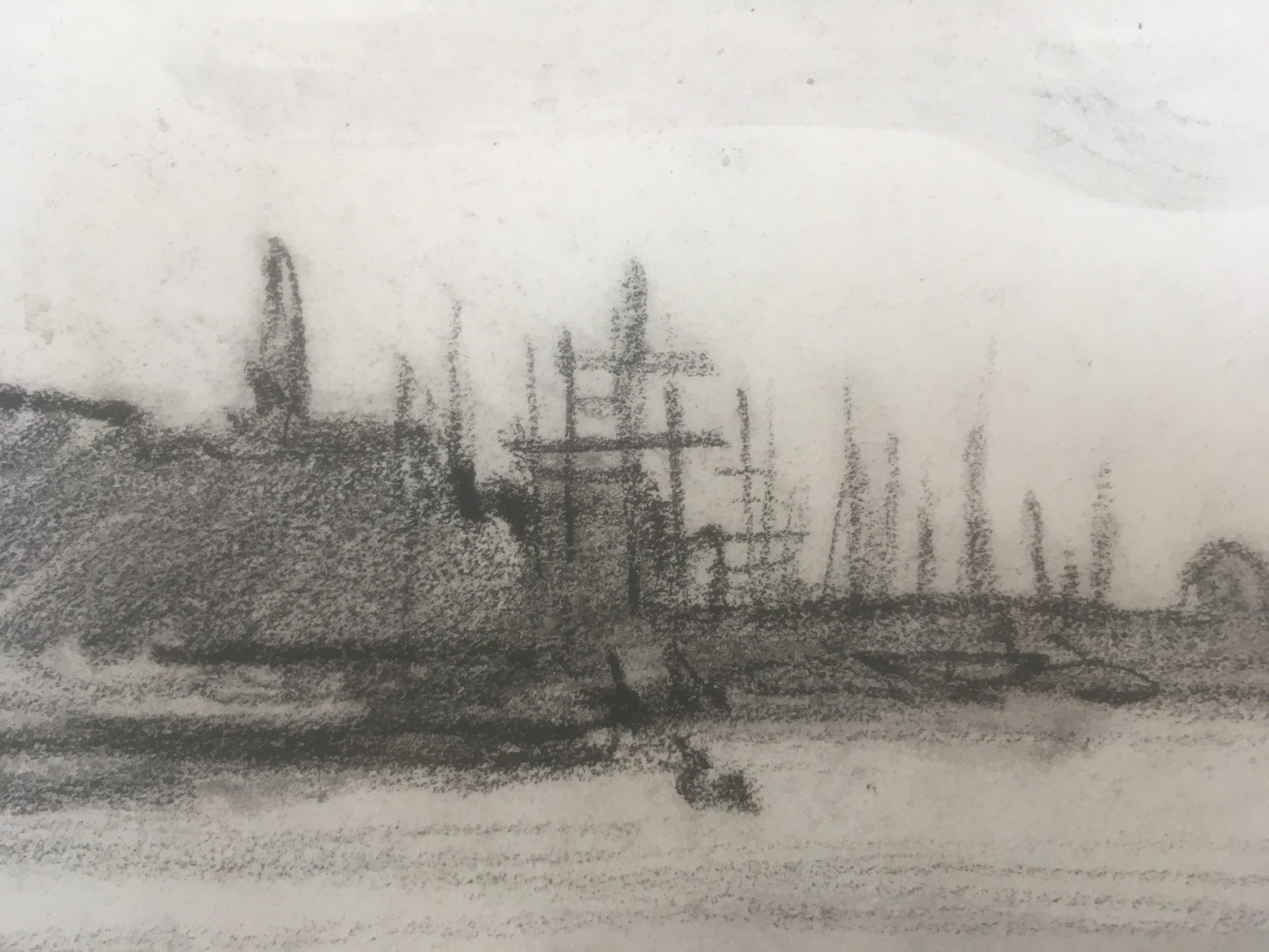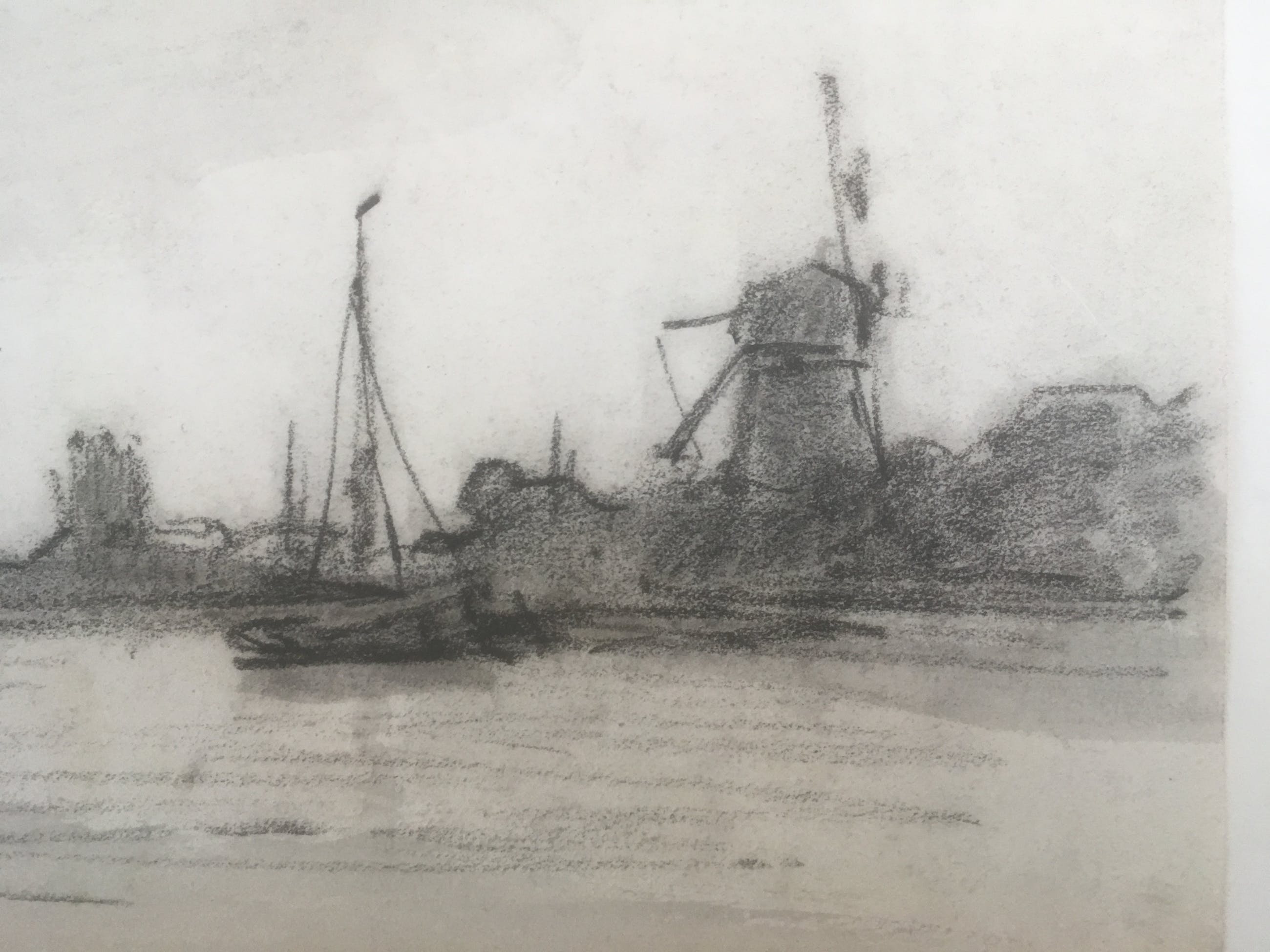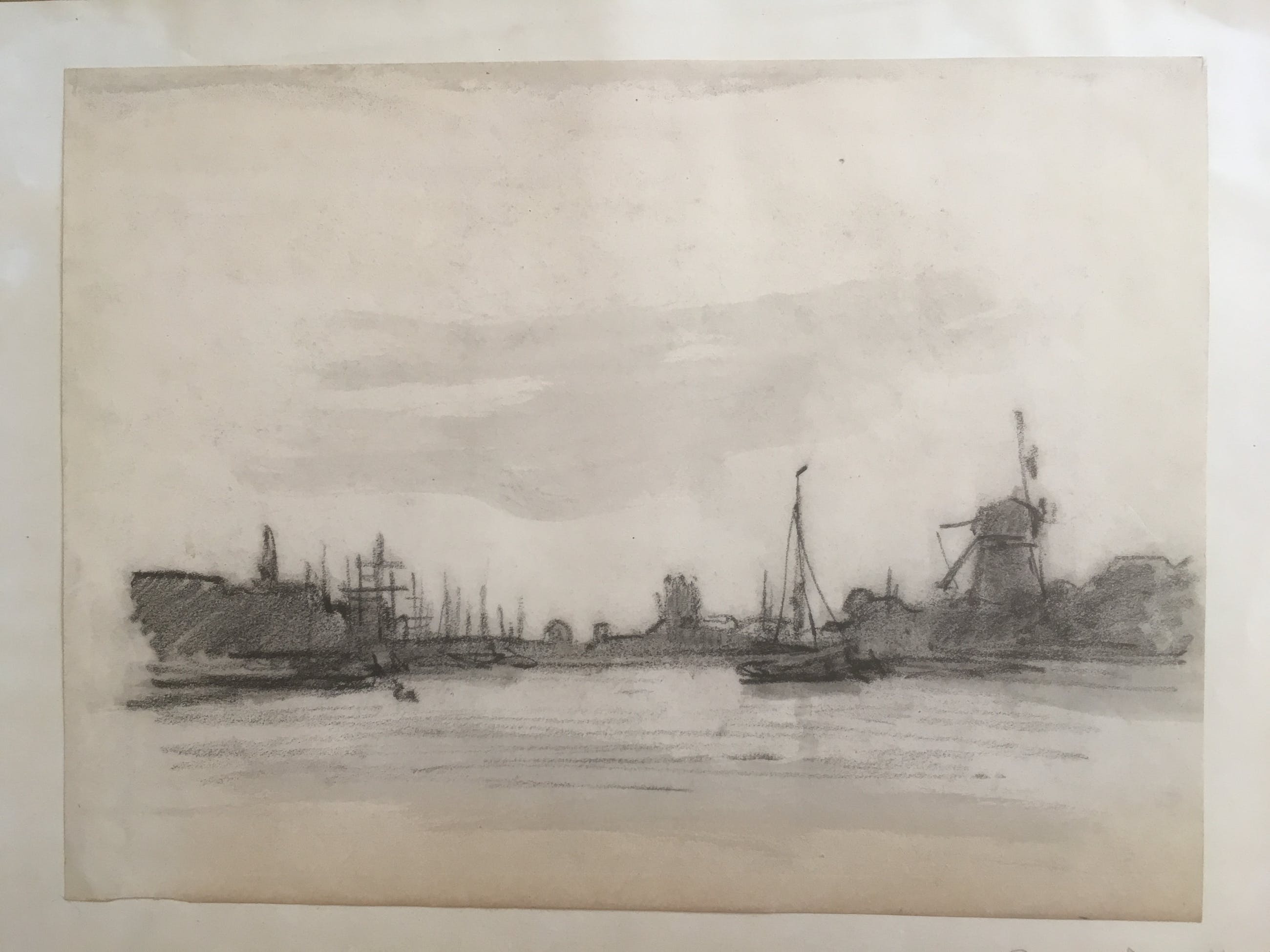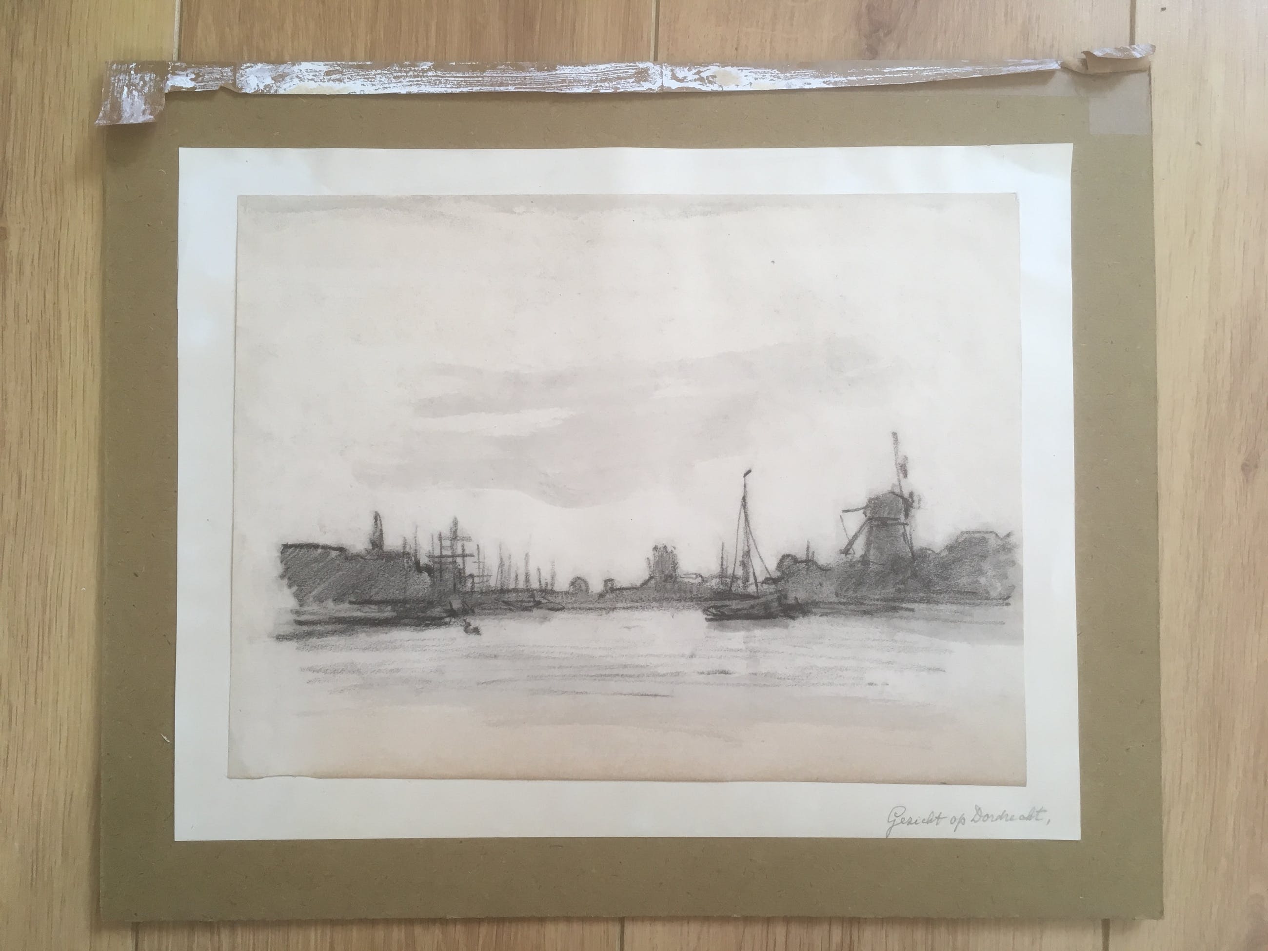 Niet of onleesbaar gesigneerd - Houtskool op papier - Gezicht op Dordrecht. kopen? Bied vanaf 1!