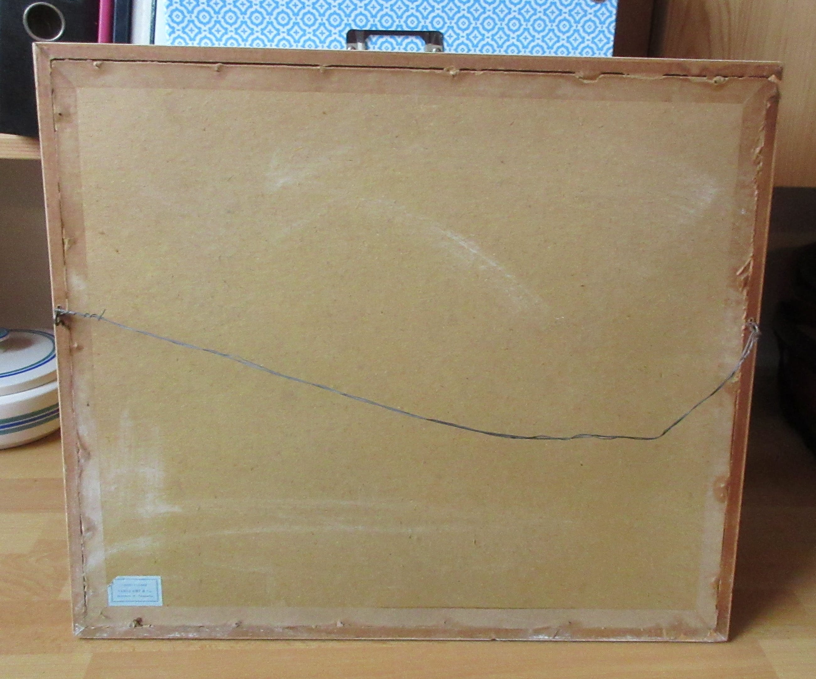 De tekening is in prima conditie. De passe partour heeft een aantal vocht vlekjes. De lijst is ook in goede conditie.
