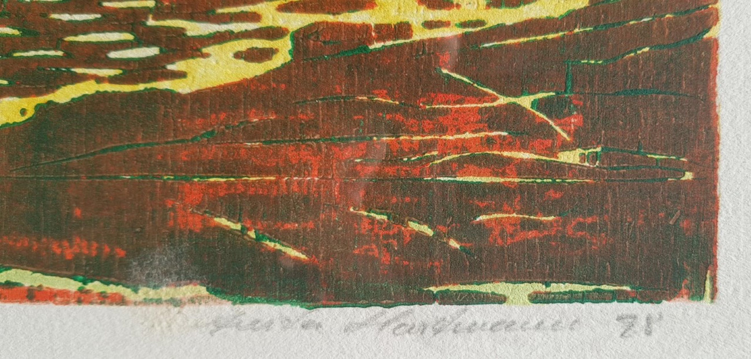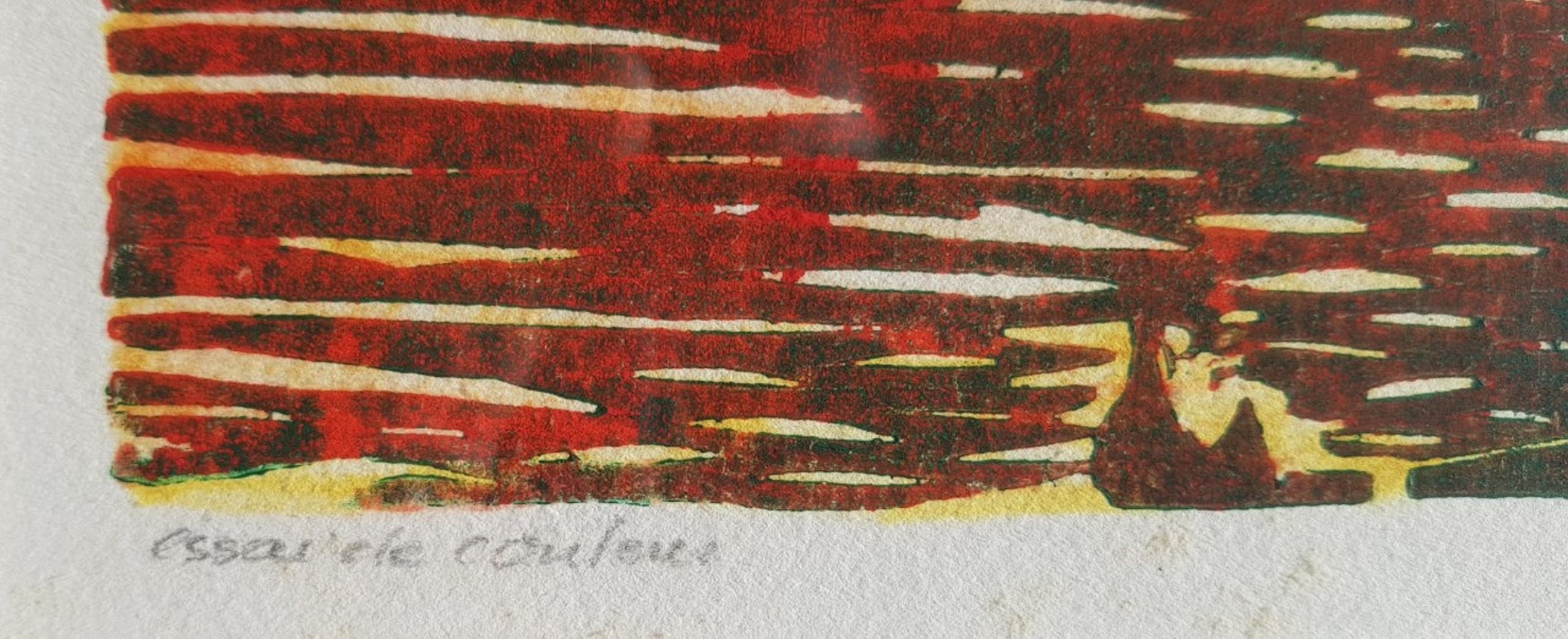 Anita Hartmann (Marburg 1956)Houtsnede1998Titel: Essai de couleurOplage onbekendBeeldmaat: 24 x 30 cmLijstmaat: 46 x 50,50 cm