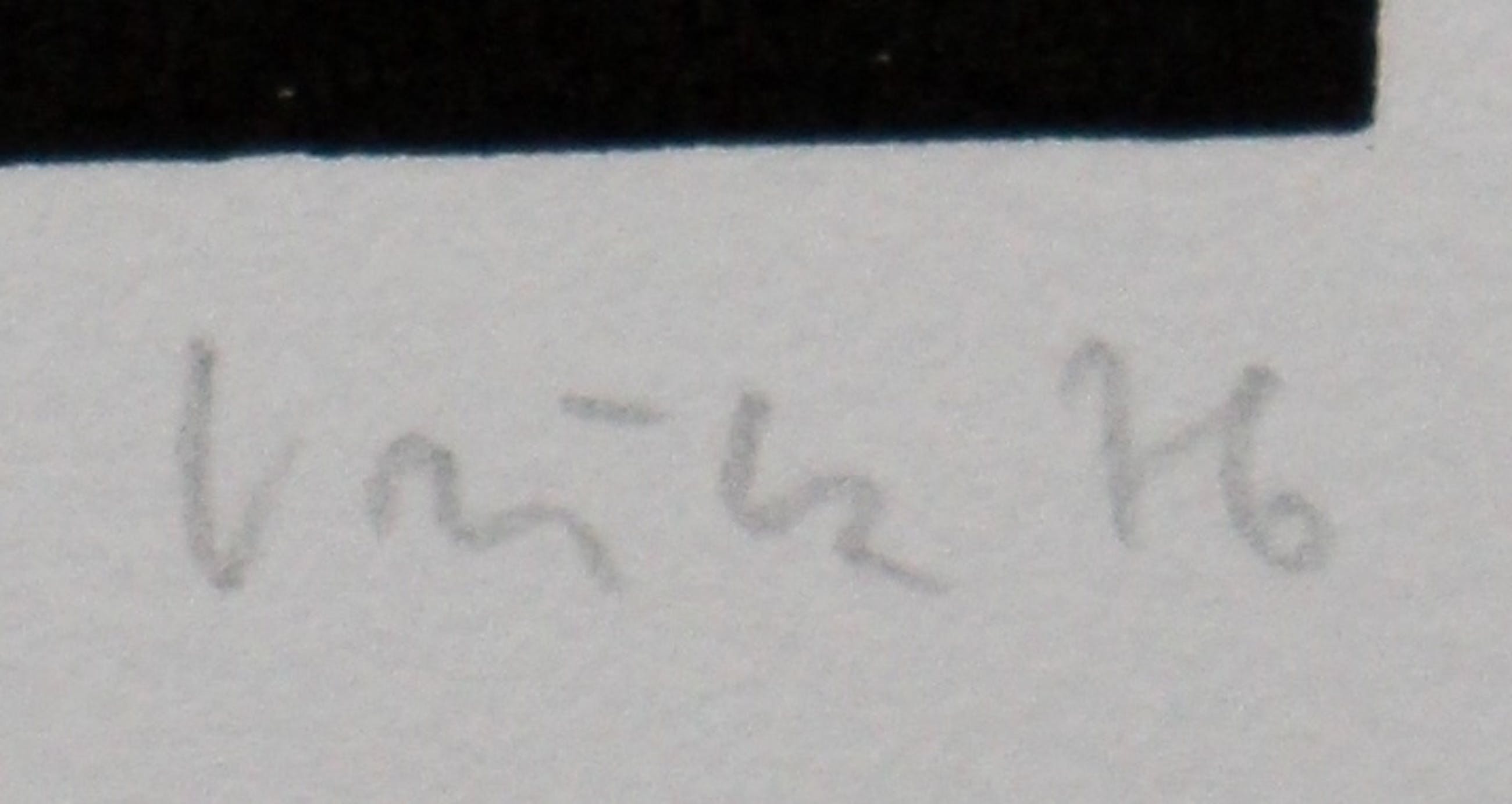 Houtsnede van een voor mij onbekende kunstenaar.  Nummer: 1/25. Afmetingen blad: H36 x b33cm. Afmetingen voorstelling: H15 x b15cm. Het werk is rechts onderaan, met potlood, gesigneerd door de kunstenaar.