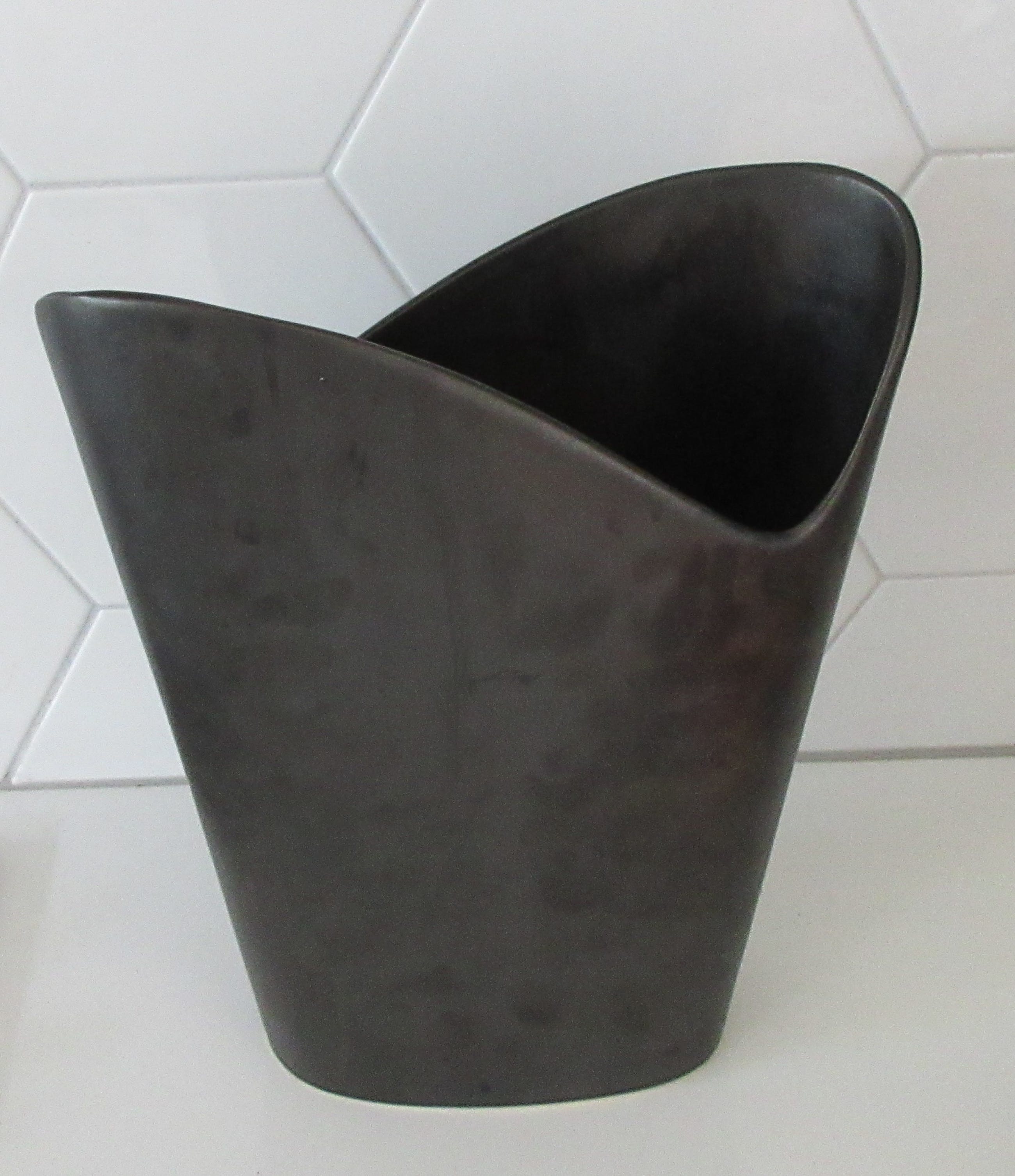 Hydromiek Losser grote keramische antraciete design vaas. In prima onbeschadigde conditie. Aan de onderzijde gemerkt.
