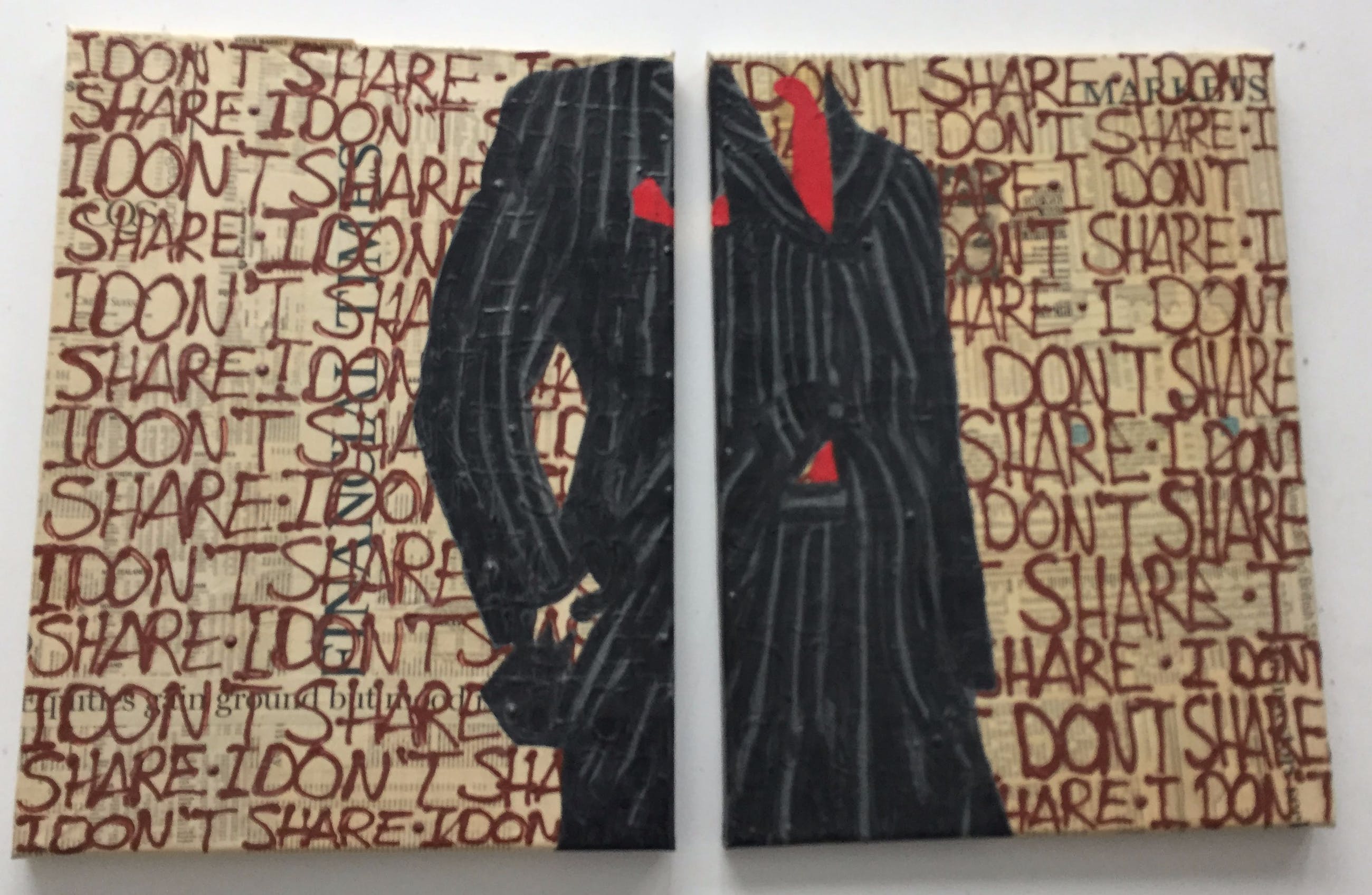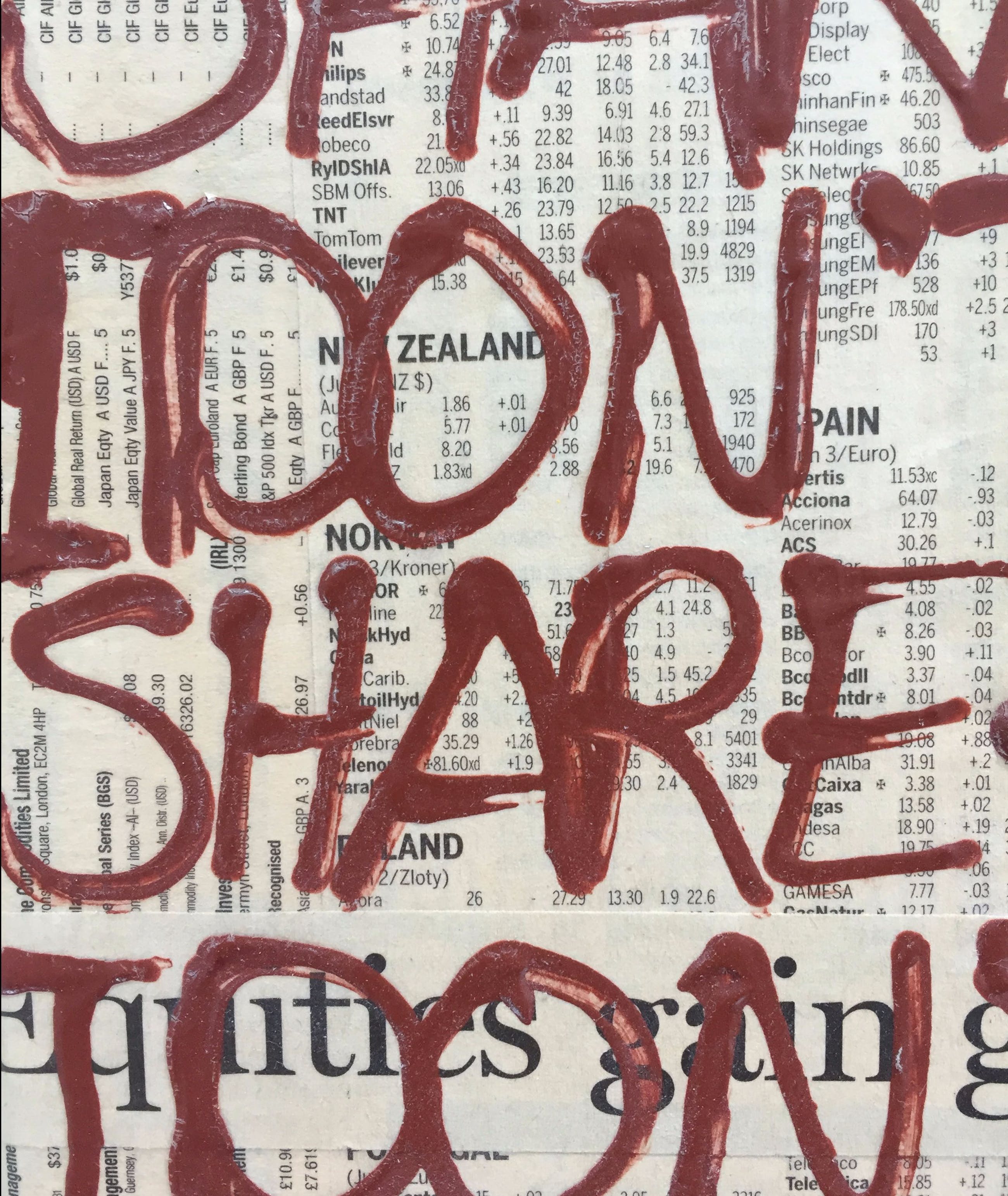 Acrylverf op doek | mixed media, waaronder collage/kranten/financial pages