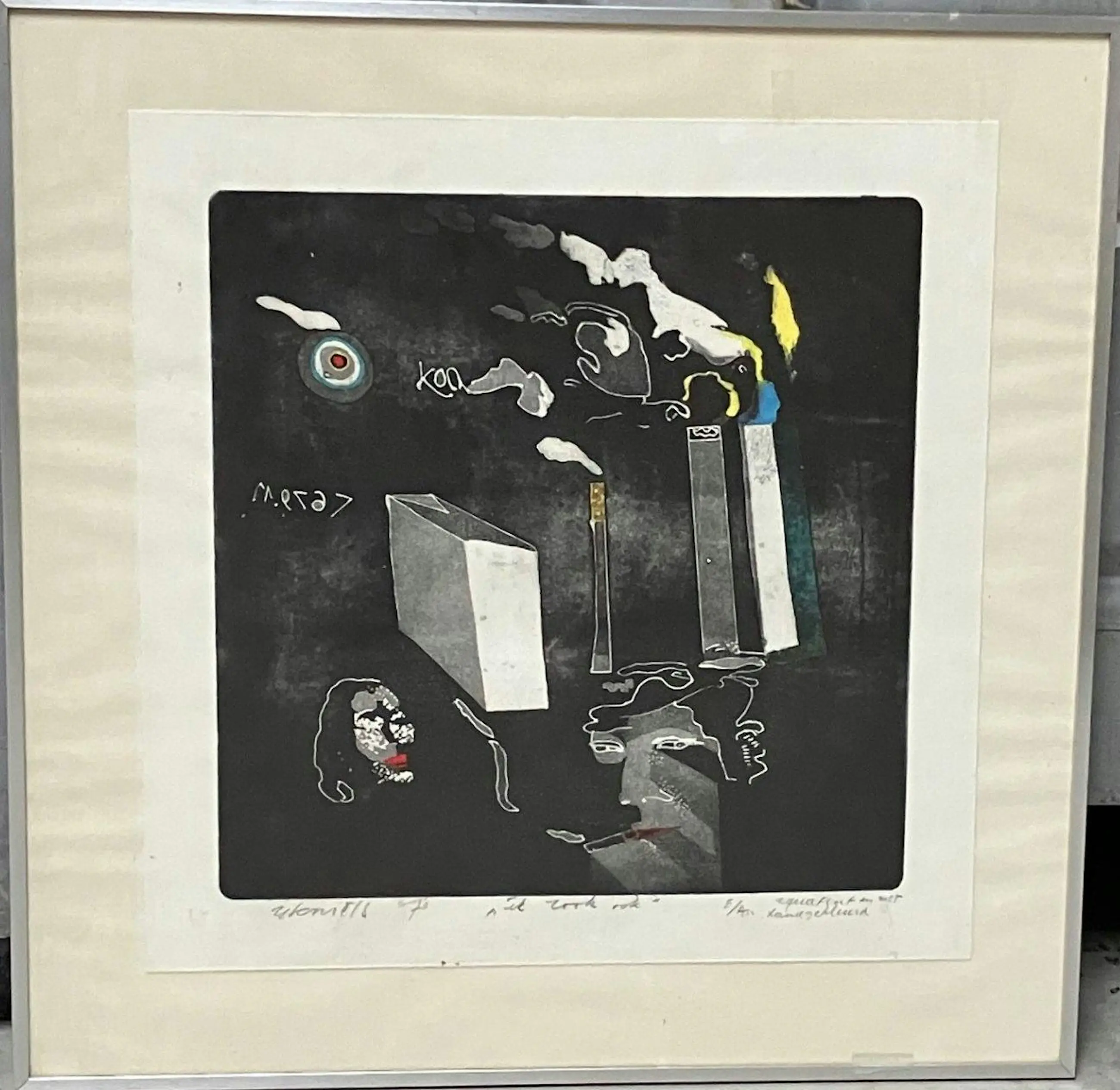 Ingekaderde grafiek - kunstenaarsnaam aanwezig linksonder - épreuve d'artiste aquatint en met hand gekleurd