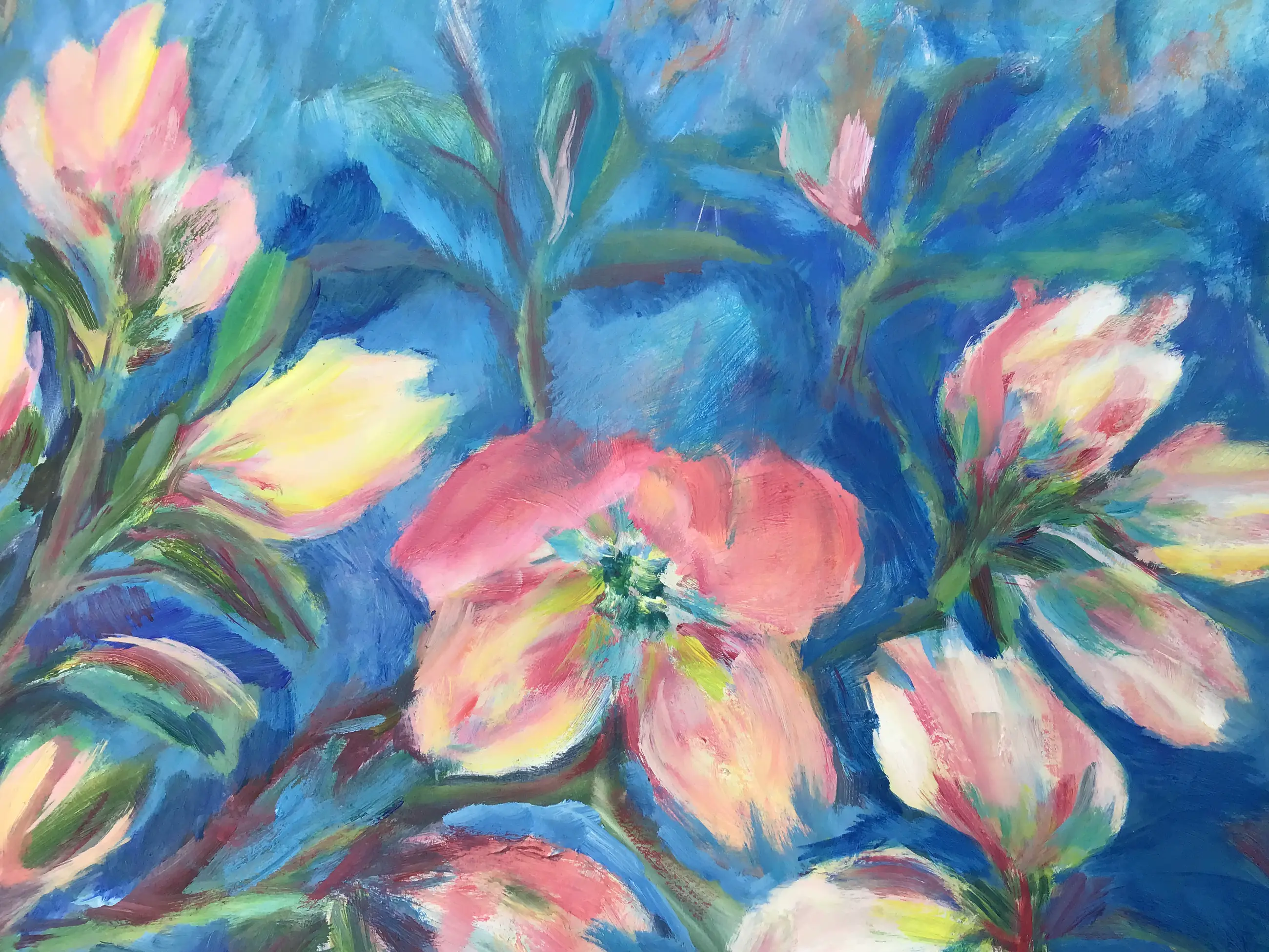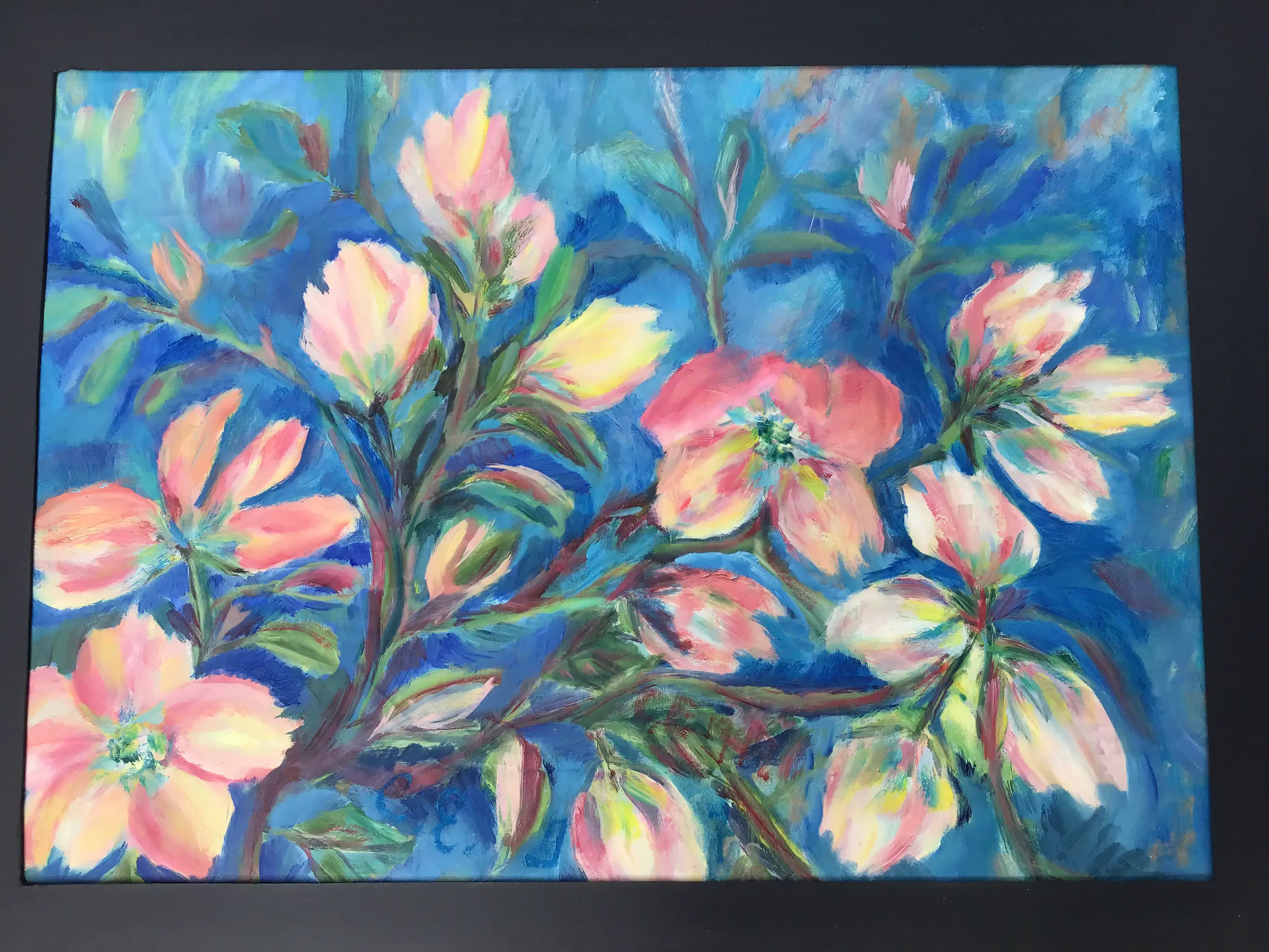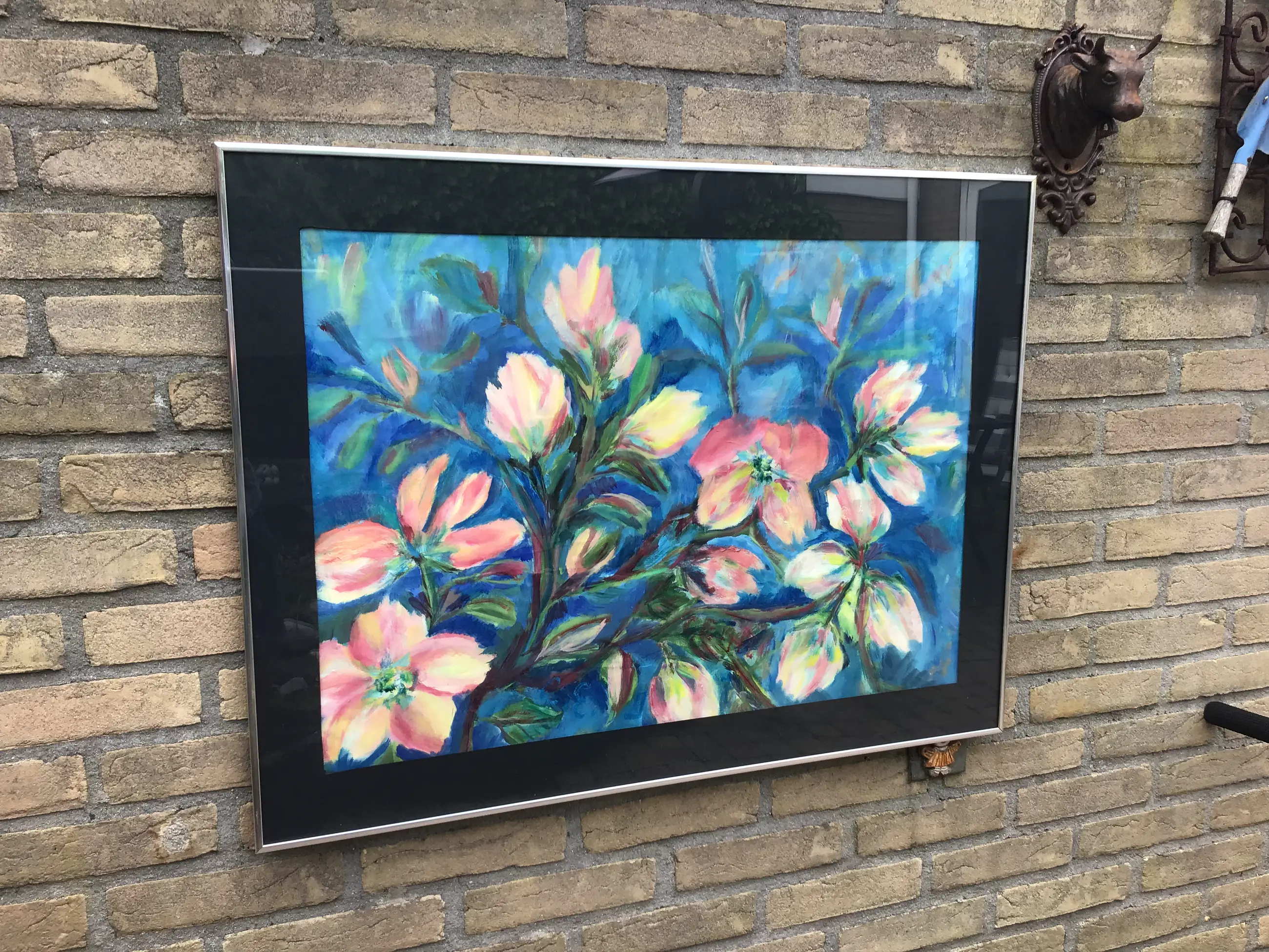 Expressief kleurrijke tak bloesem. Galerie wissellijst.