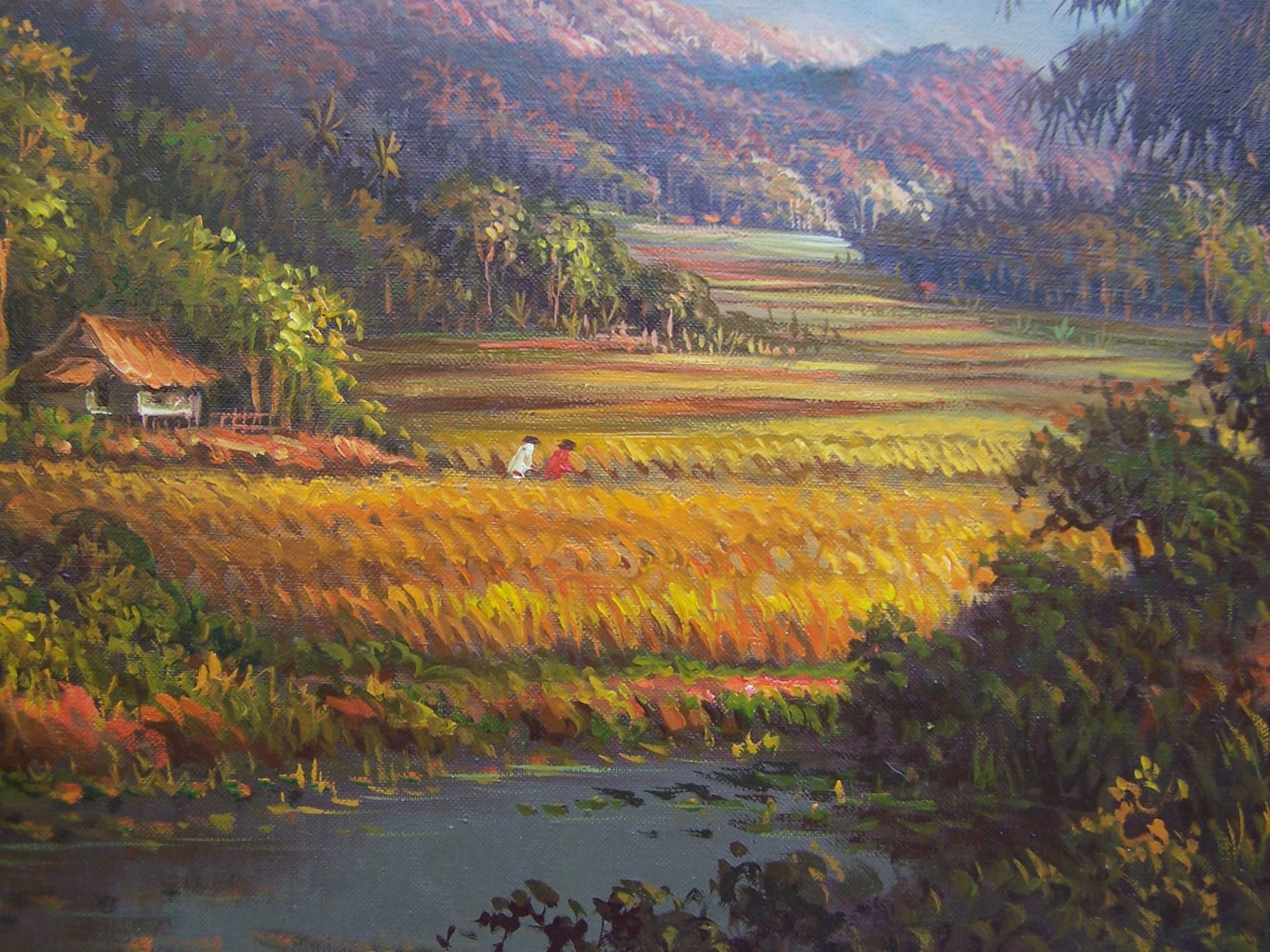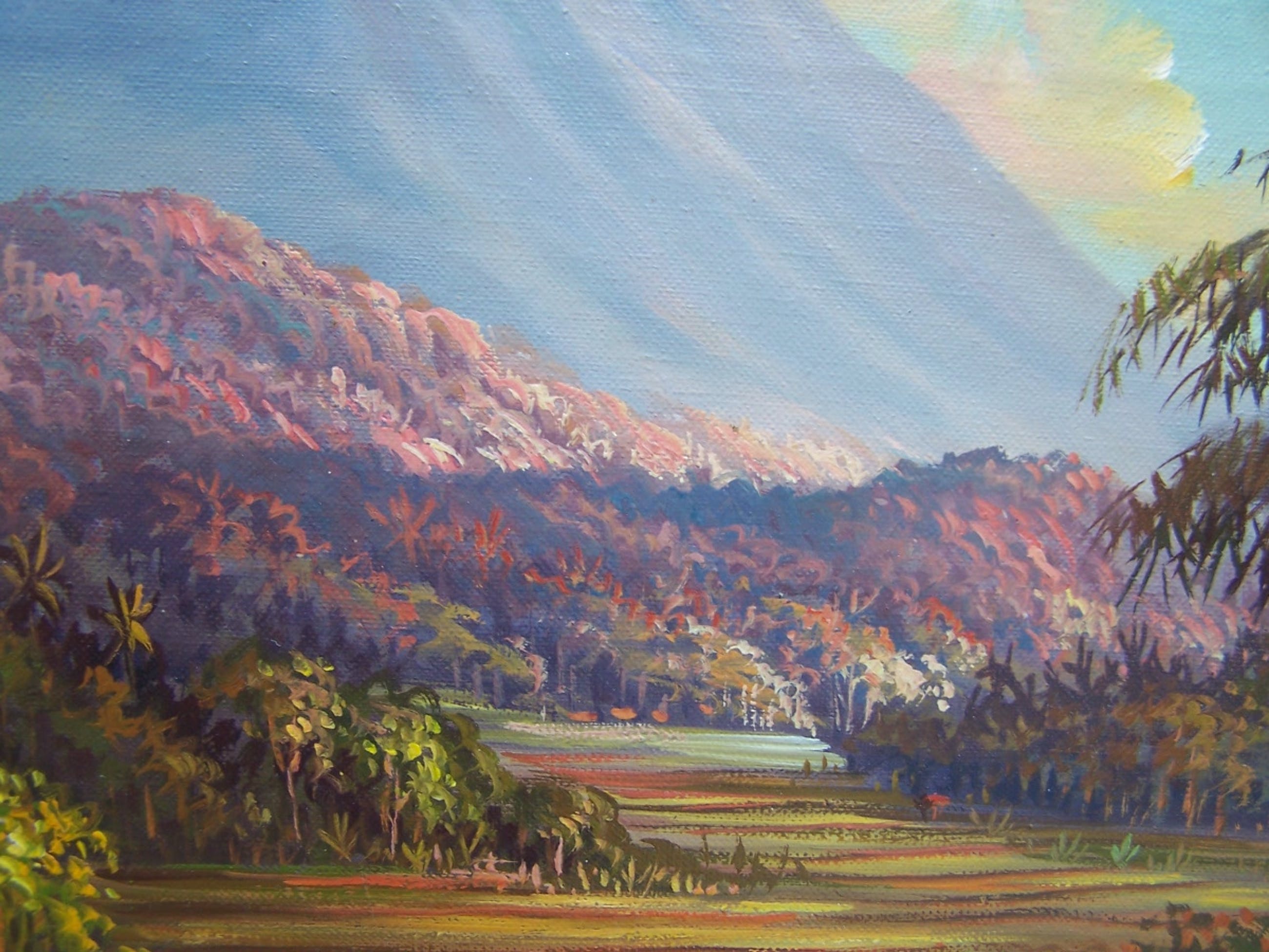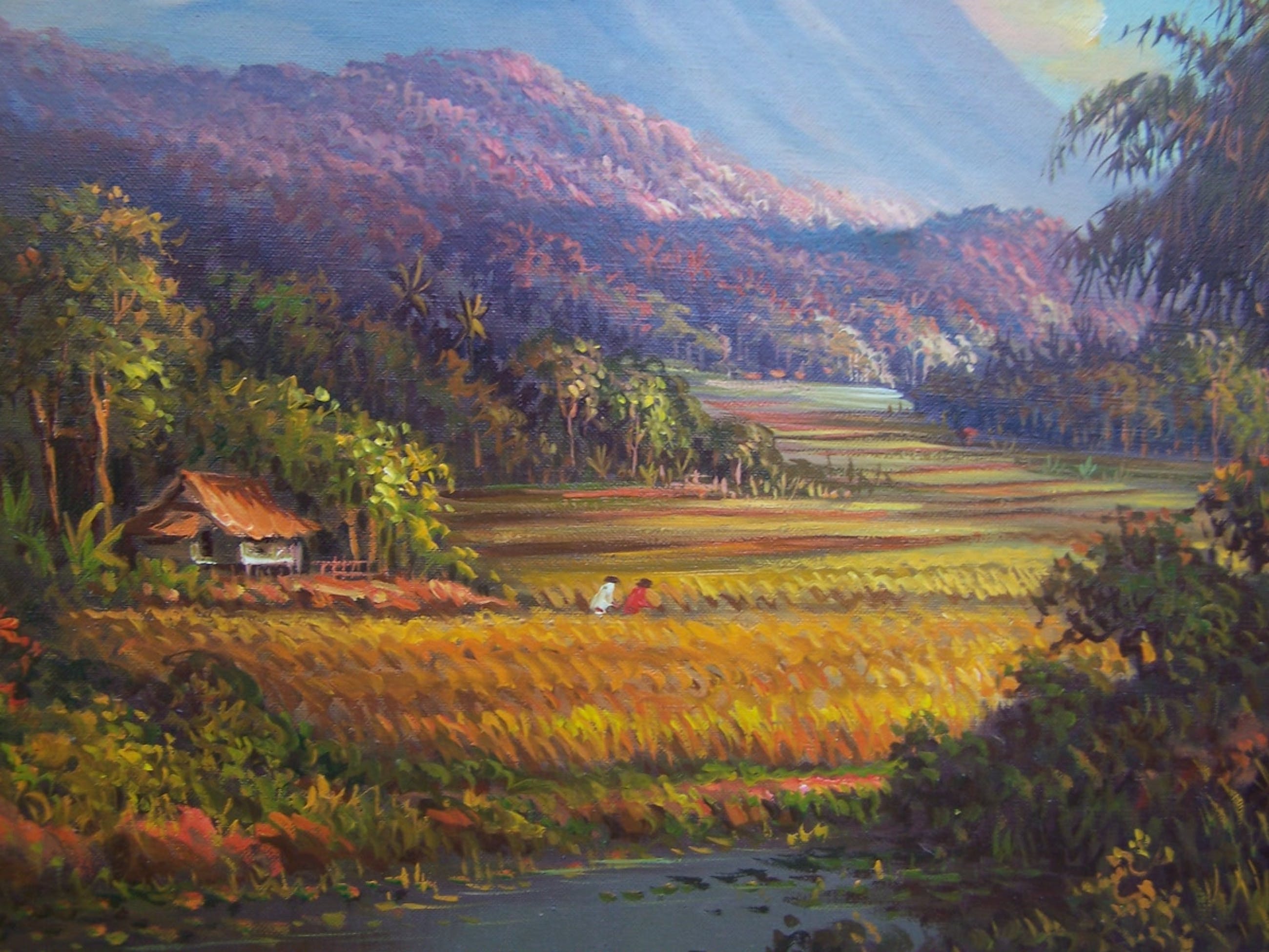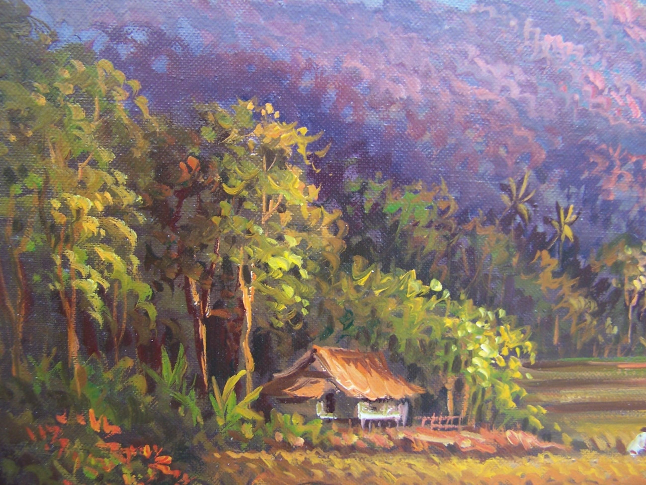 Mooi landschap uit Idonesië met rijstakkers en bergen.